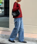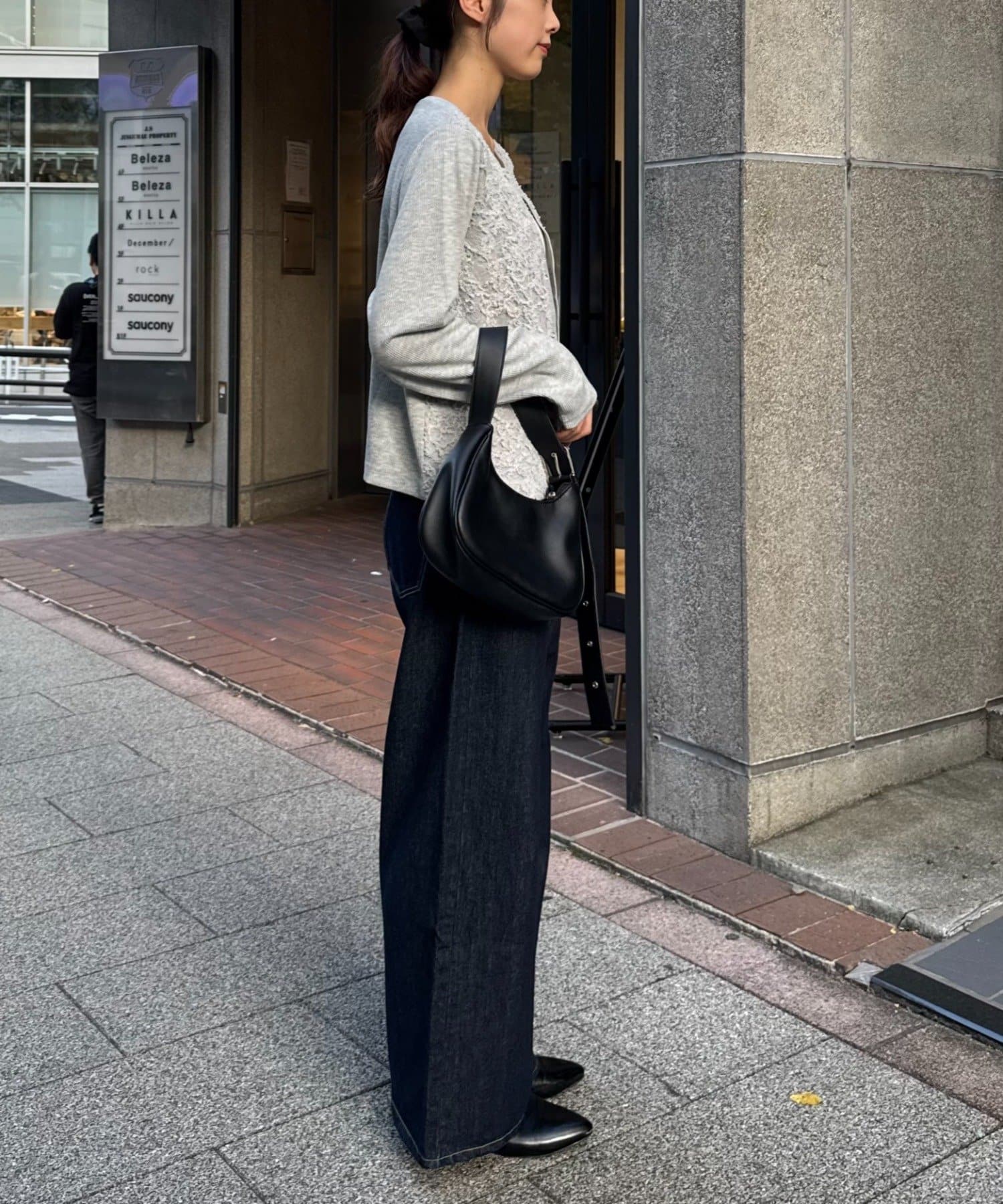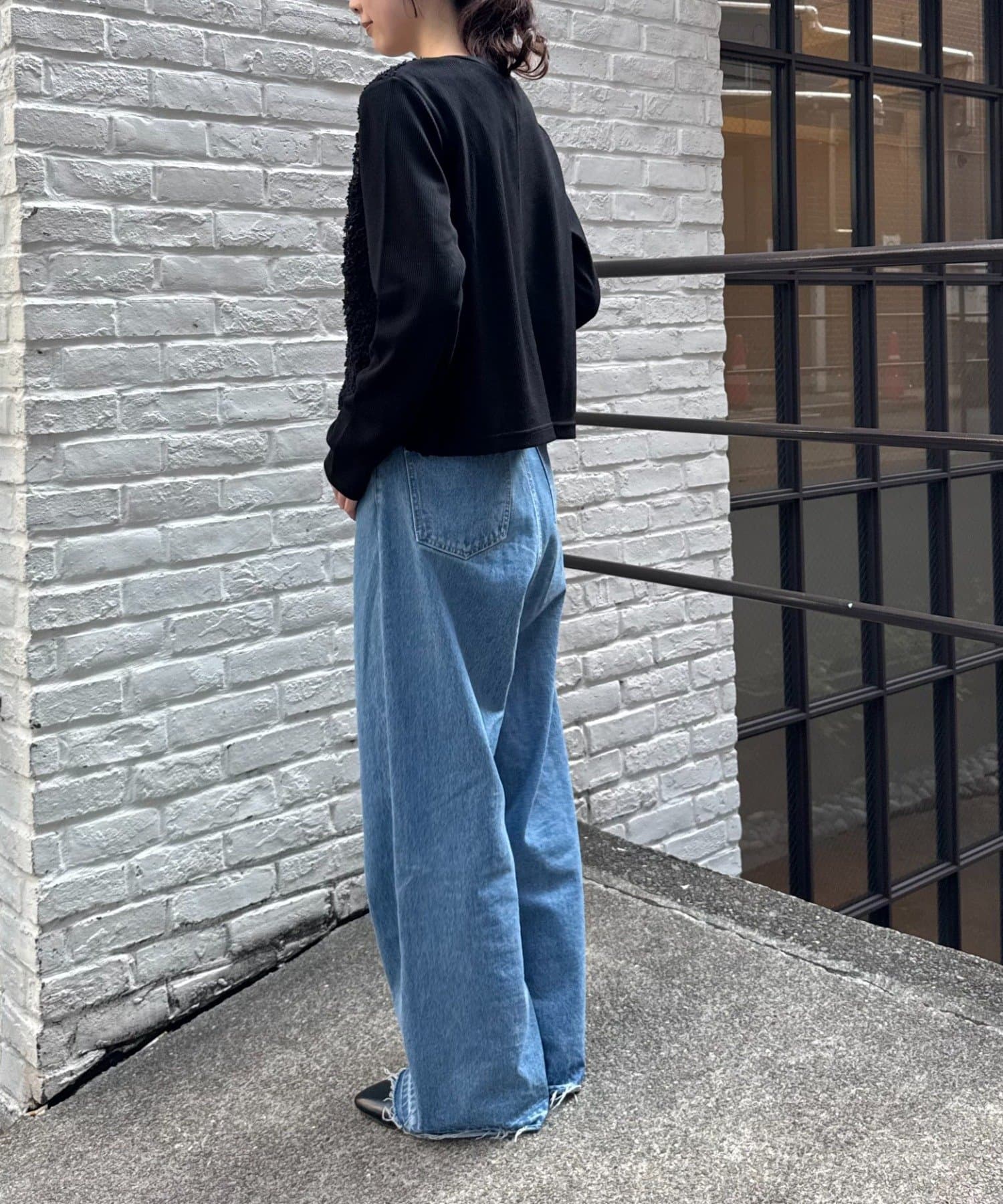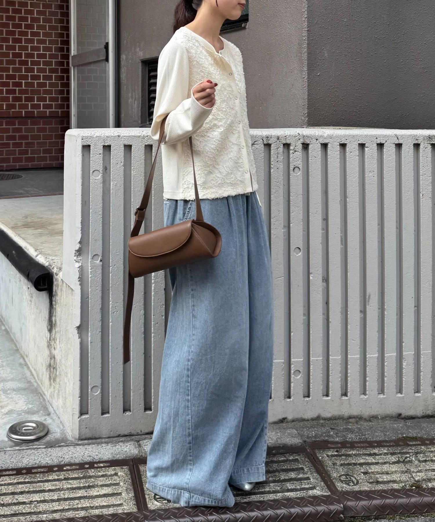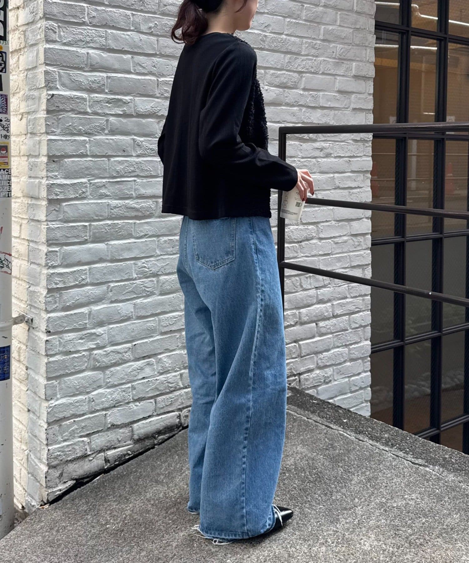 前を閉めてデニムと合わせれば、カジュアルと甘さのバランスがとれたトレンドコーデが完成♩
