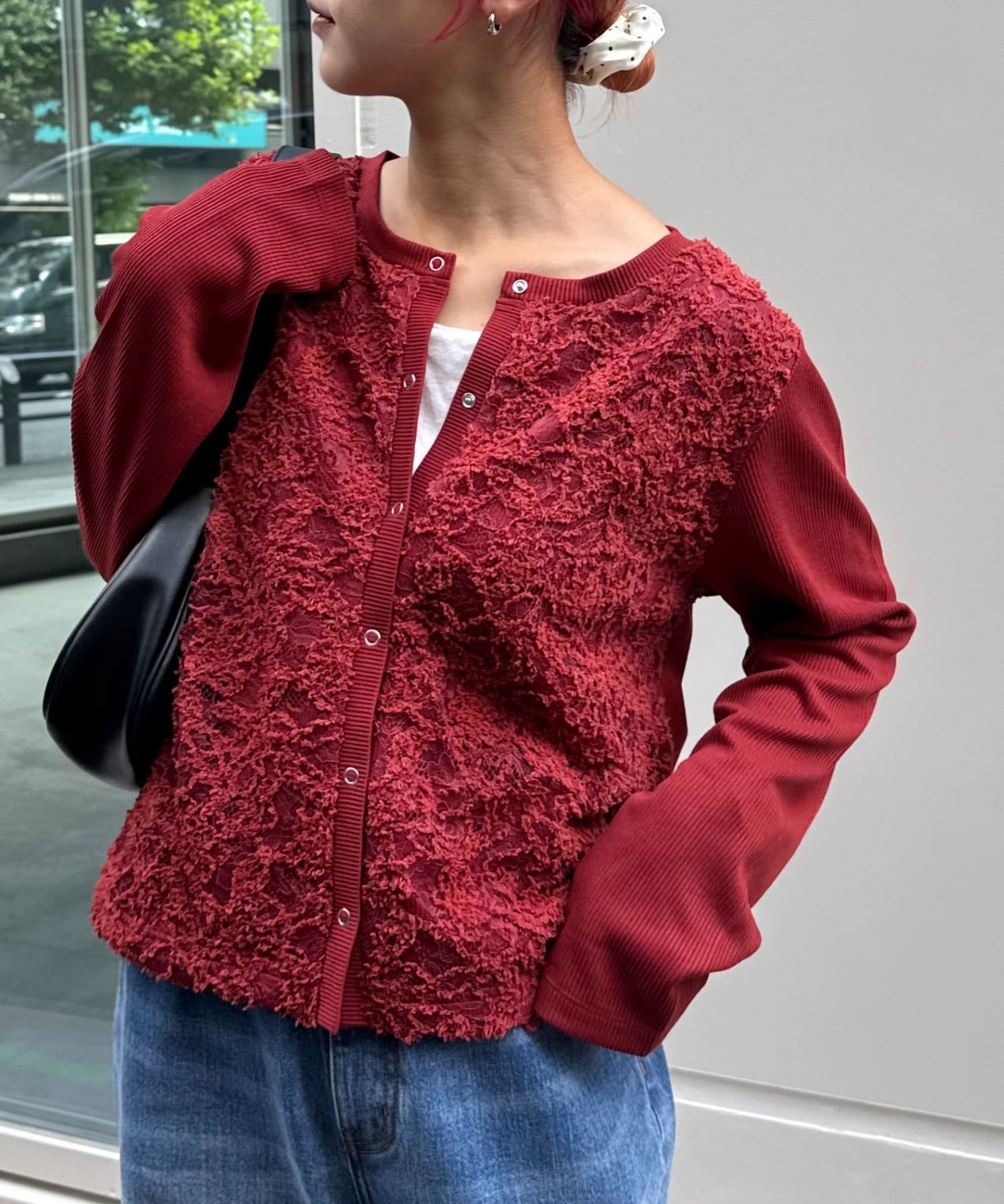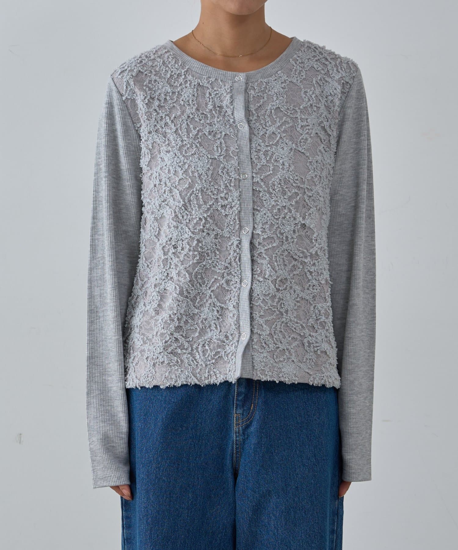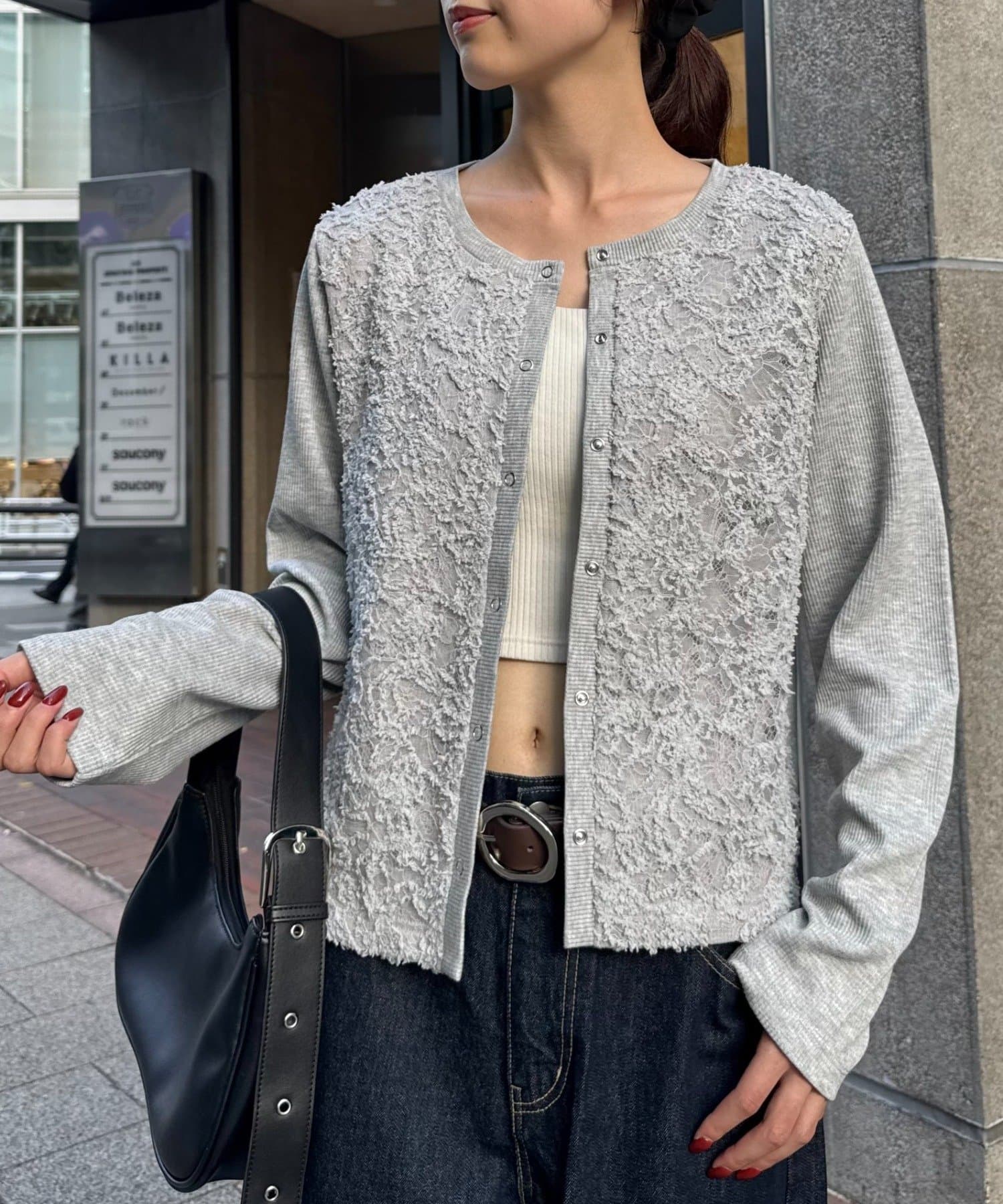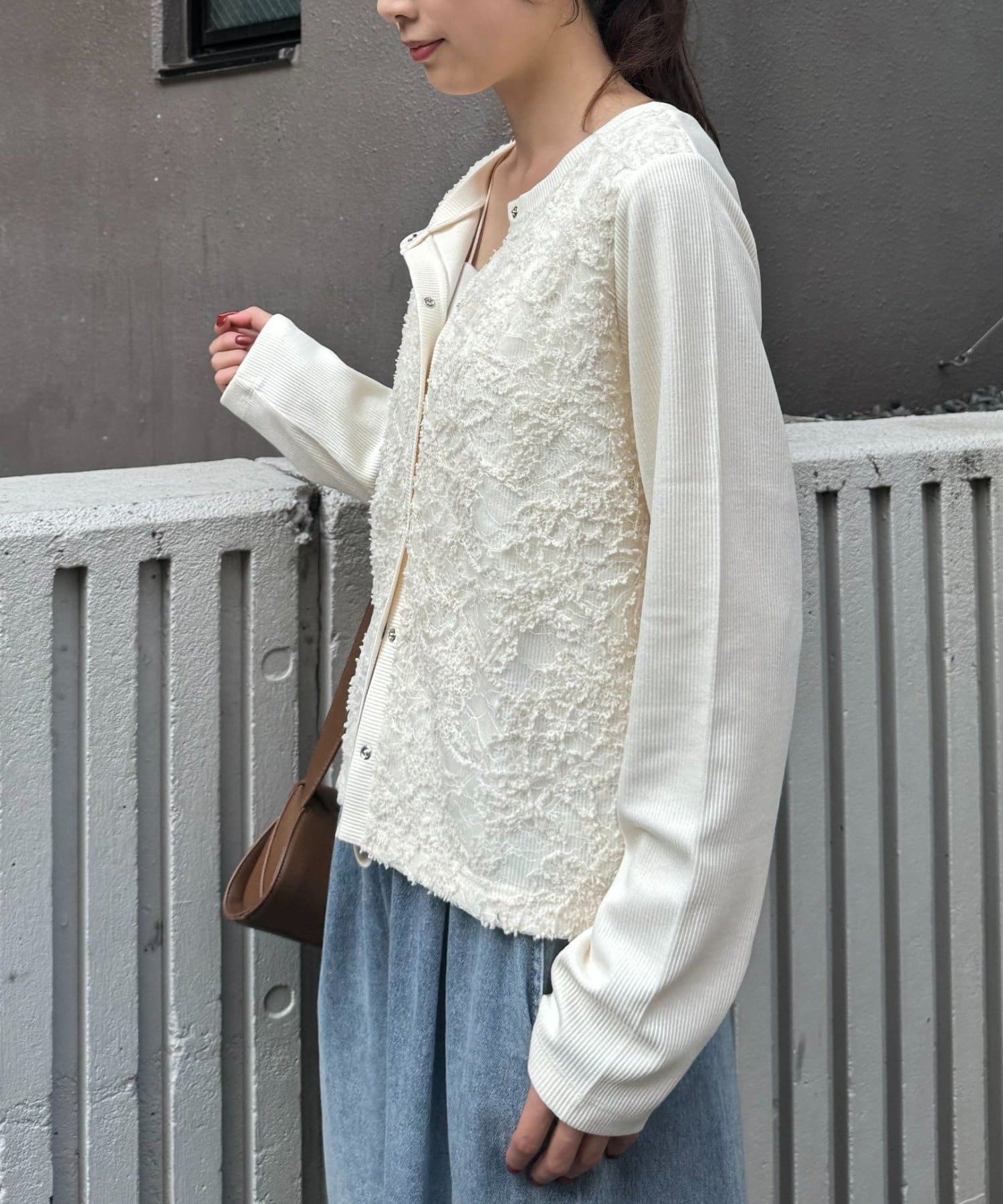レースの華やかさとリブ素材の着心地の良さを組み合わせたカーデ!