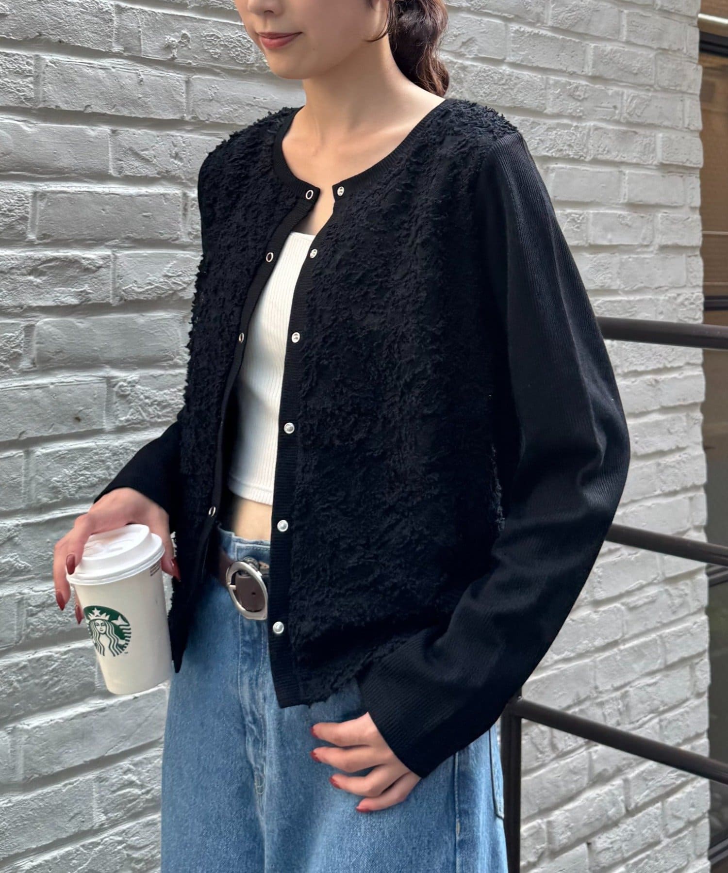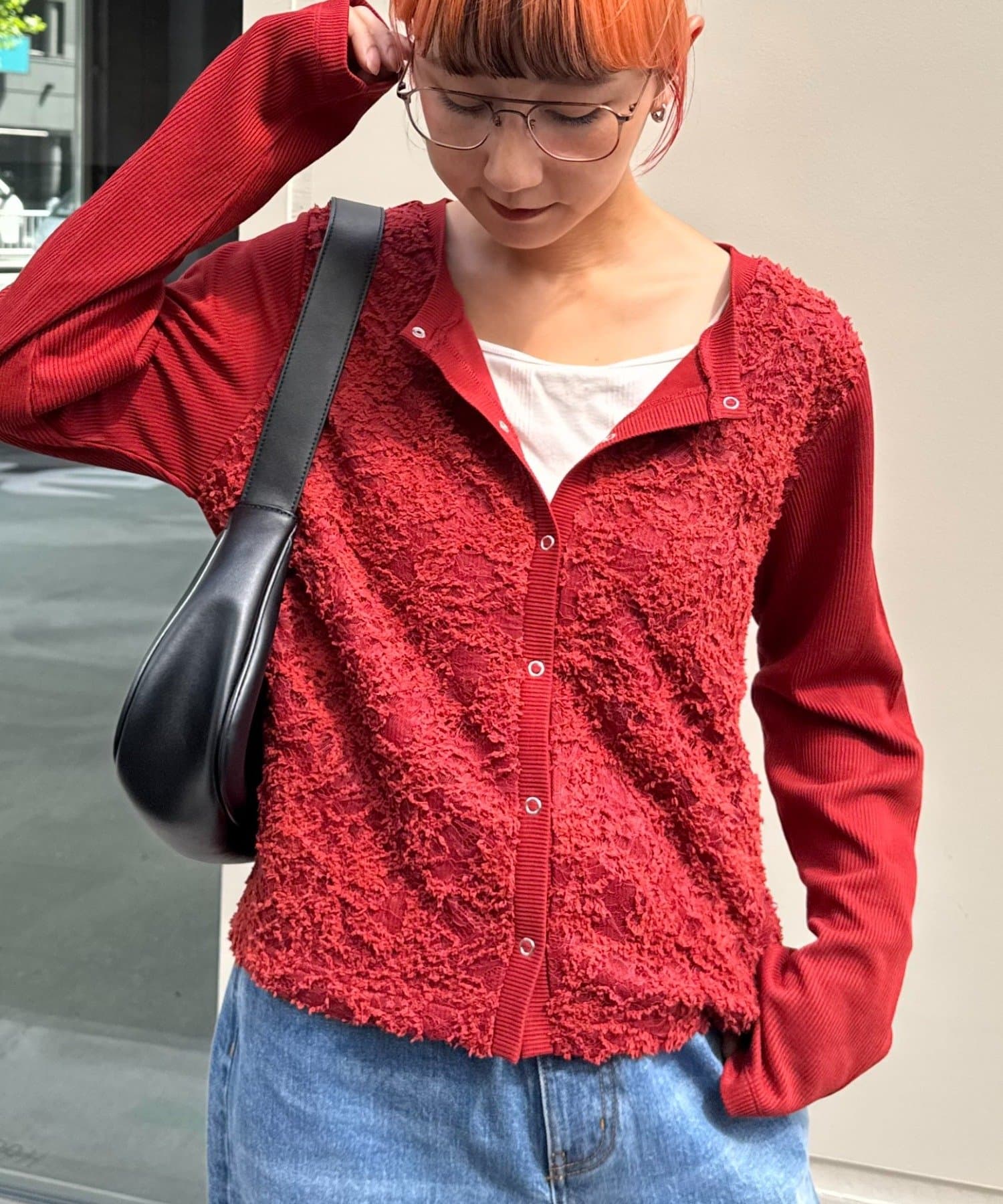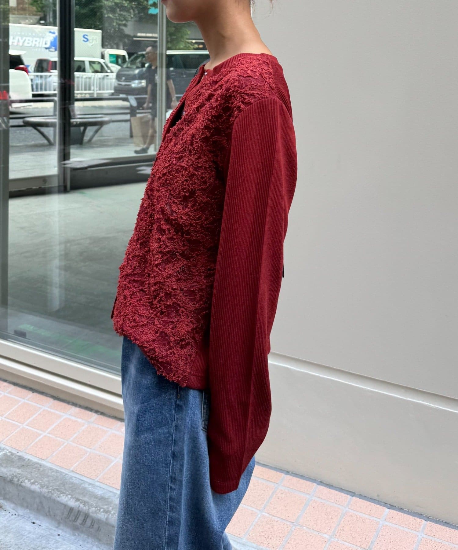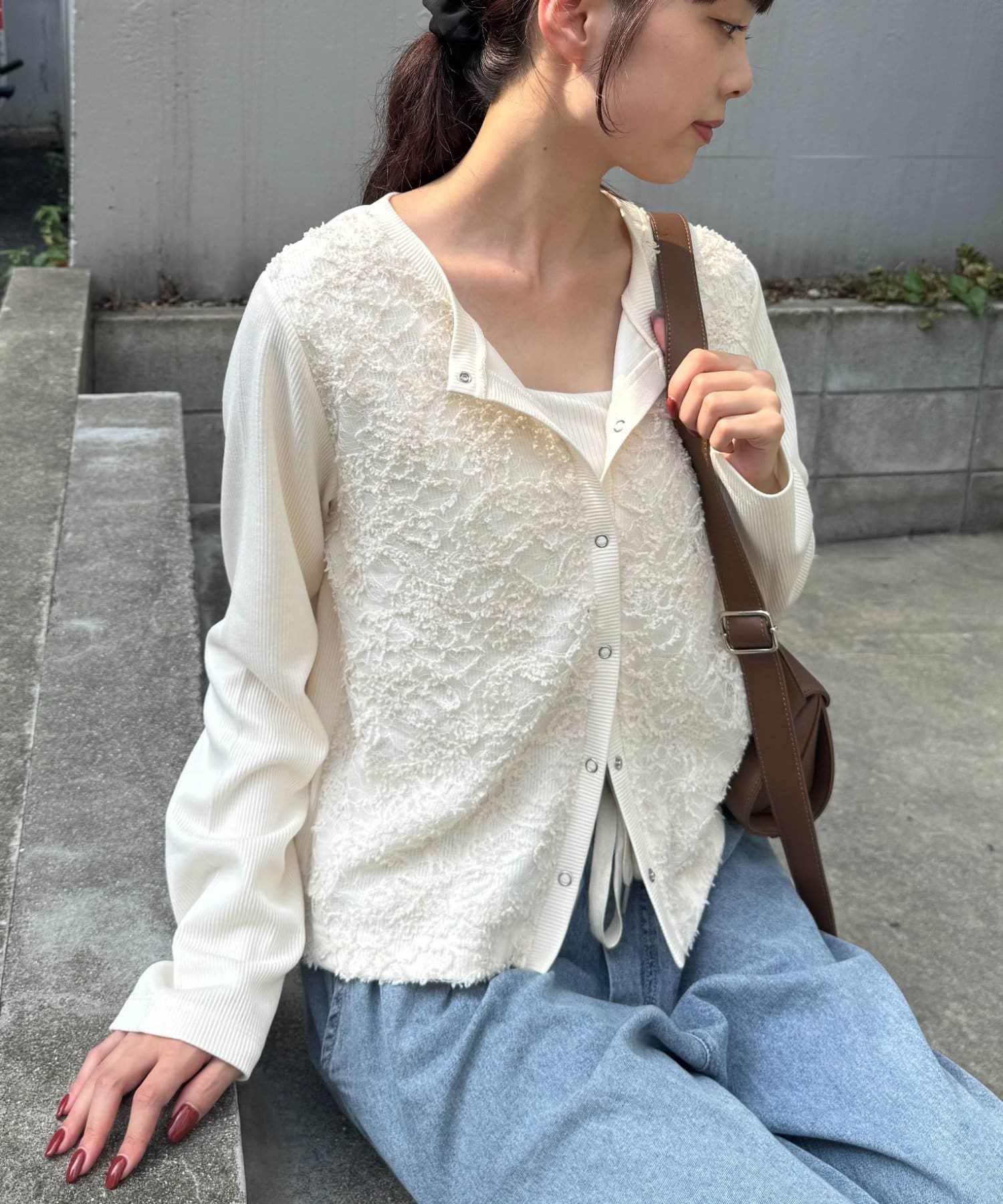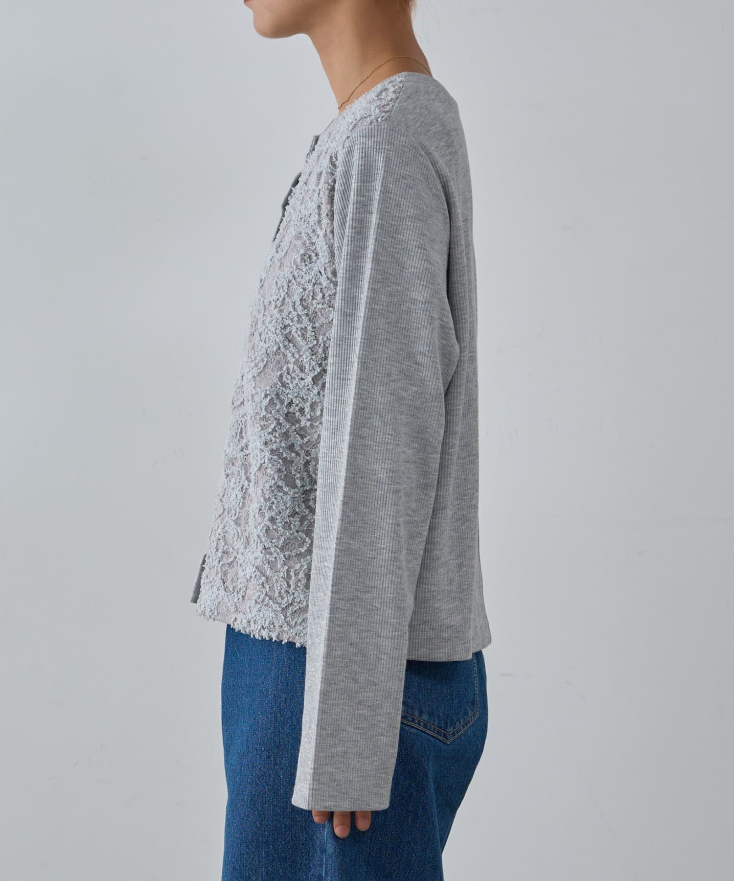 レースの華やかさとリブ素材の着心地の良さを組み合わせたカーデ!