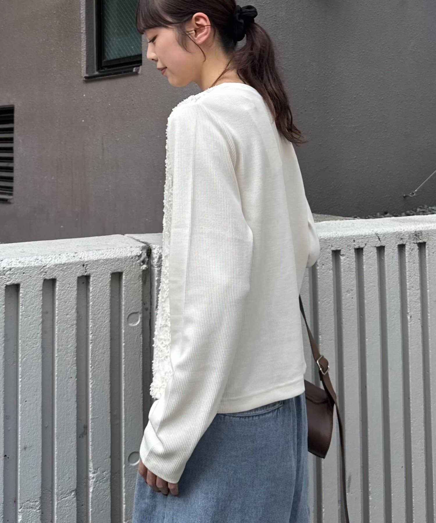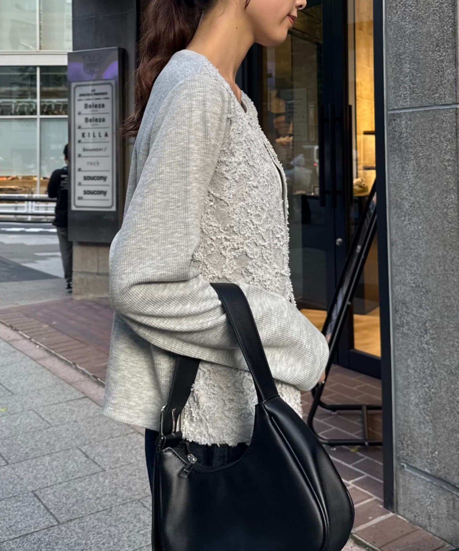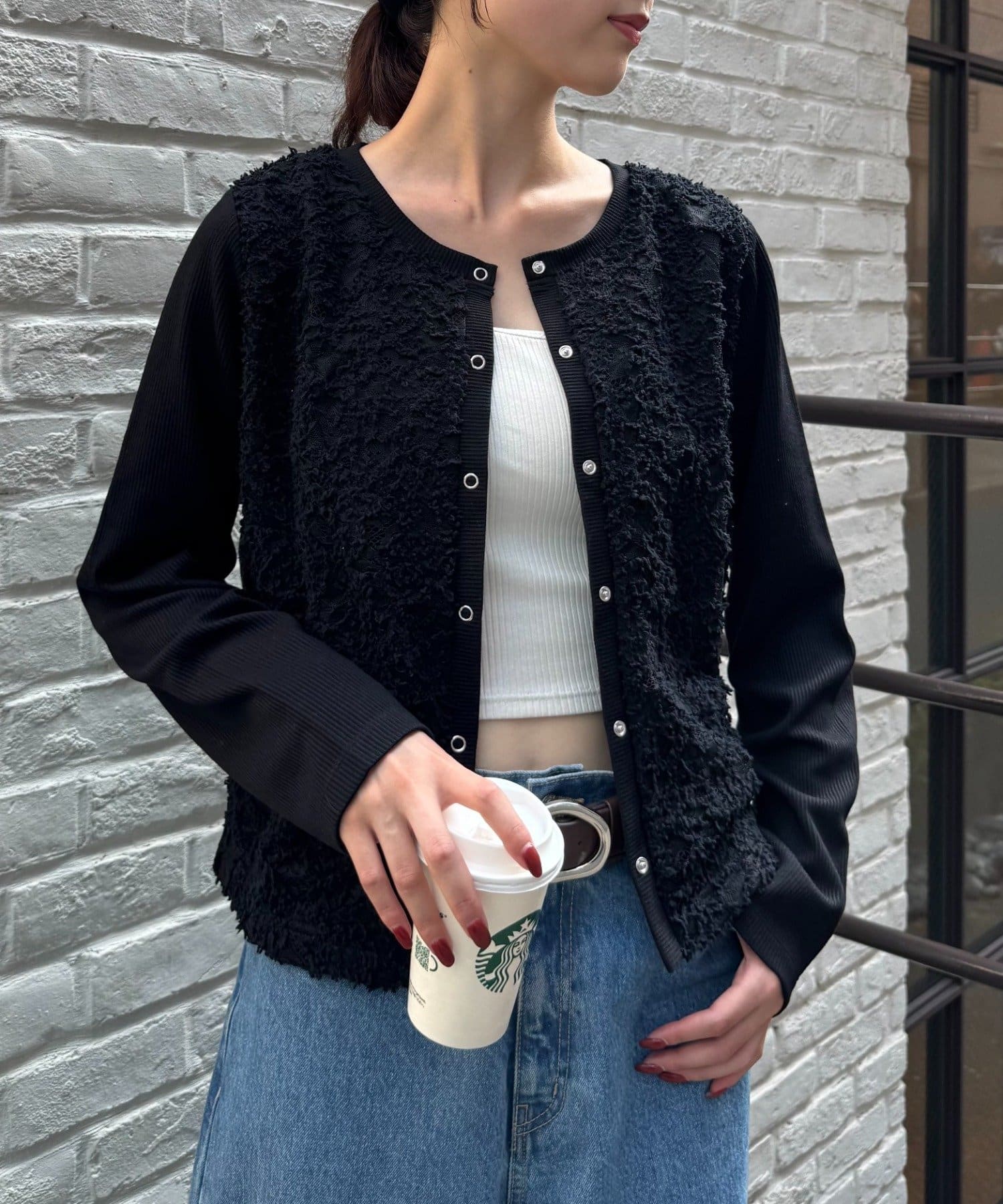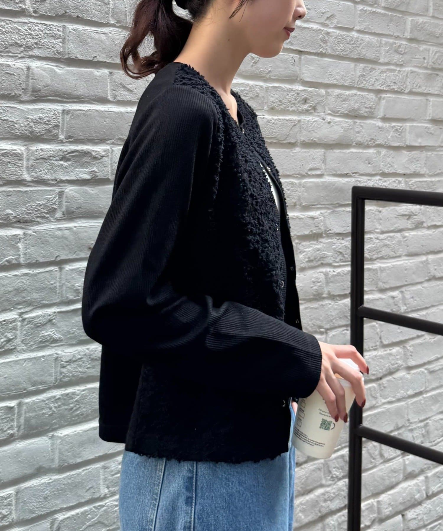 レースの華やかさとリブ素材の着心地の良さを組み合わせたカーデ!