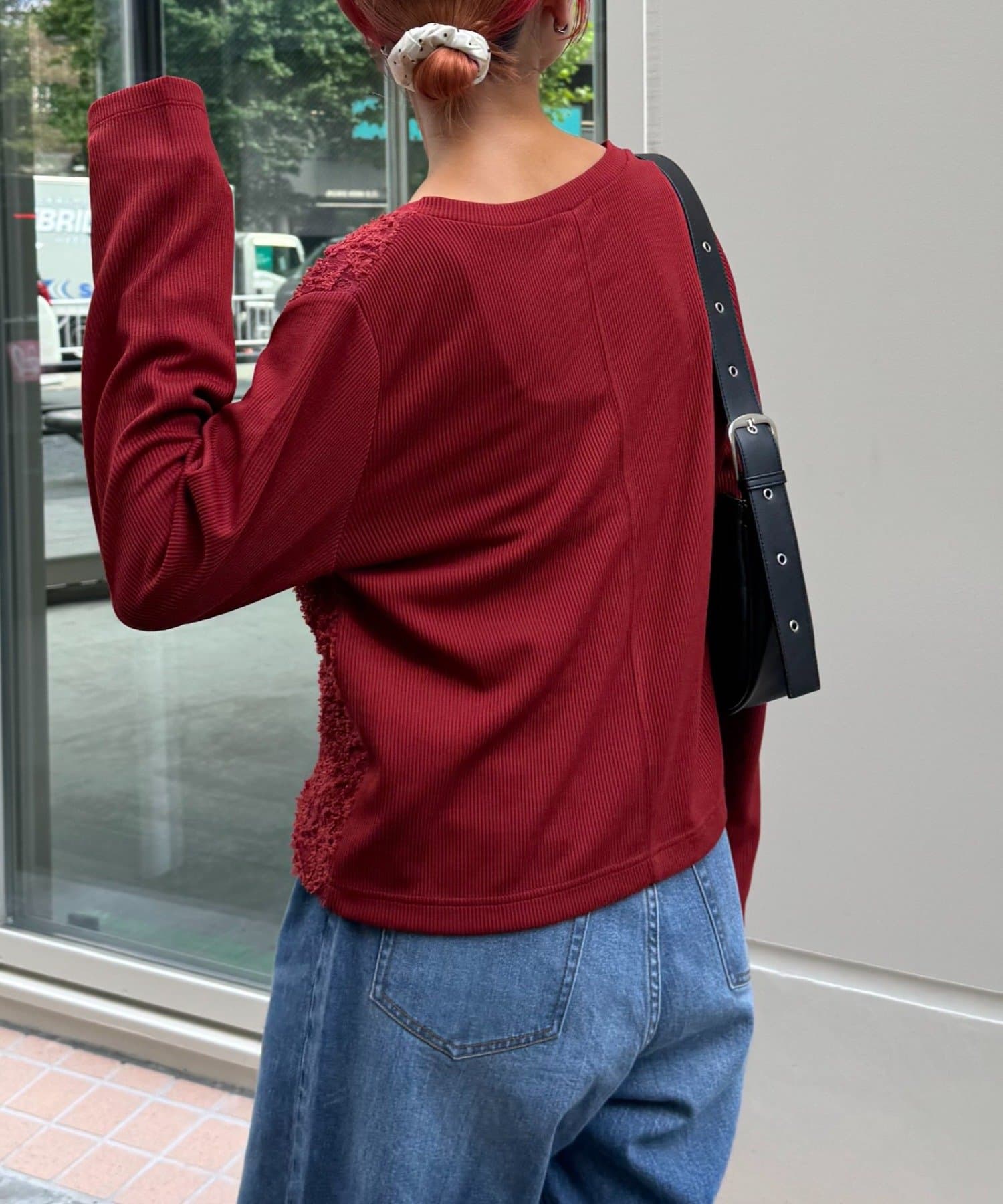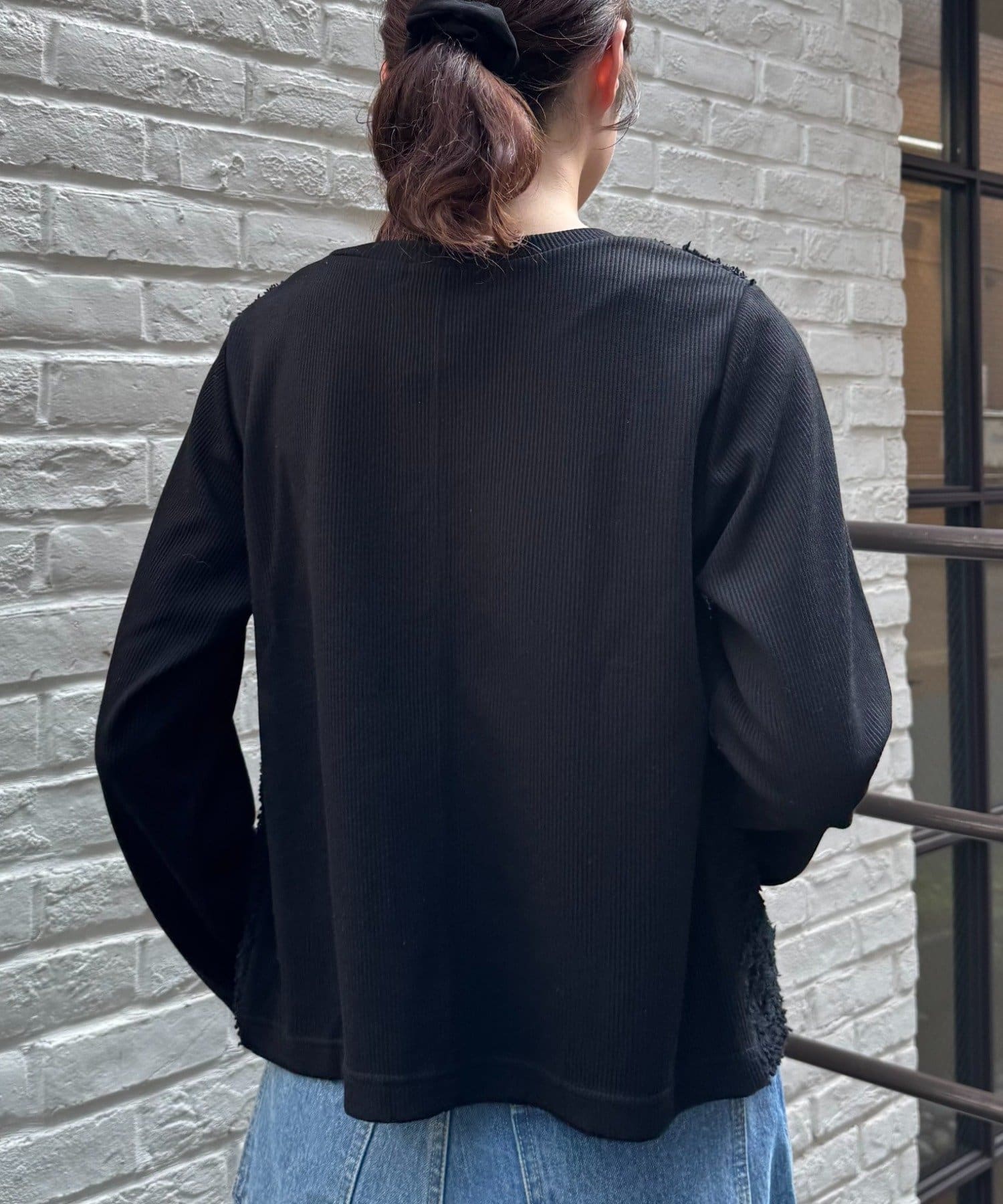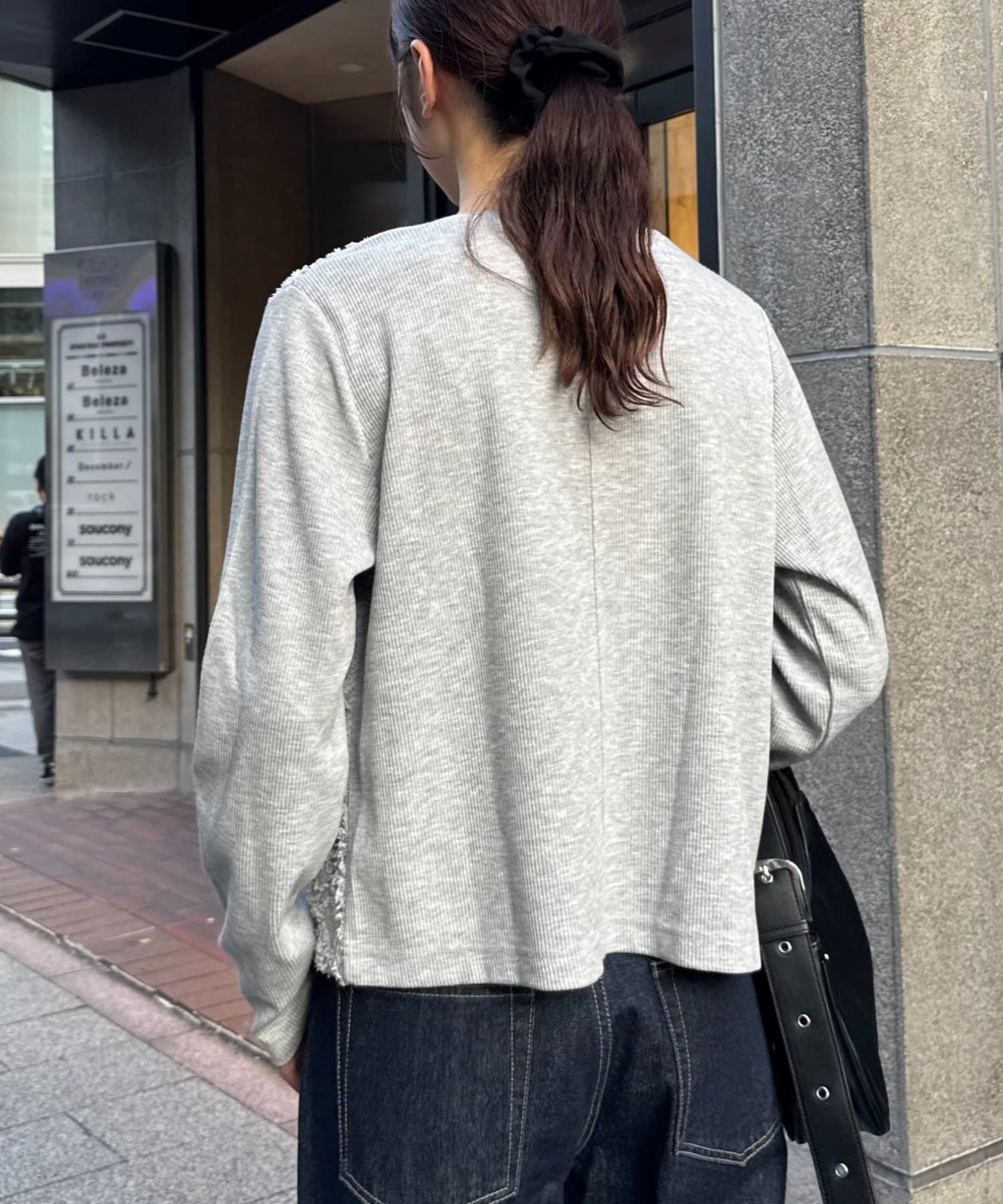 袖と背中はリブ素材で仕上げ、すっきりとしたシルエットと伸縮性を兼ね備えました。
