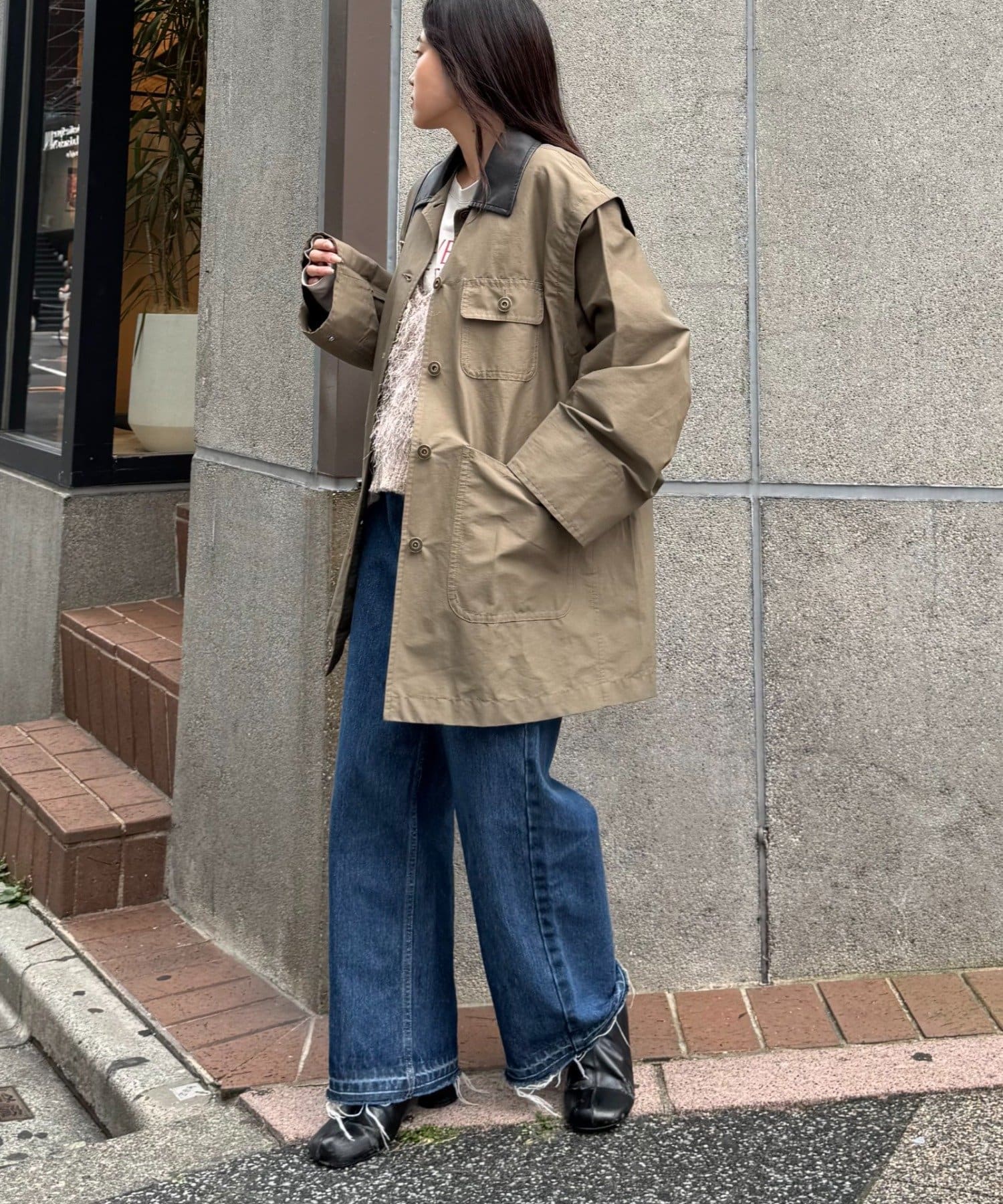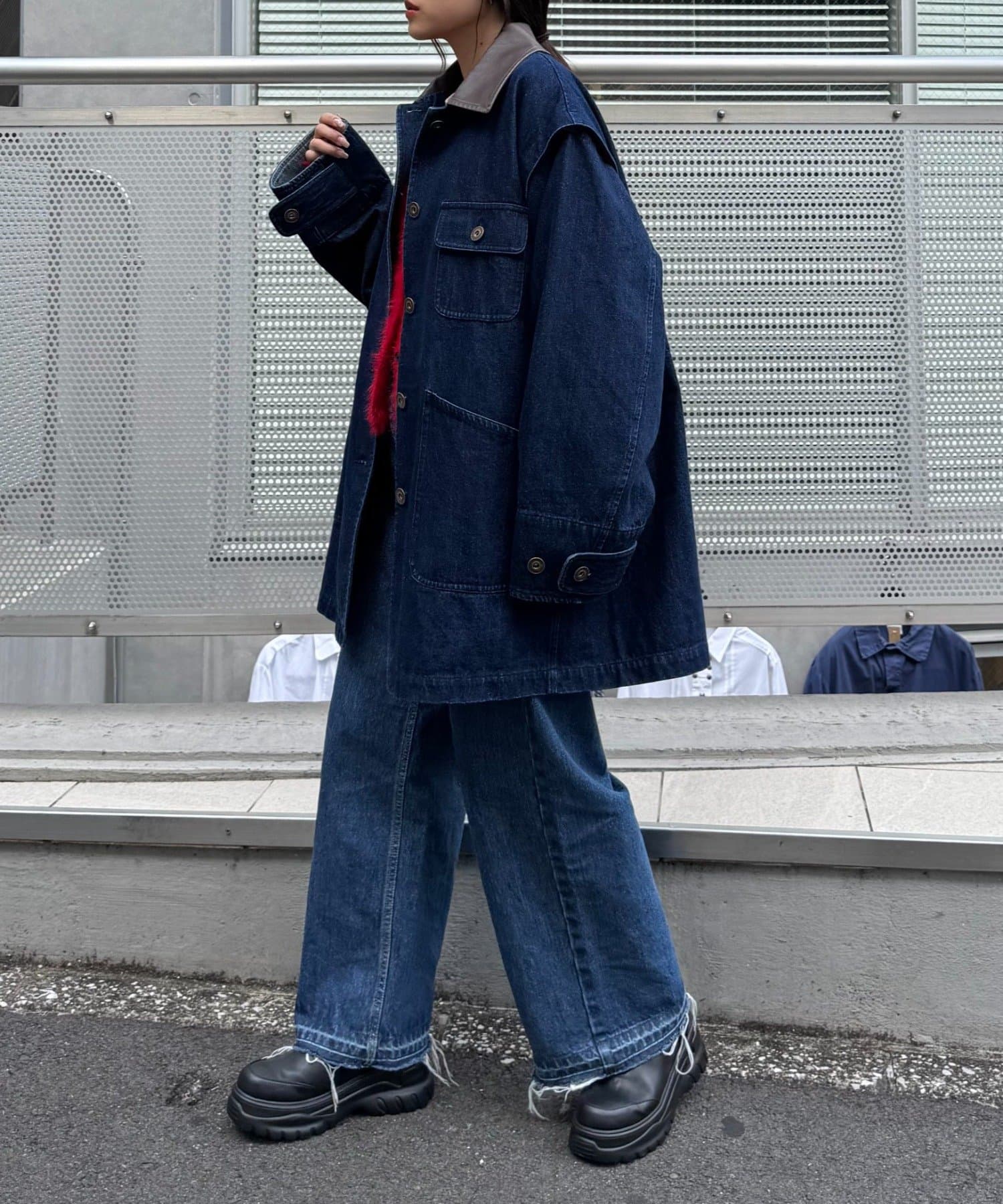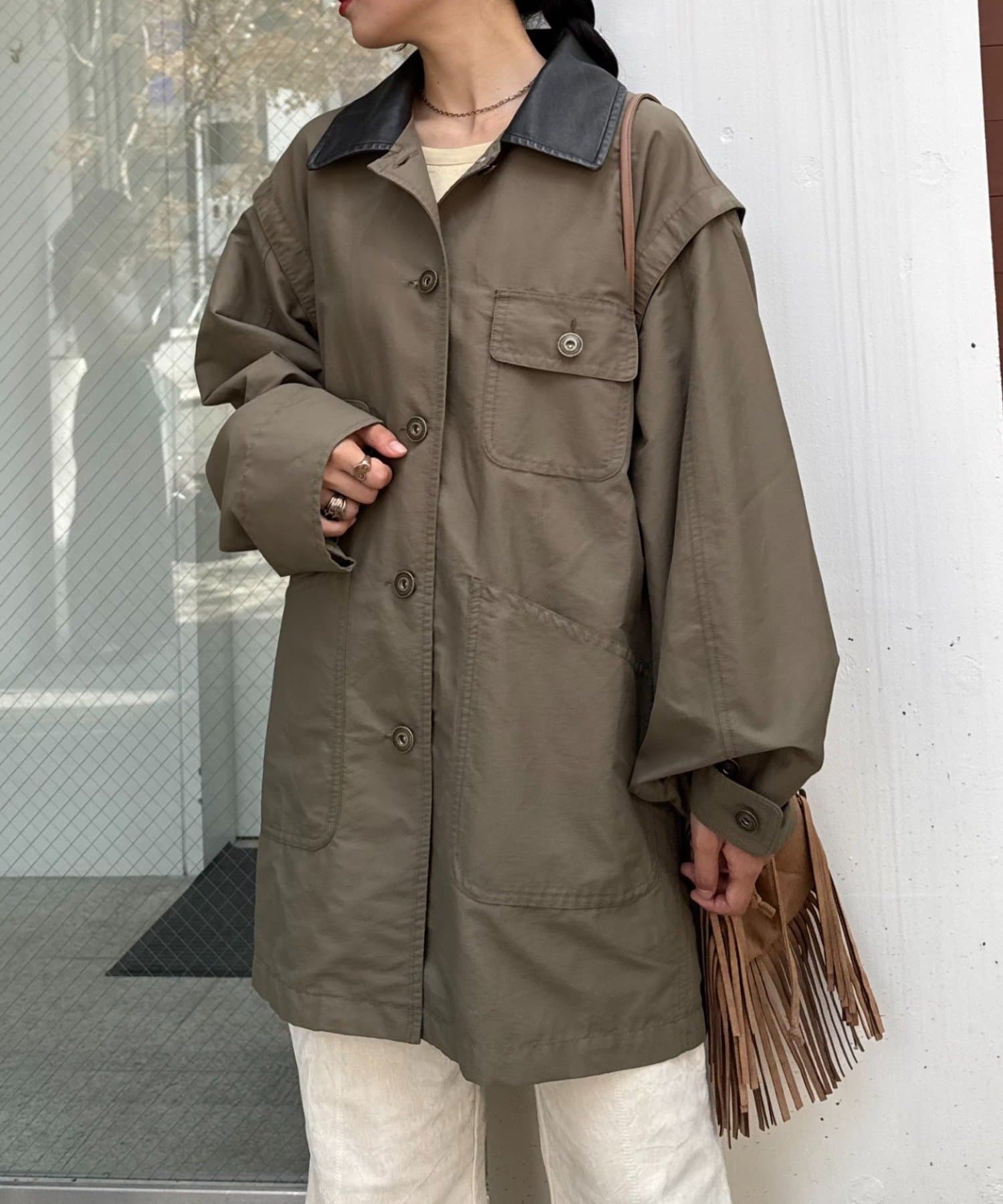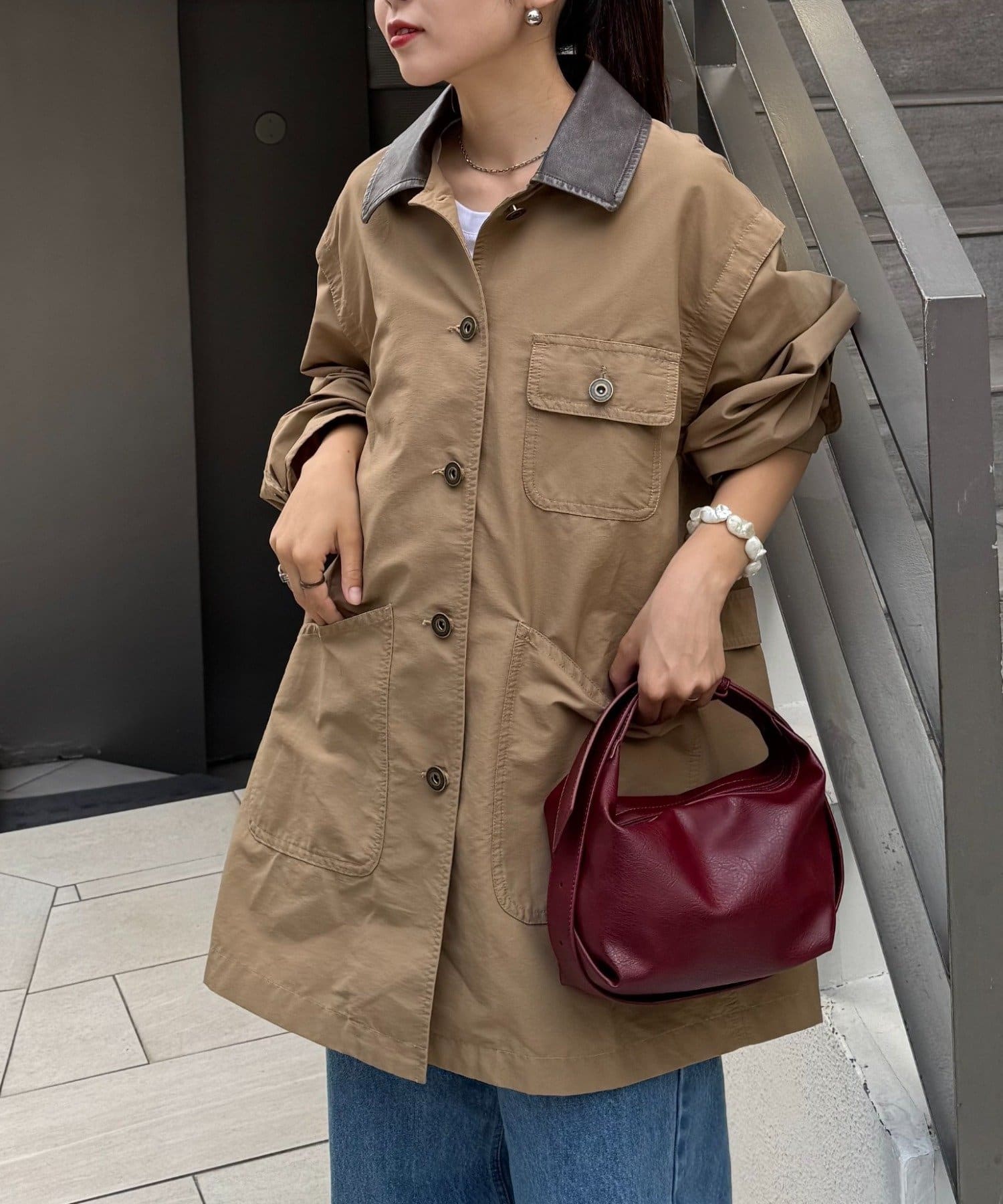 ワークテイストを取り入れつつ、ルーズなシルエットでトレンド感もプラスしました。