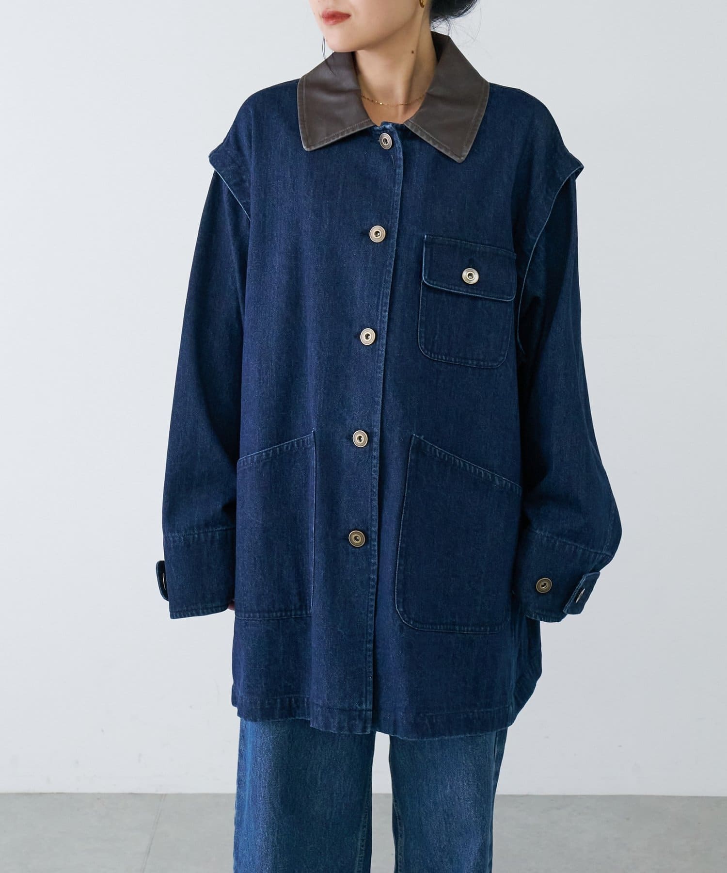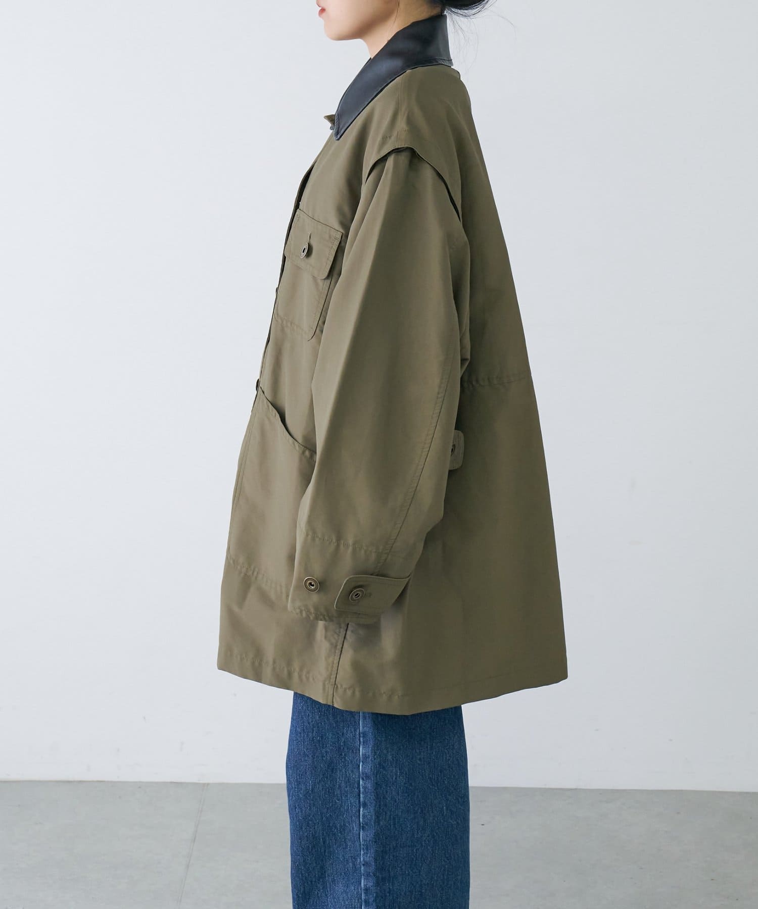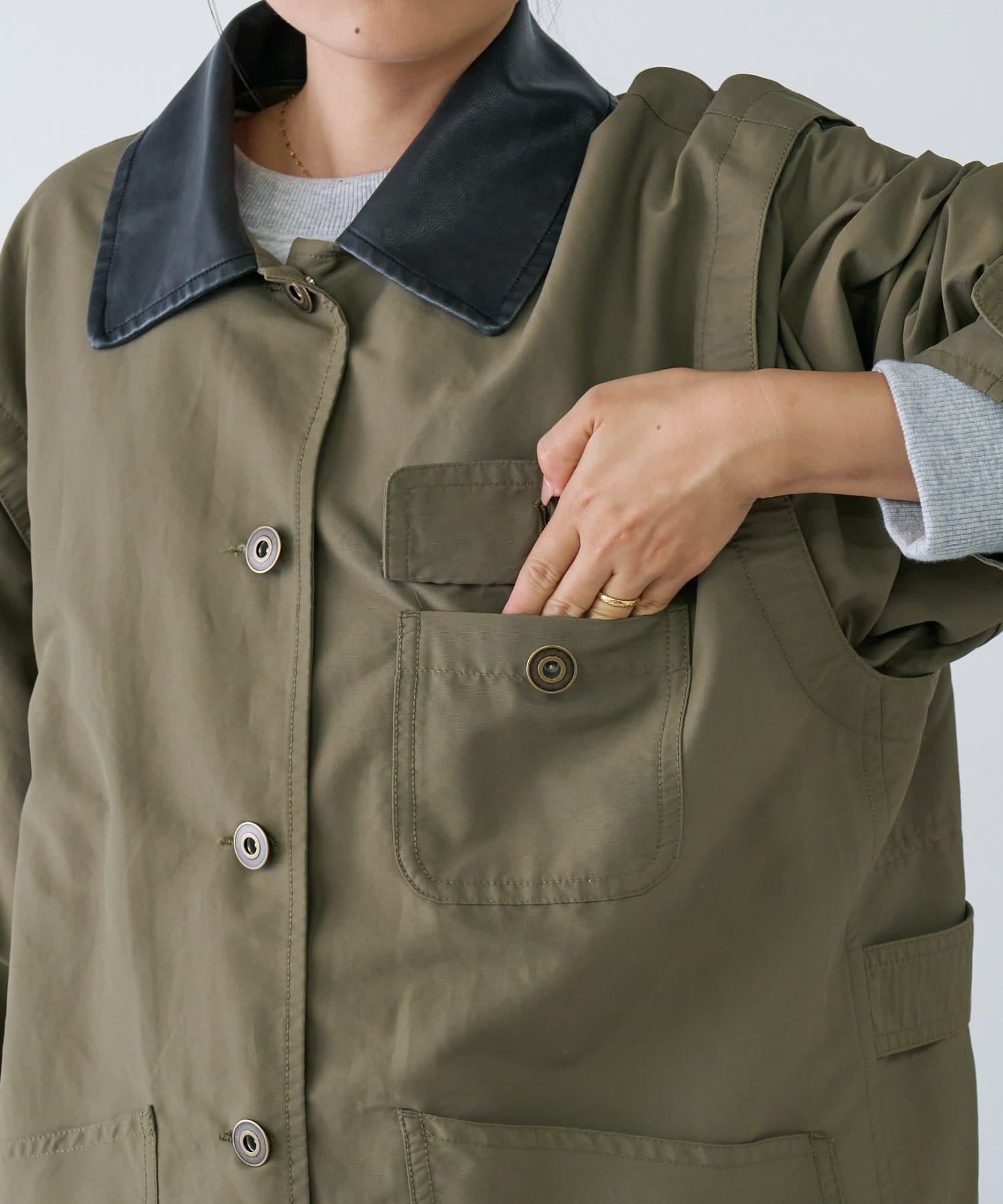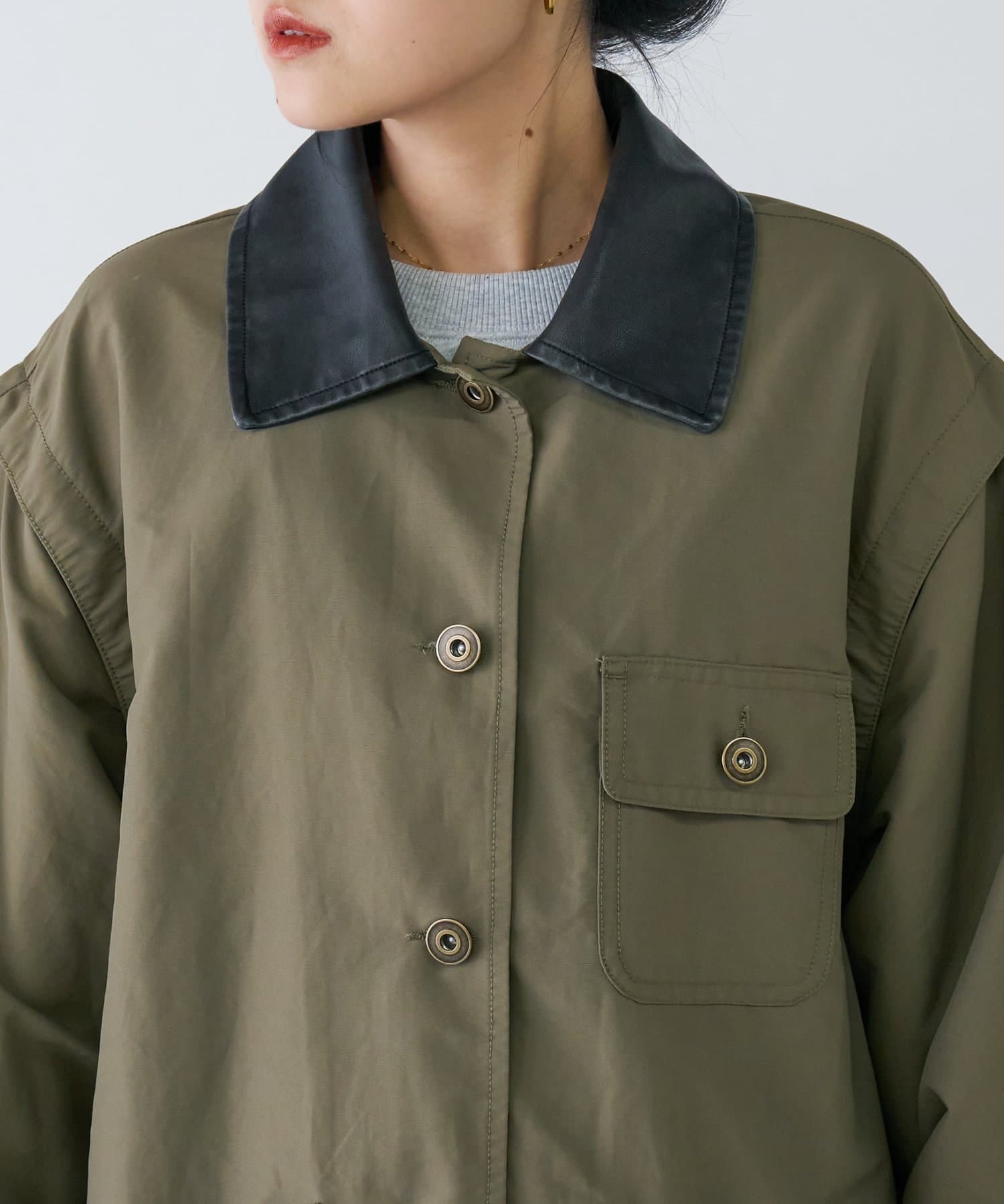 大人のこなれ感。配色襟のルーズワークジャケット
