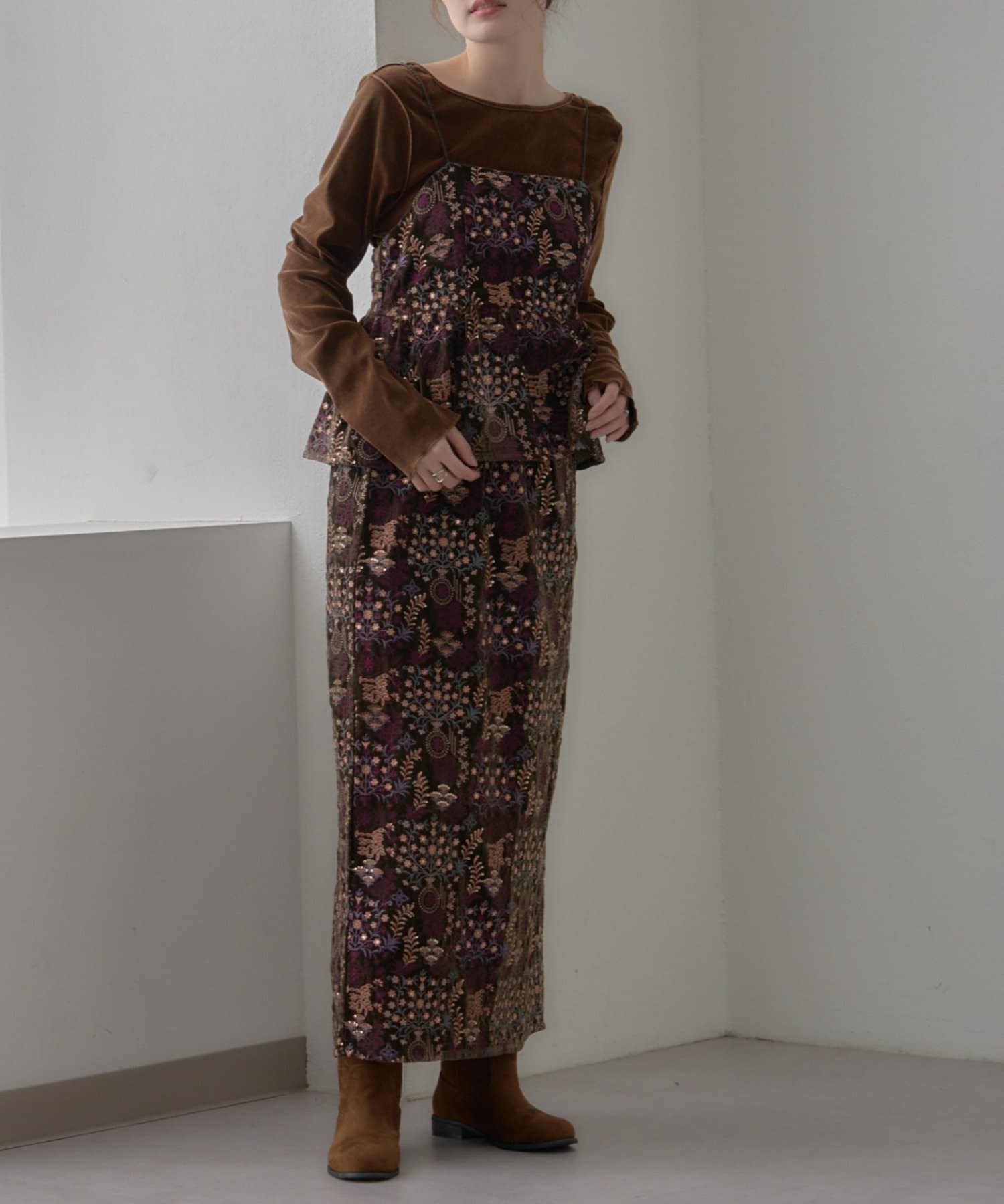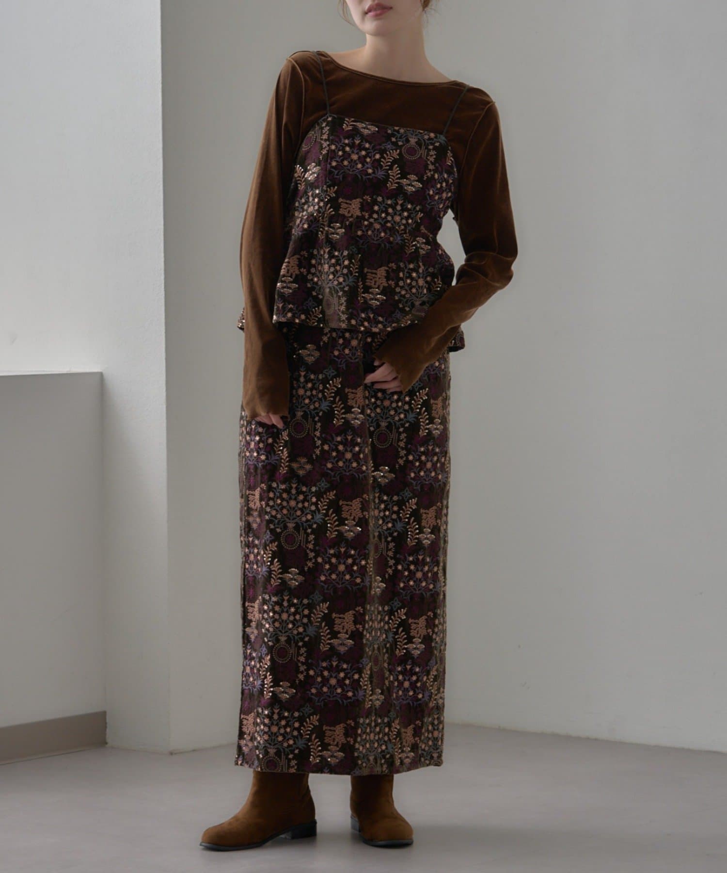 ヴィンテージムード高まるベロア×刺繍が魅力!【セットアップ対応】