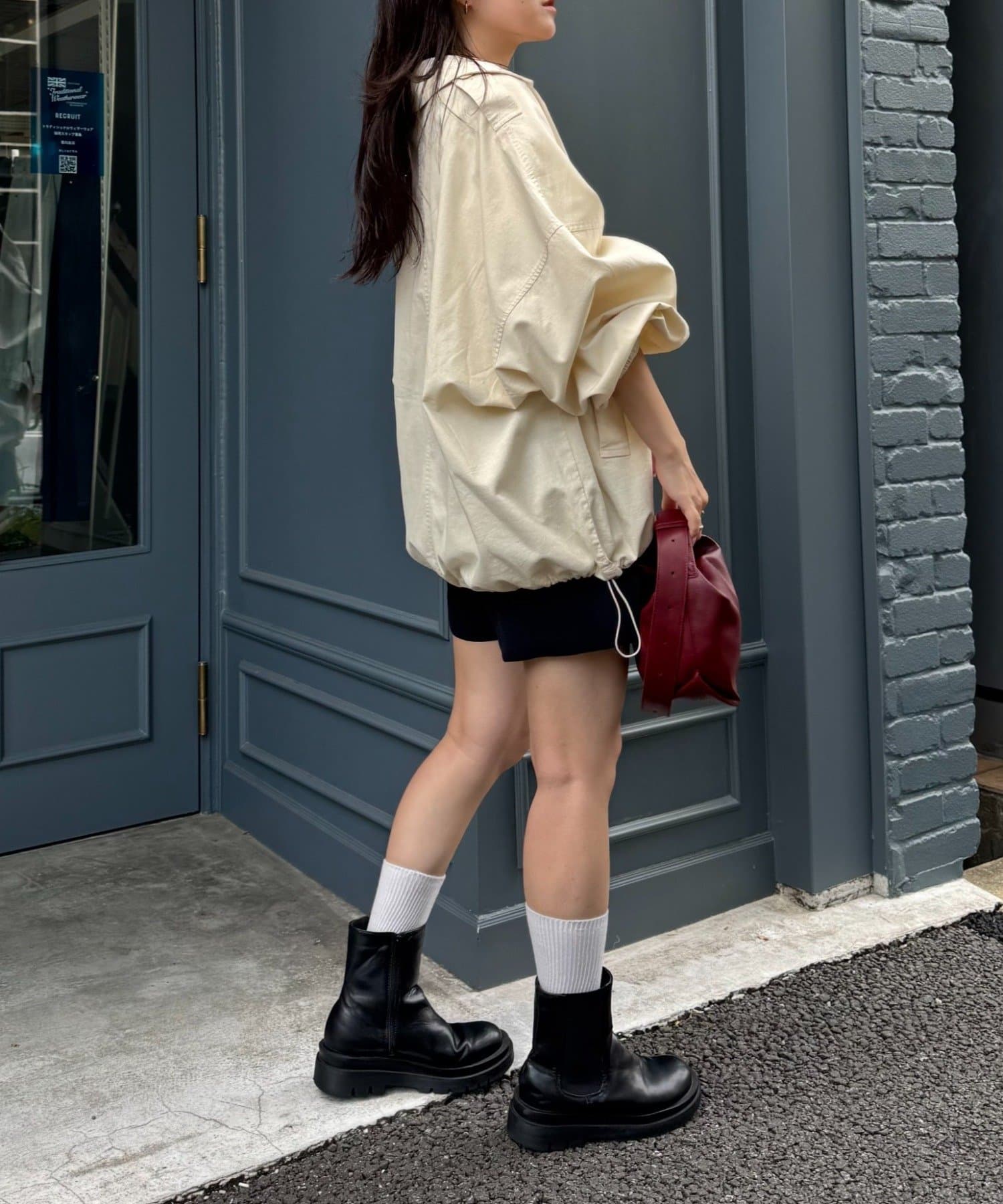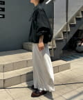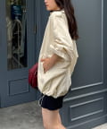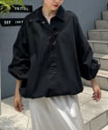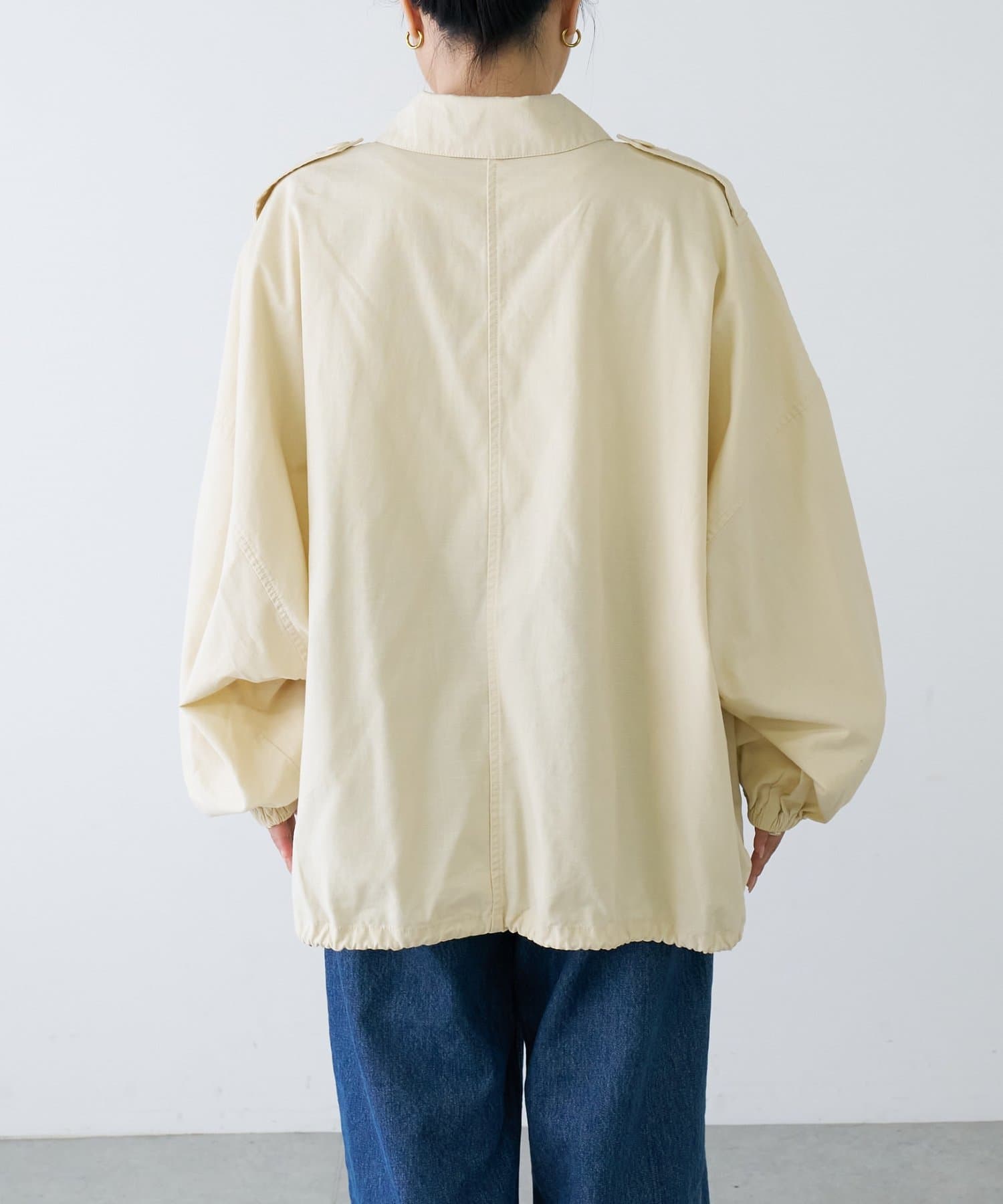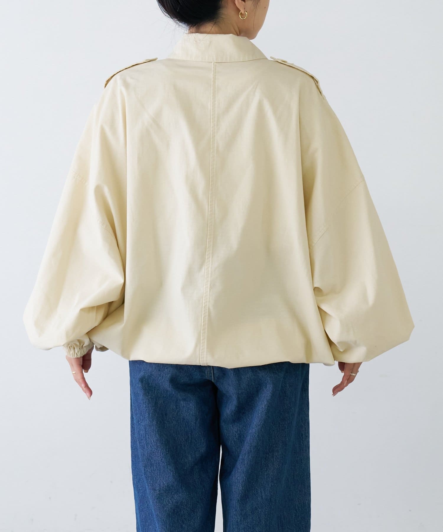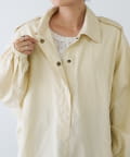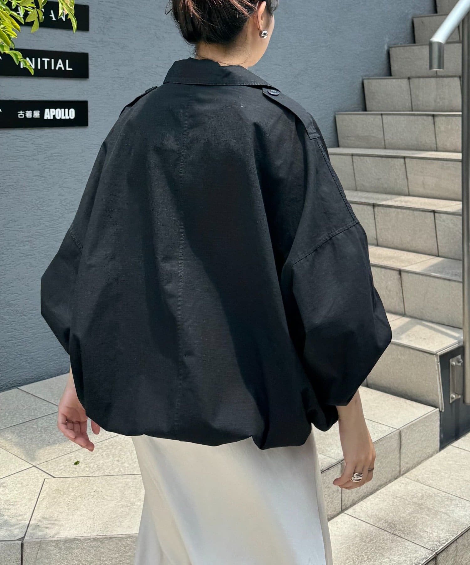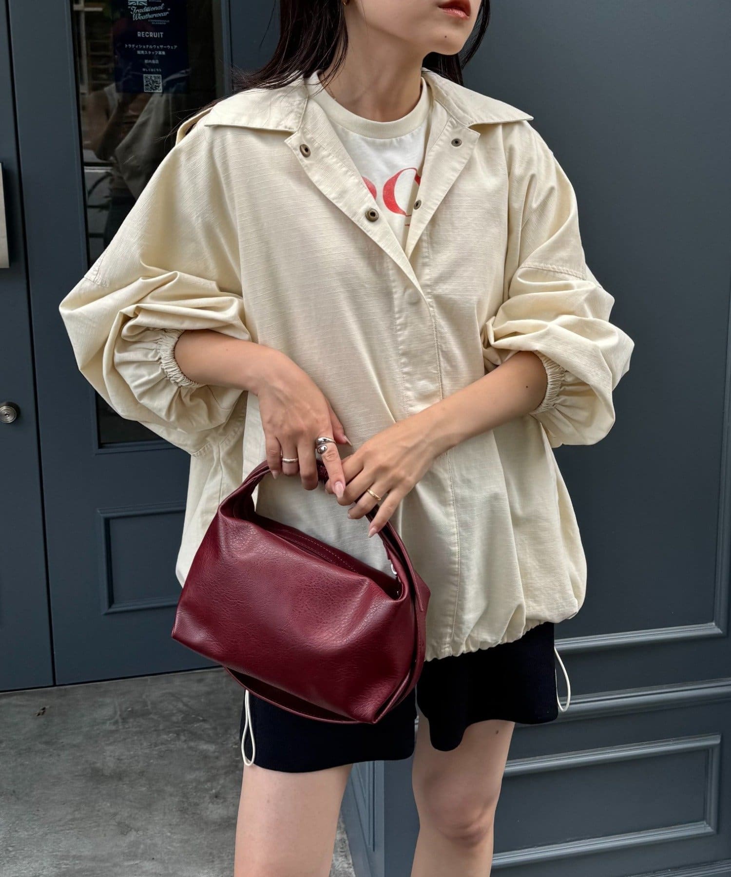 ゆったりとしたシルエットと、絞られた袖口のギャザーが、ふんわりとしたボリューム感を生み出し、こなれた雰囲気を演出します。