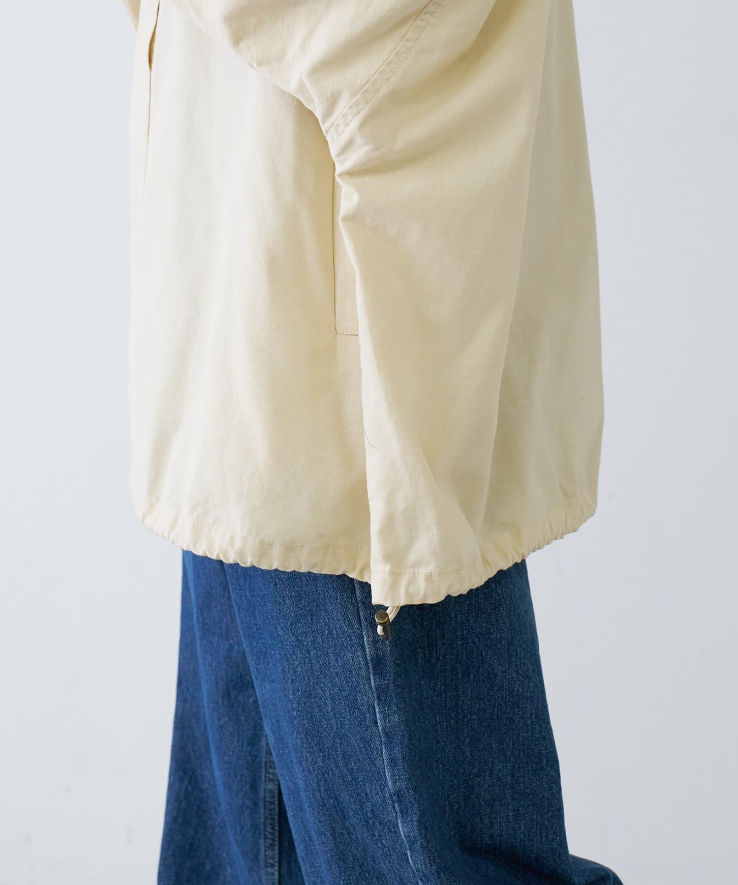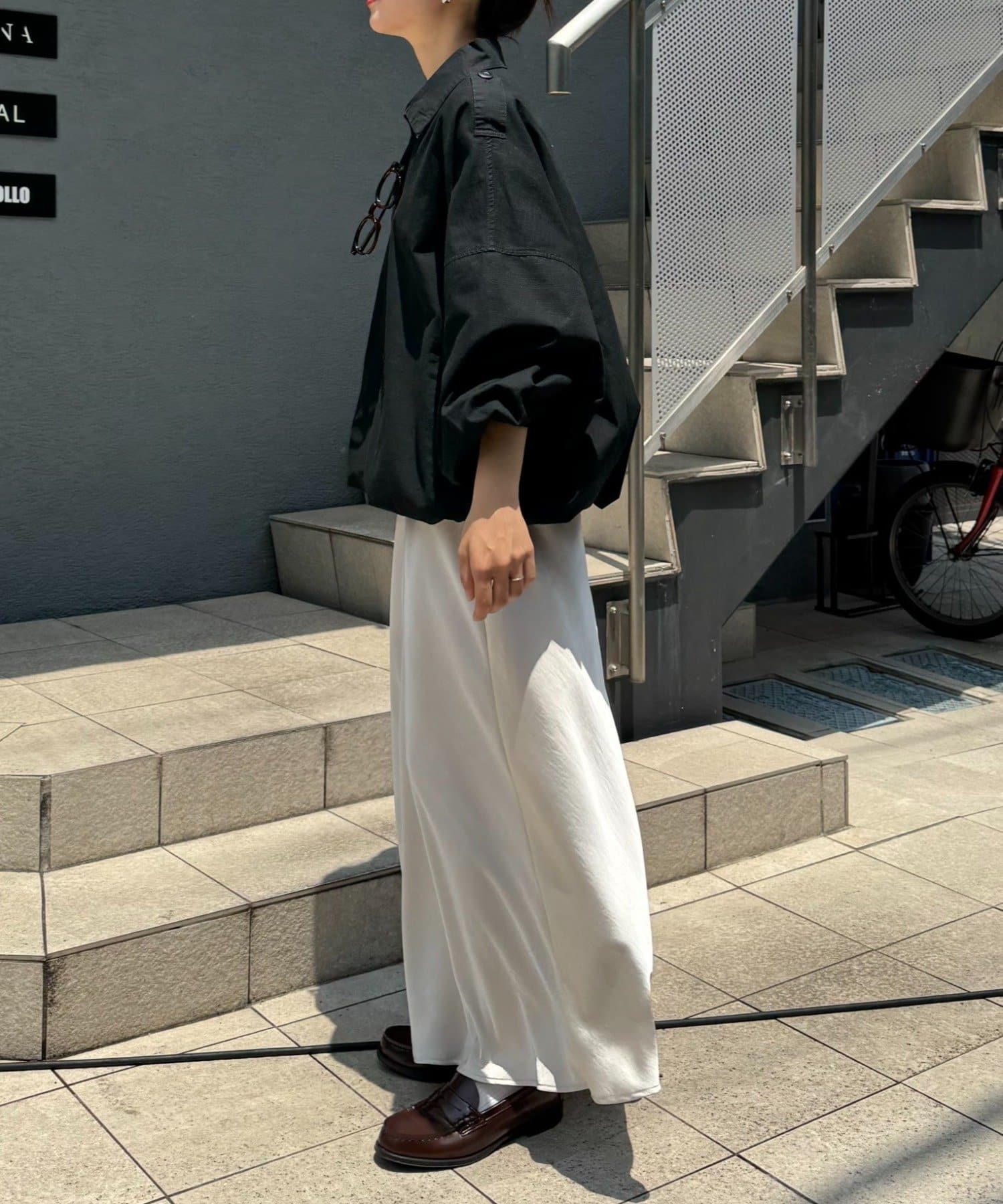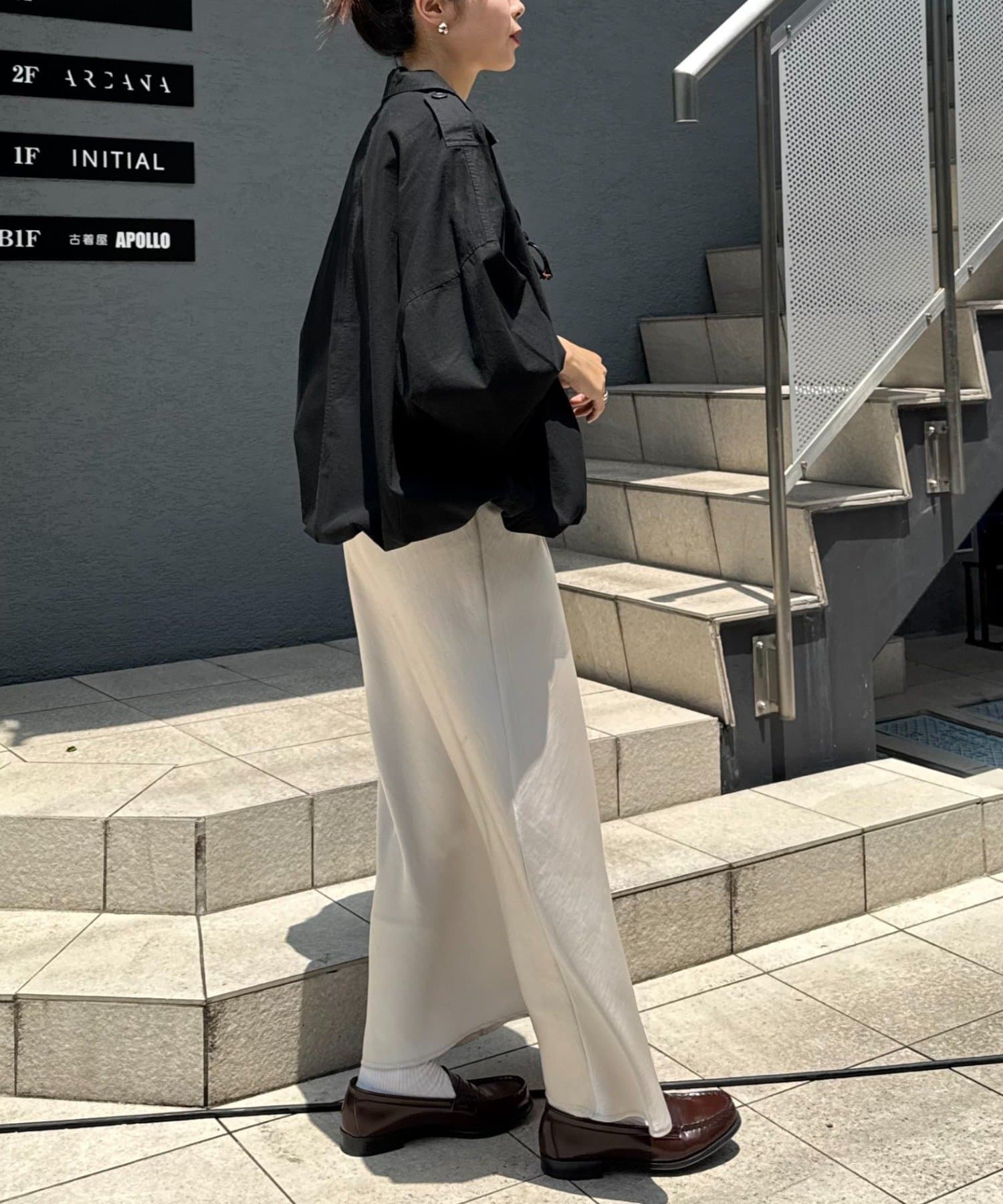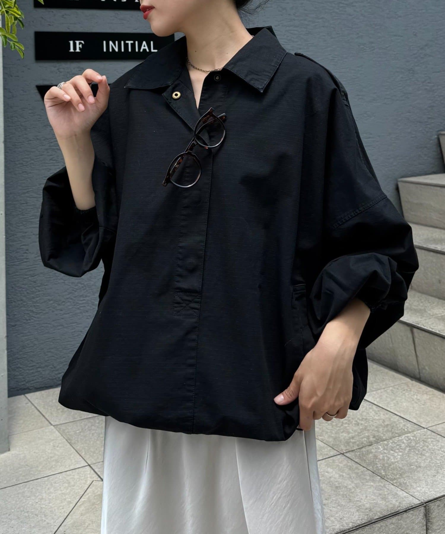 ゆったりとしたシルエットと、絞られた袖口のギャザーが、ふんわりとしたボリューム感を生み出し、こなれた雰囲気を演出します。