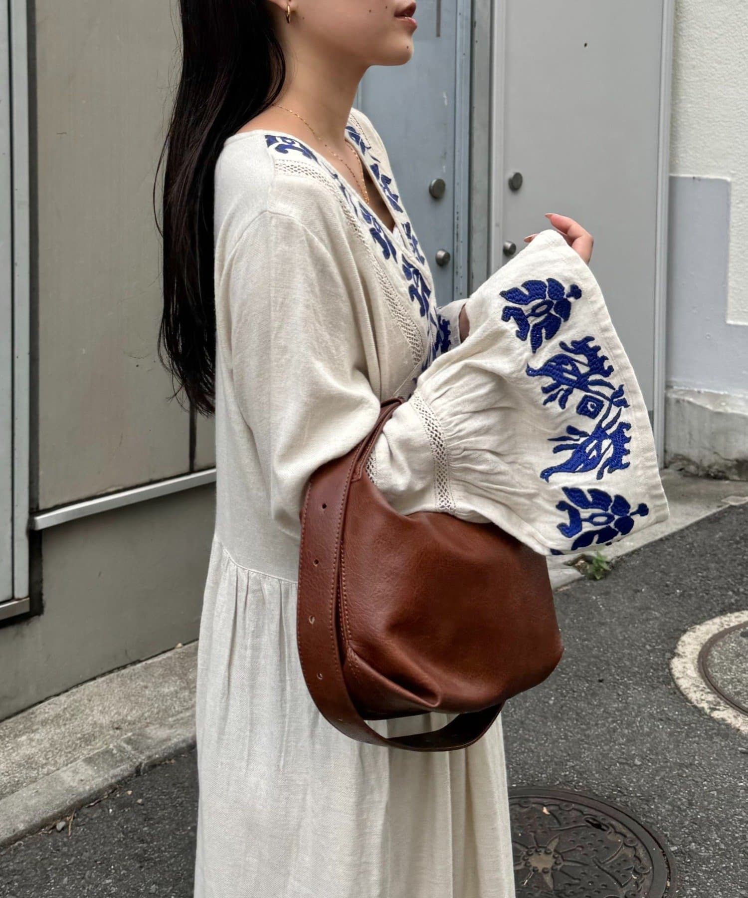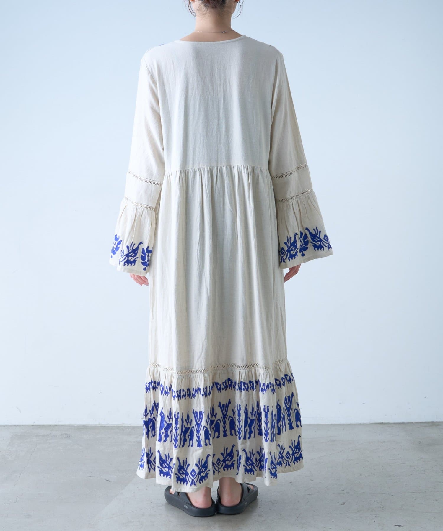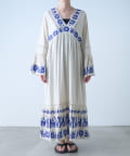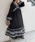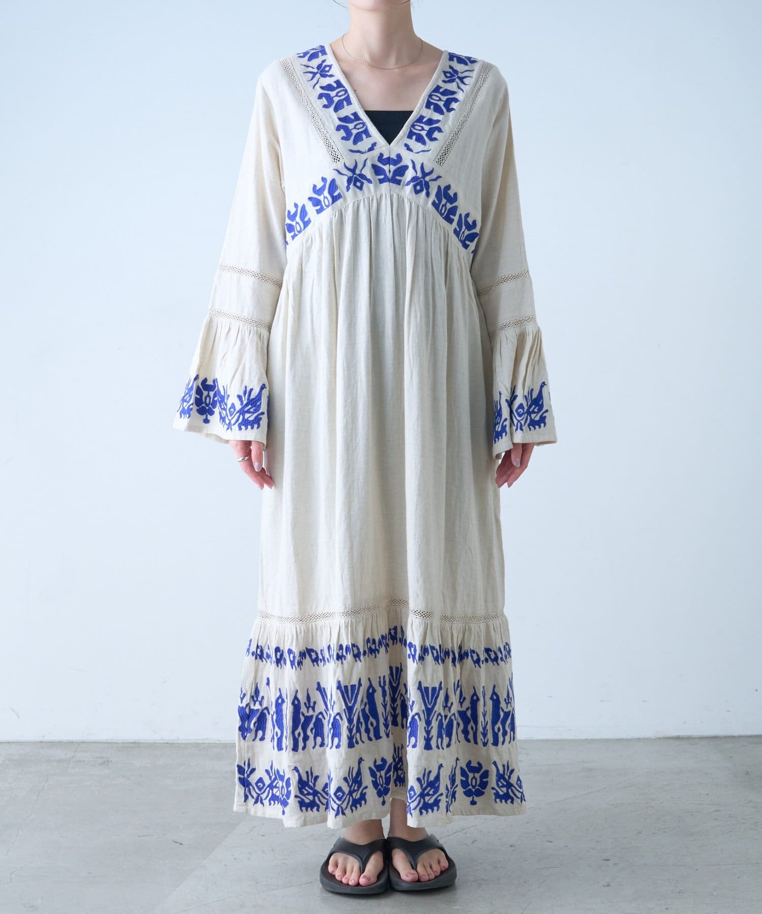 【aguni】刺繍Vネックフレアスリーブワンピ