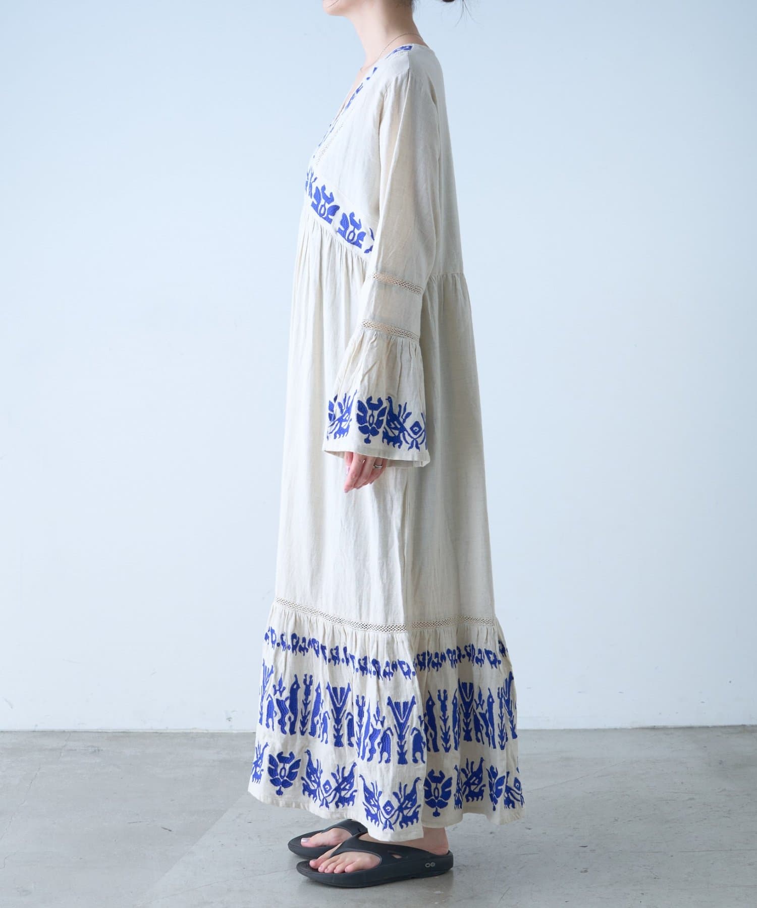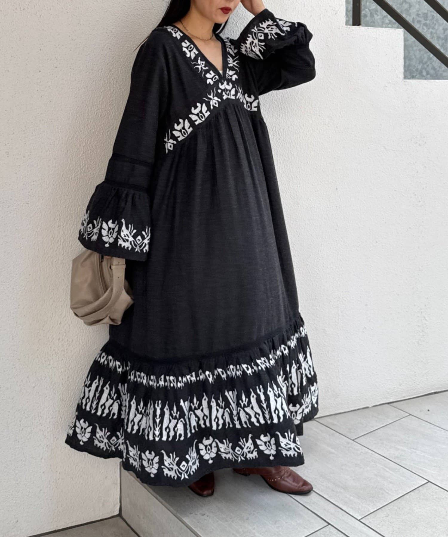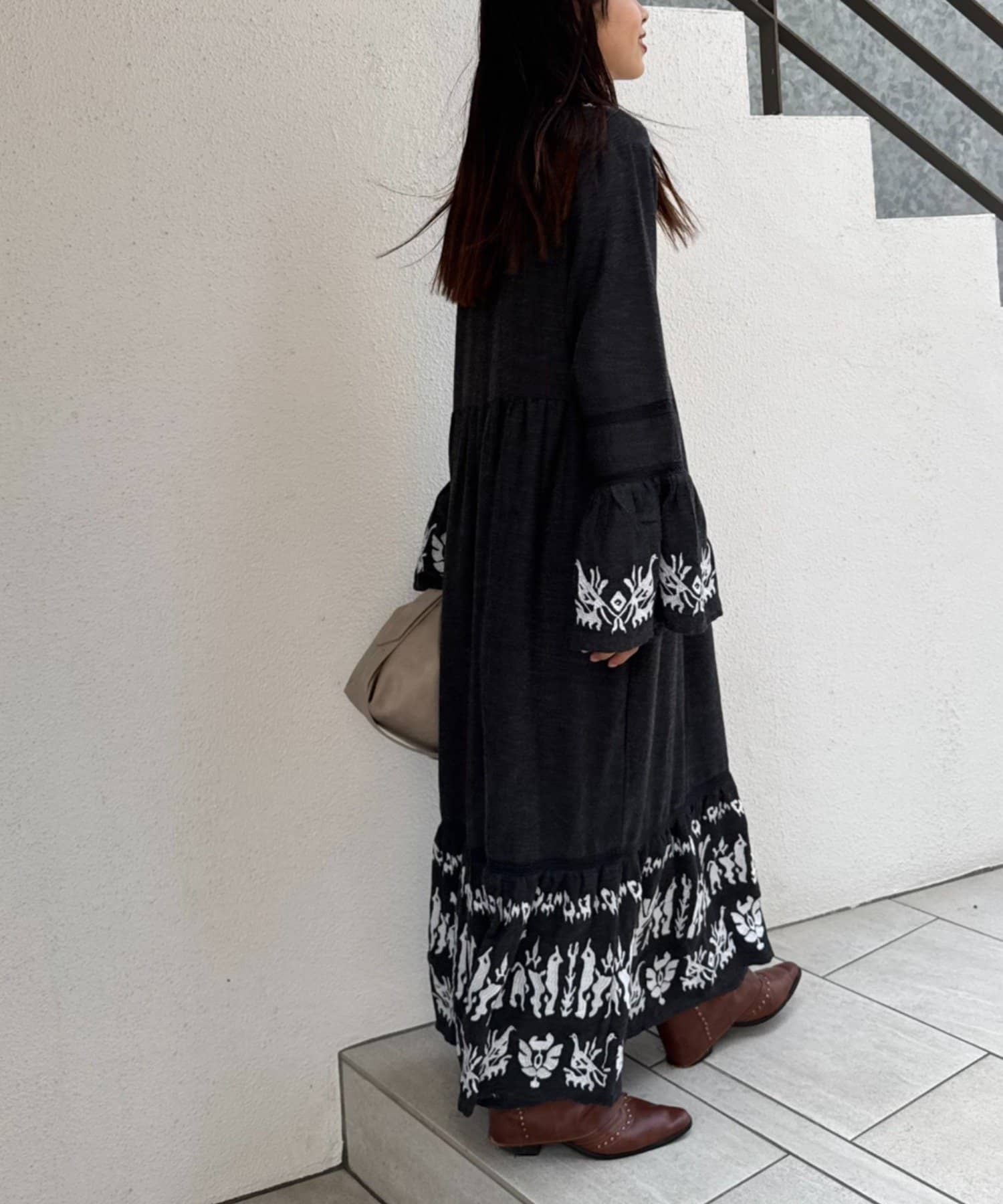 ウエストの刺繍が自然にスタイルを引き締め、女性らしいバランスを演出してくれます♩