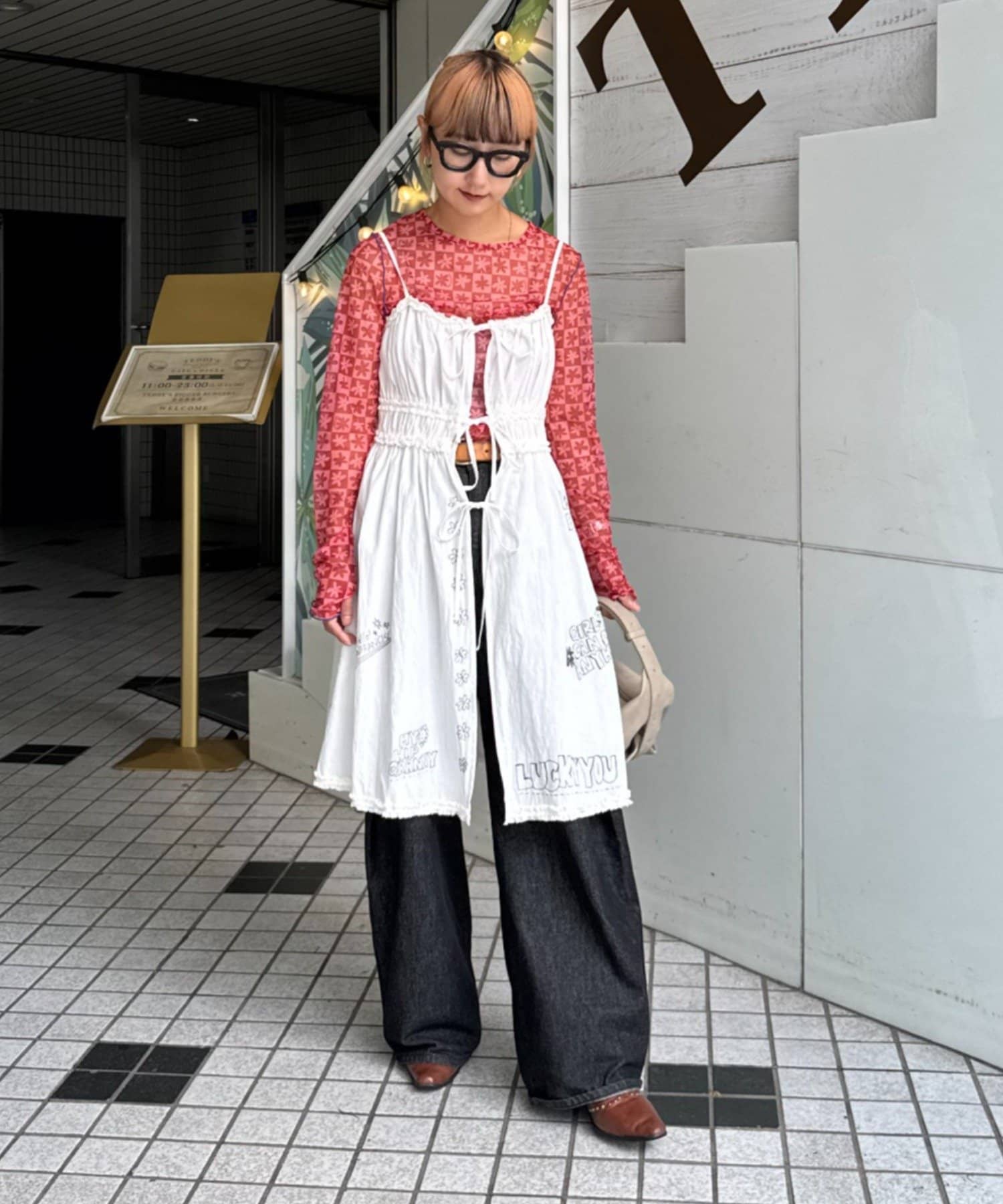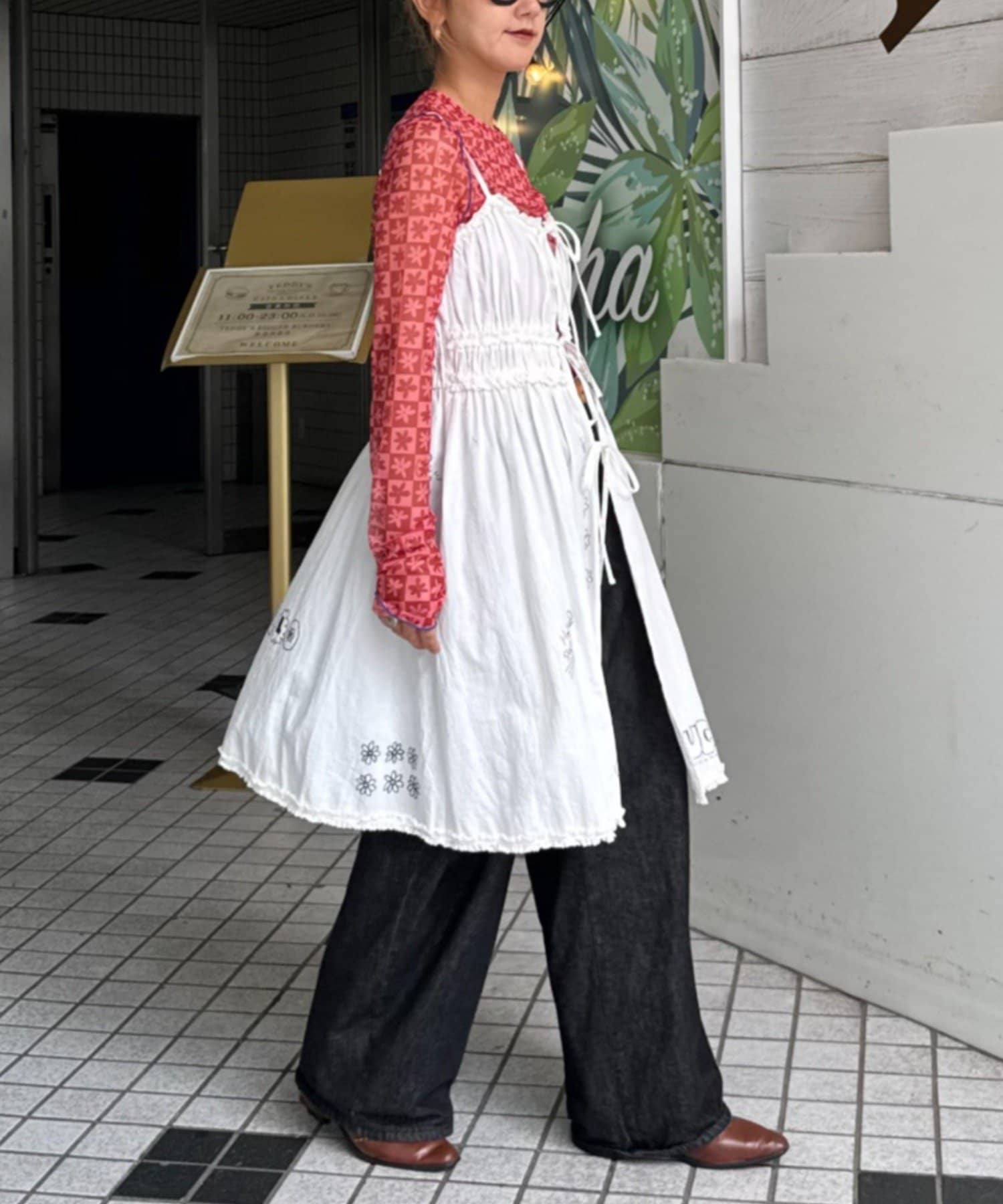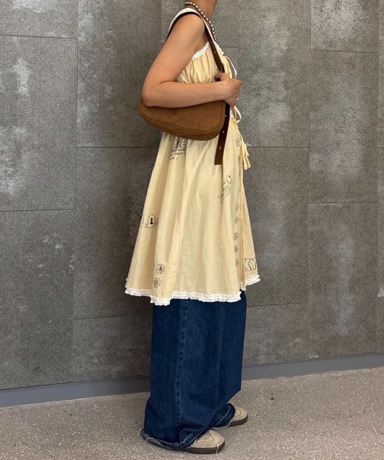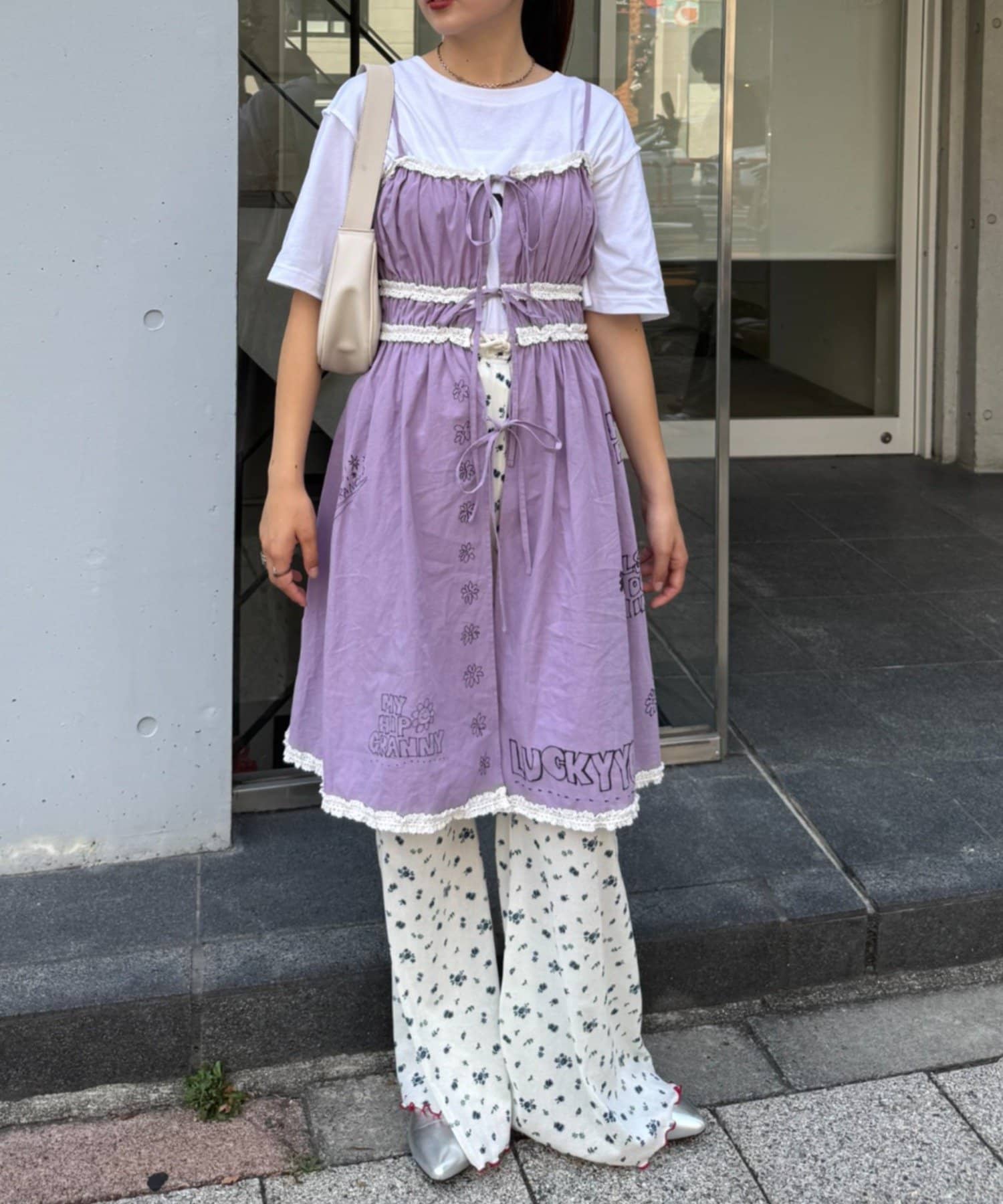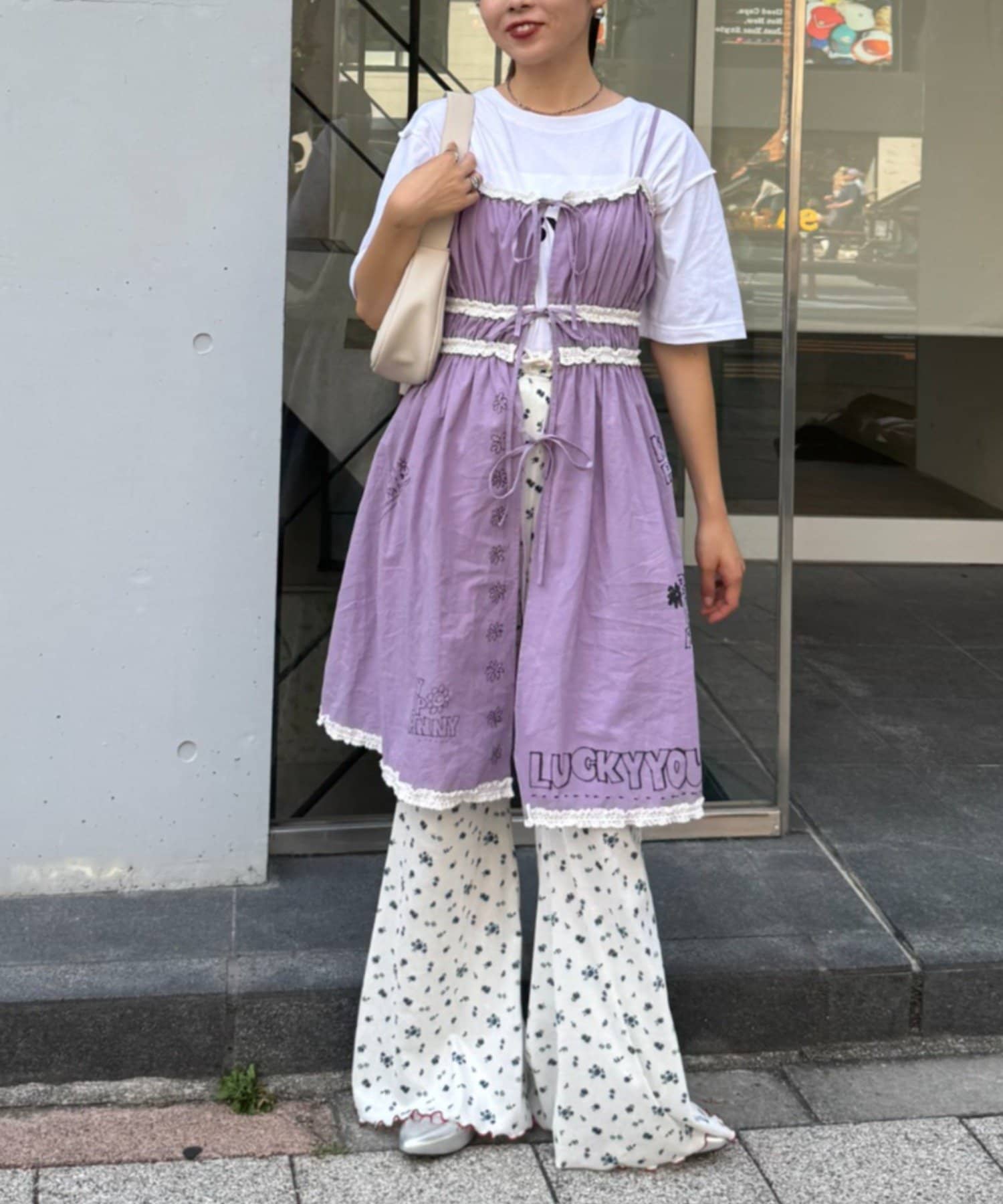 裾にもさりげなくあしらわれたフリルが甘すぎず、ちょっぴりクセのある仕上がりに。