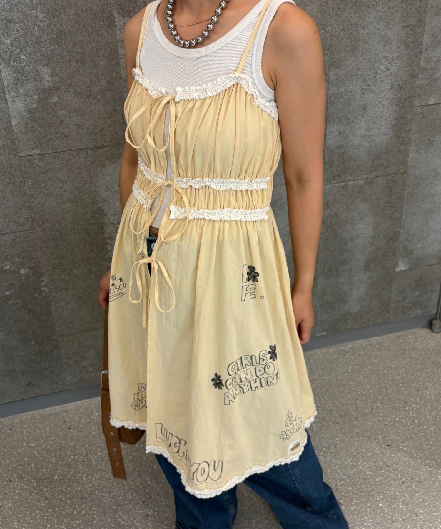 POPな落書きプリントが目を引く!レースキャミチュニックが登場