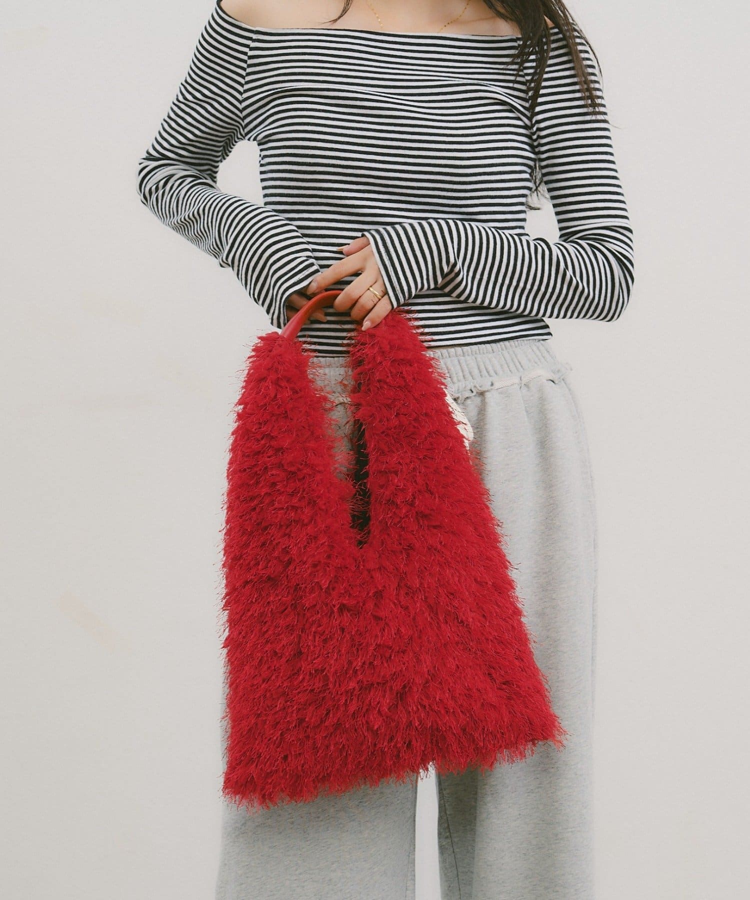 もふもふの毛足の長いボアフリンジが魅力のバッグ。