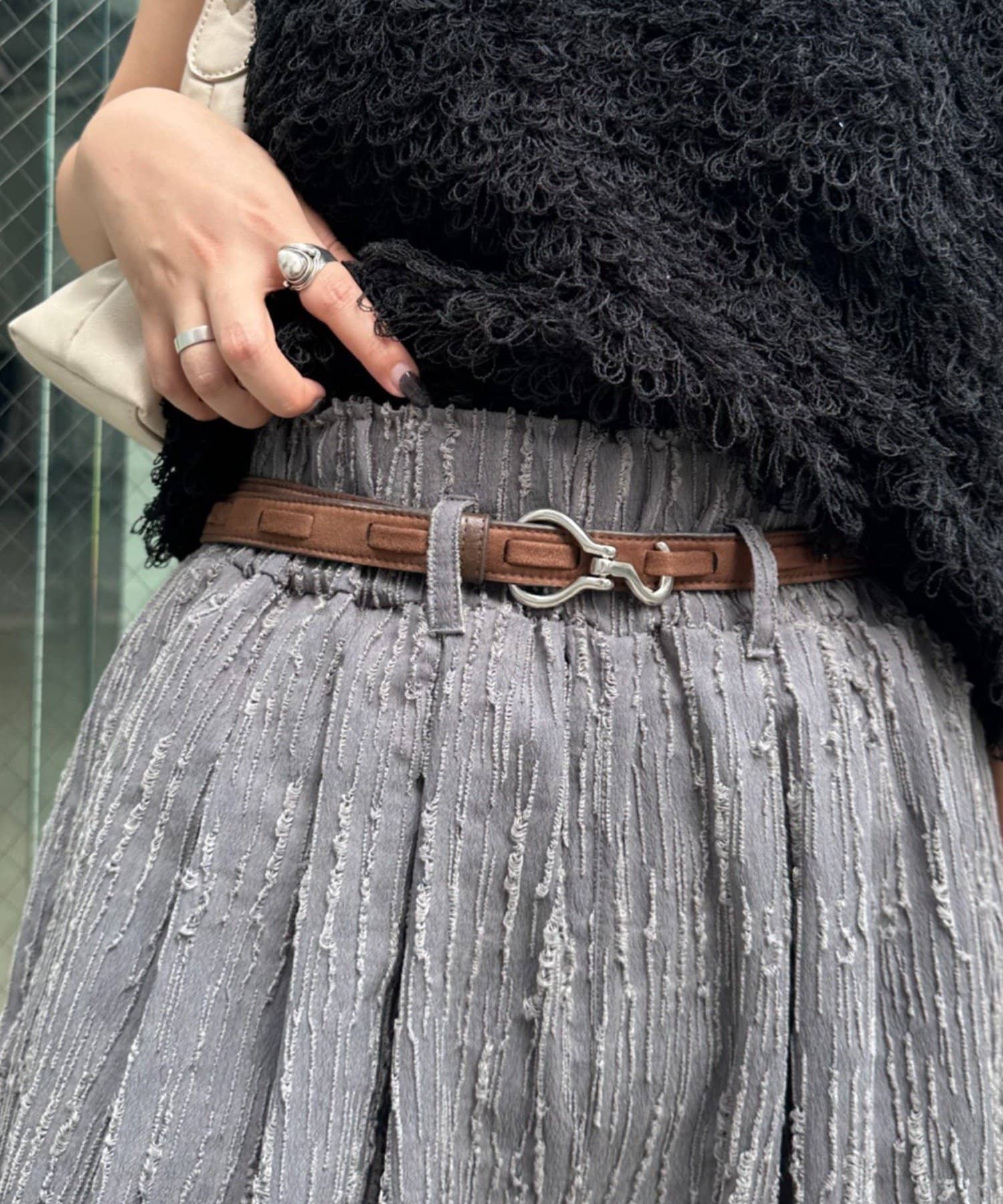 他とは被らないフック型のバックル&タックデザインがポイント!