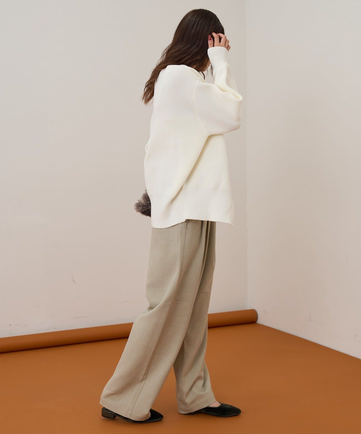 ワイドシルエットなので足元はスニーカーでラフにまとめても、ローファーやブーツで上品に格上げしても相性抜群。