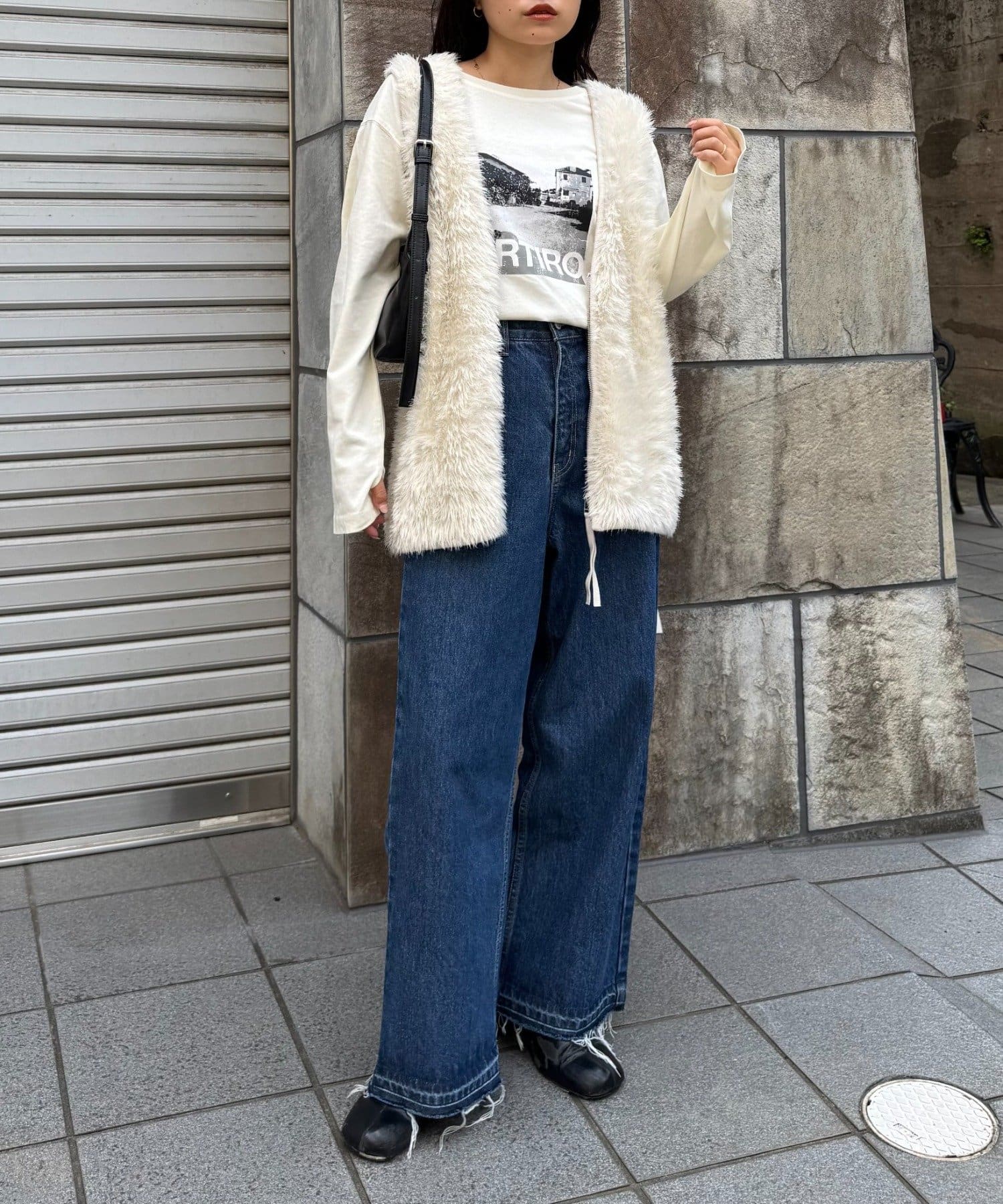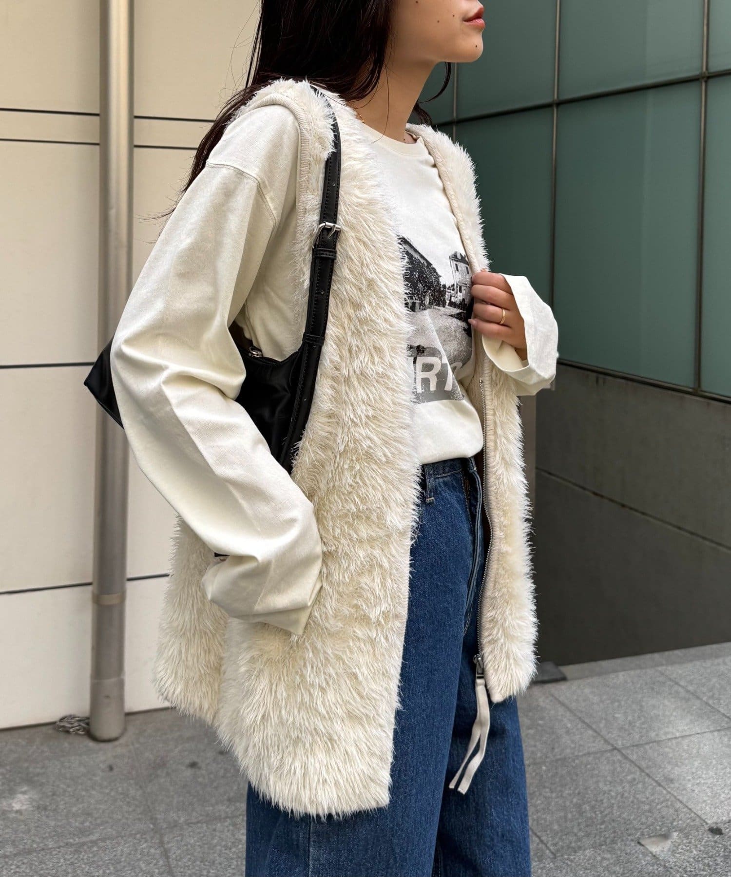 毛足の柔らかな風合いがコーデに季節感をプラスし程よくリラックスした抜け感を演出♩