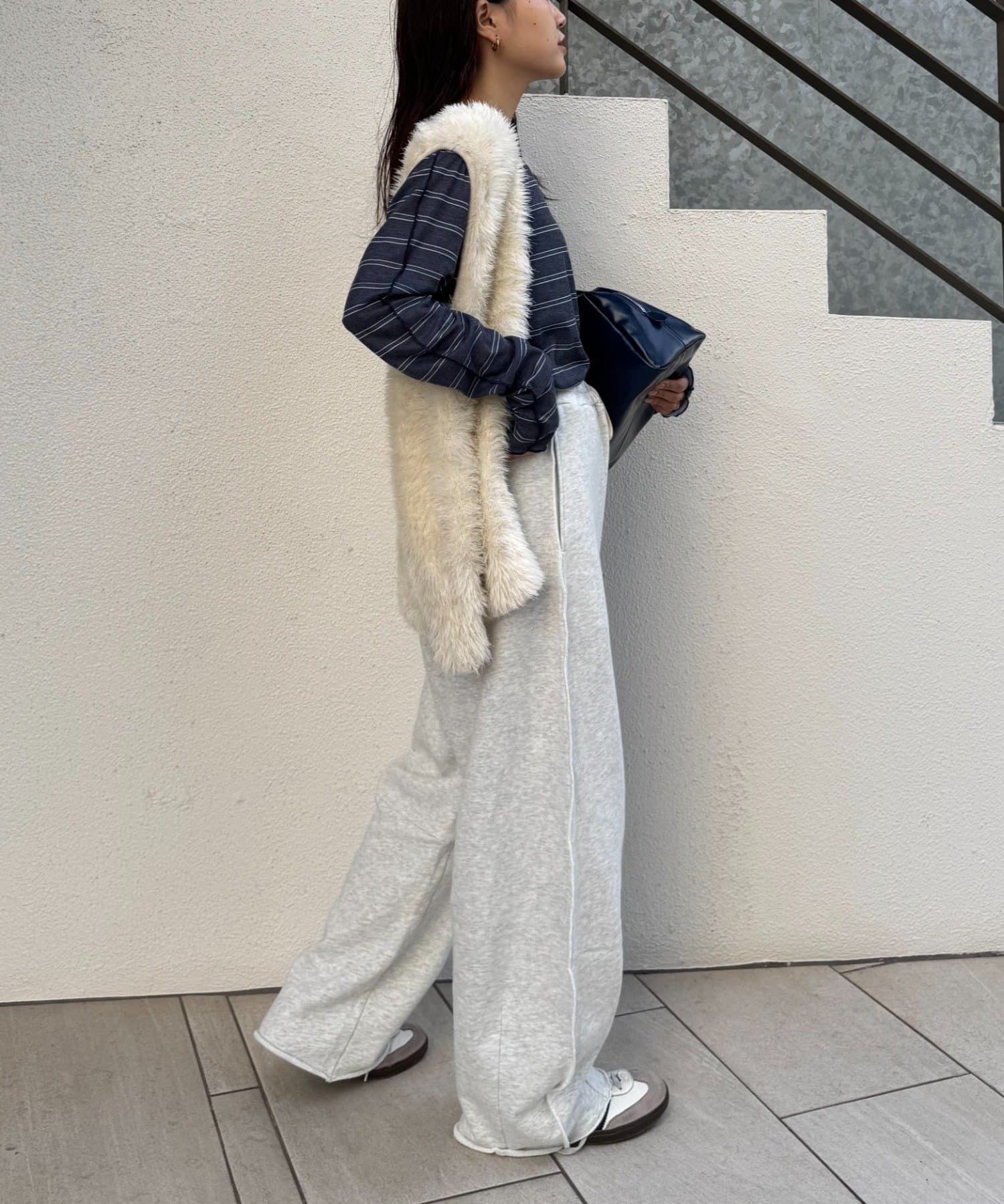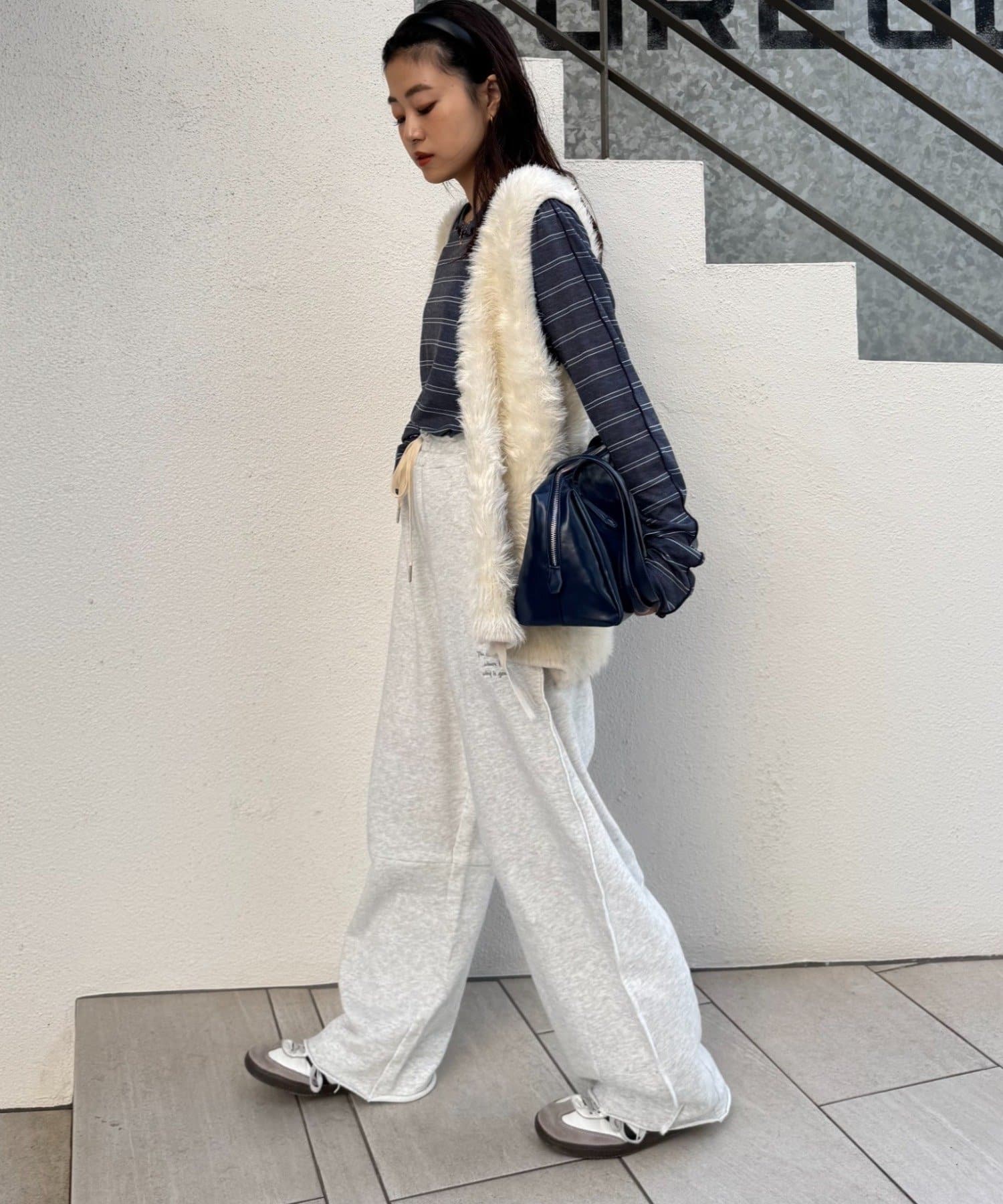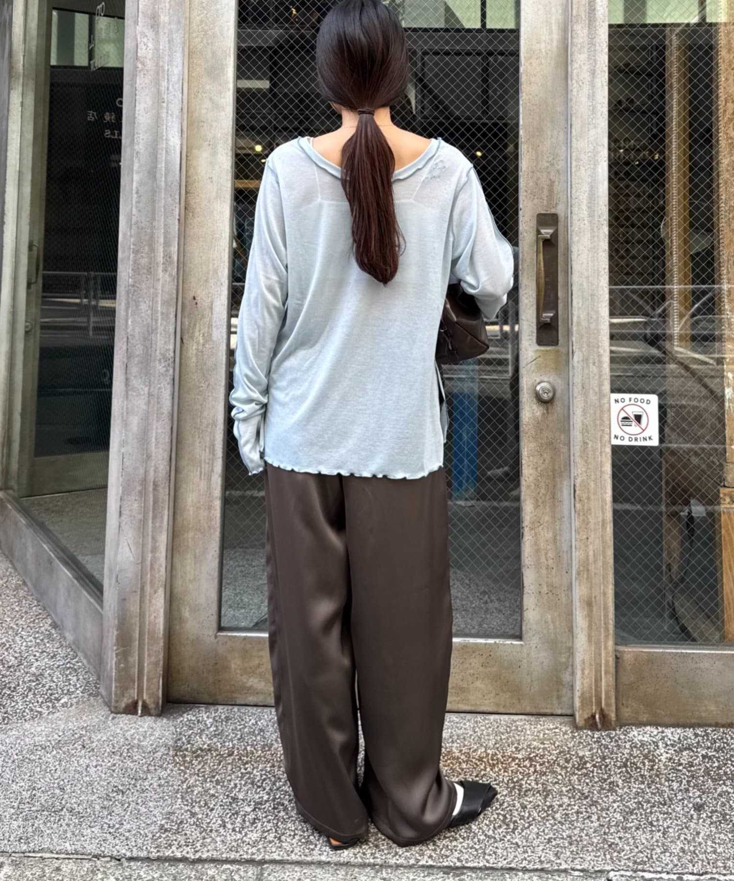メローの柔らかいラインと透け感が、デニムやワイドパンツ合わせも女性らしい雰囲気に。
