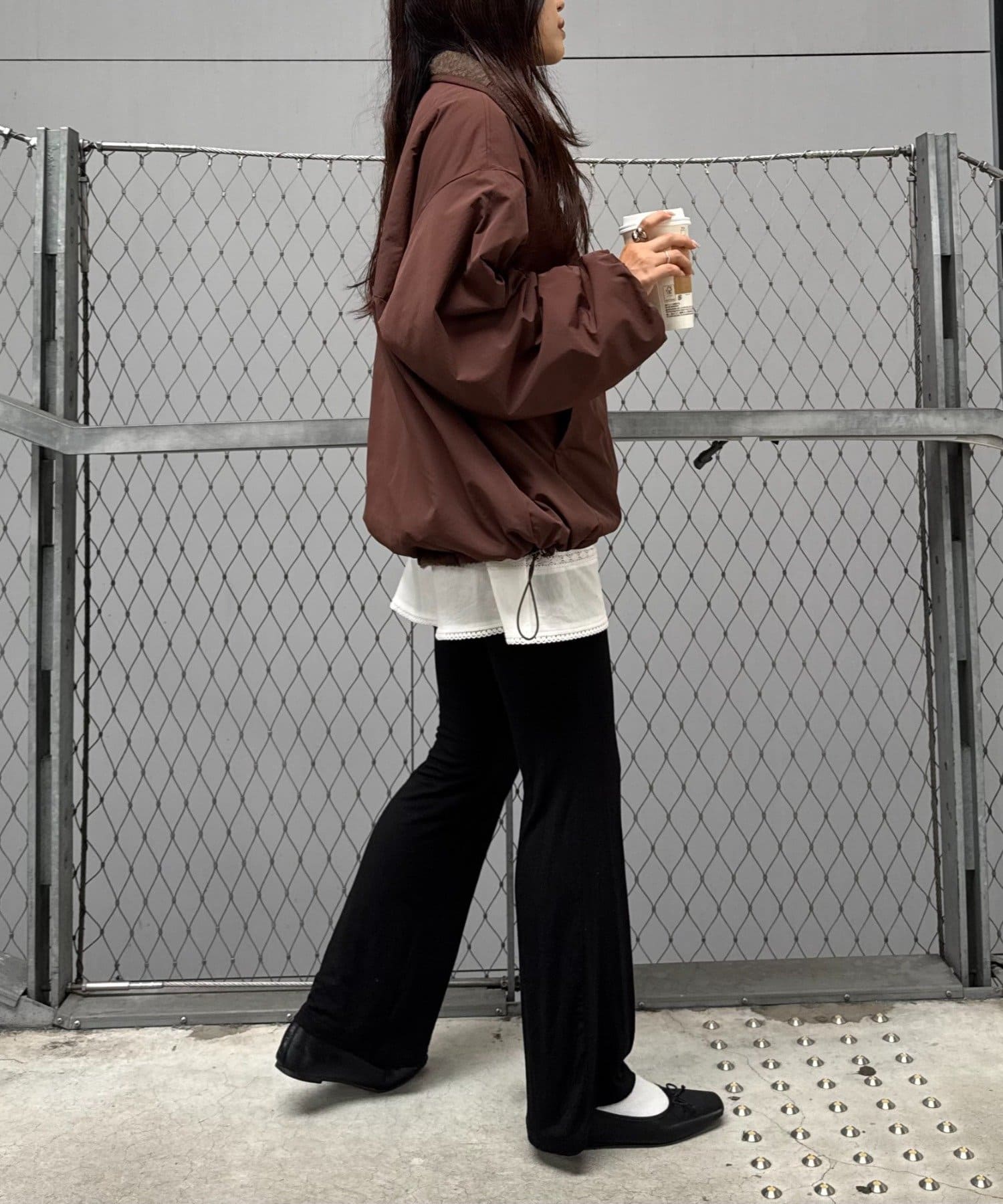 ナイロン面を表にしてストリートっぽく、シャギー面を表にしてふわっと暖かみのある印象に。