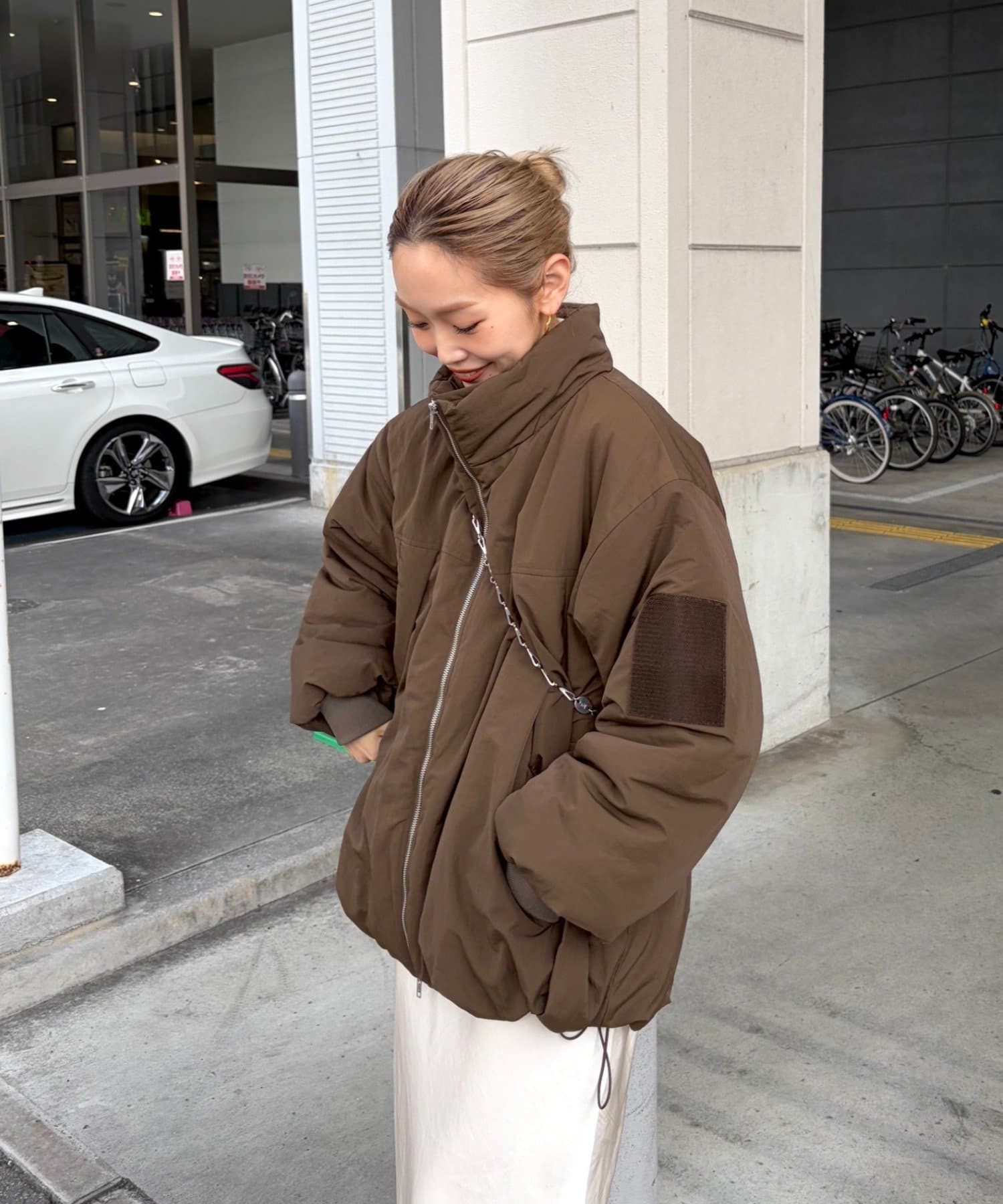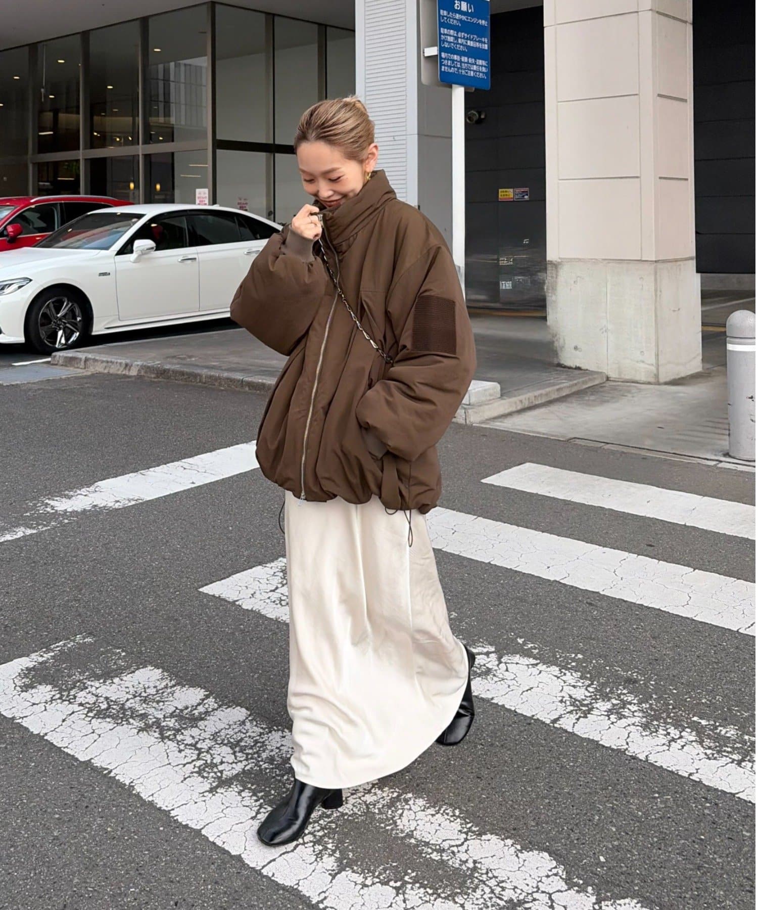 コーデのバランスを崩さずスタイリングできる中綿アウターを実現しました◎