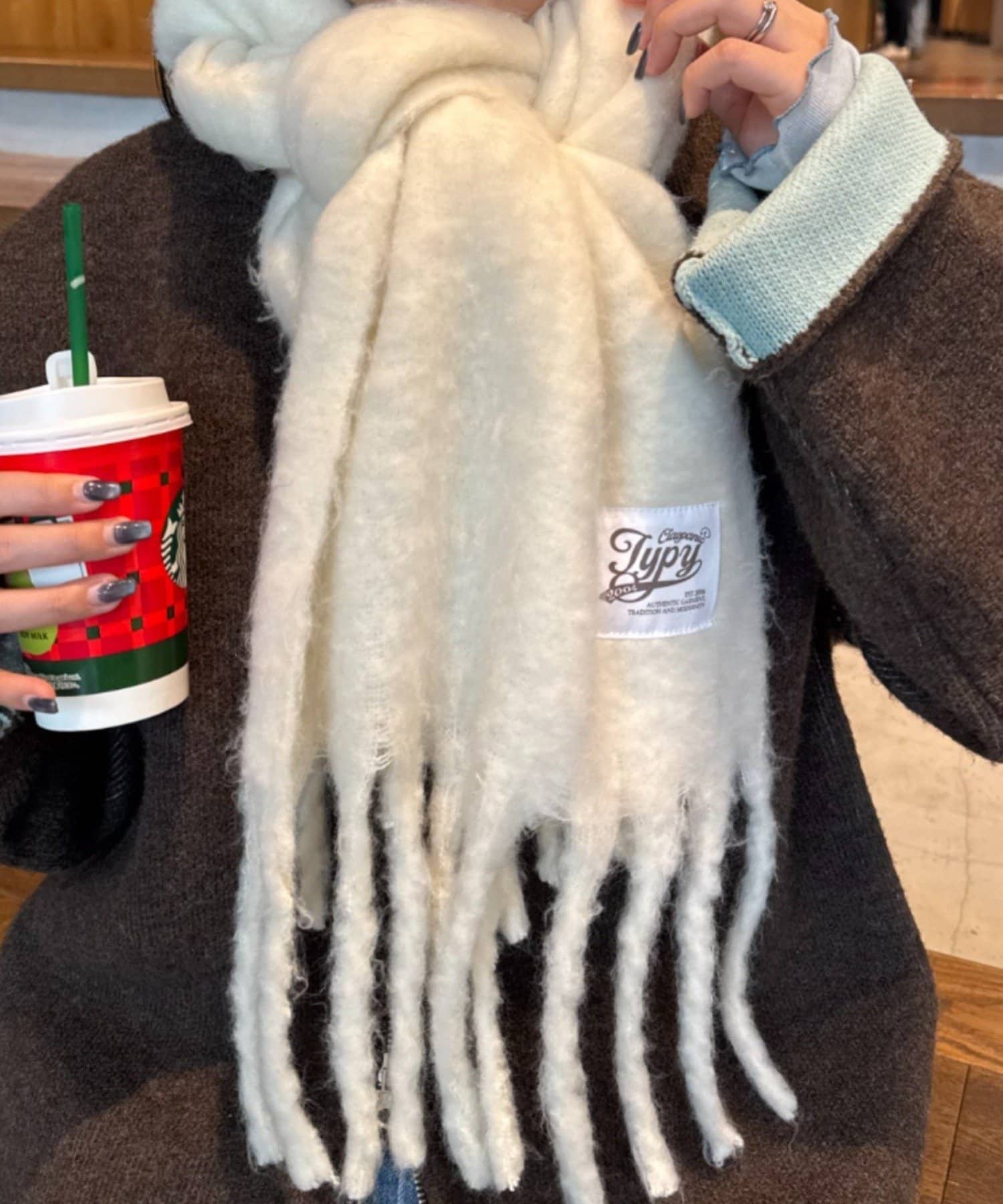 「太フリンジマフラー」は、静電気防止加工を施しているから、あの嫌なパチパチを軽減してくれます。