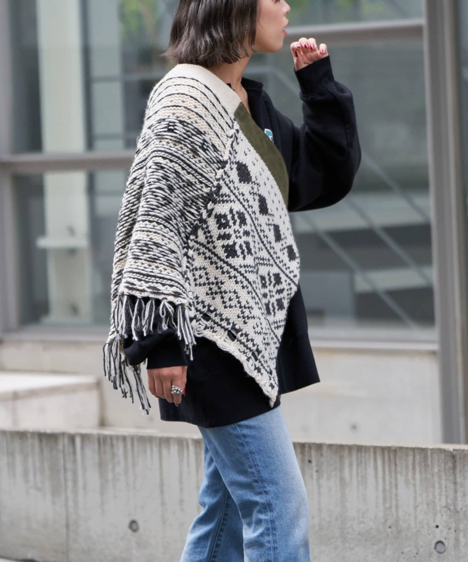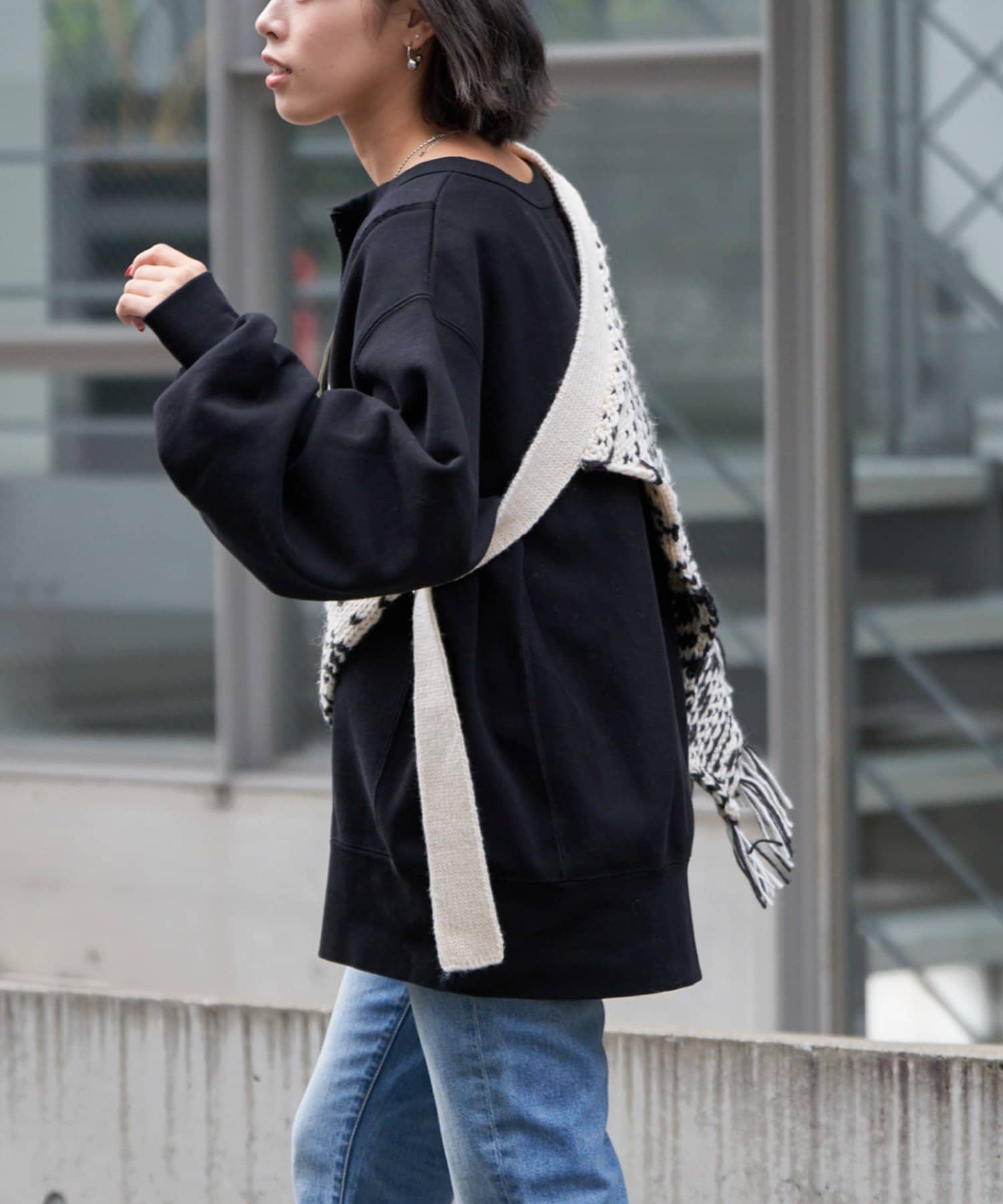 モノトーンでまとめることで、柄物ながらも様々なスタイリングに合わせやすいデザインに。