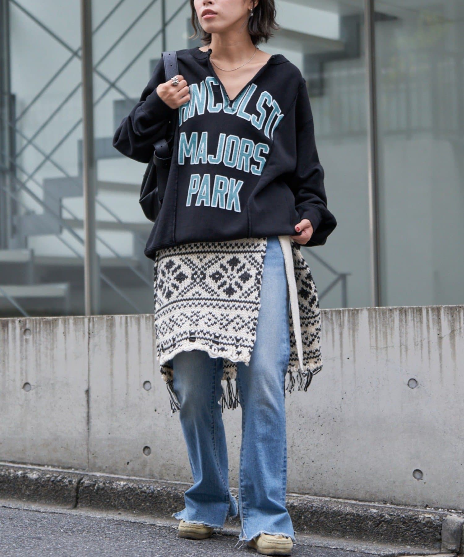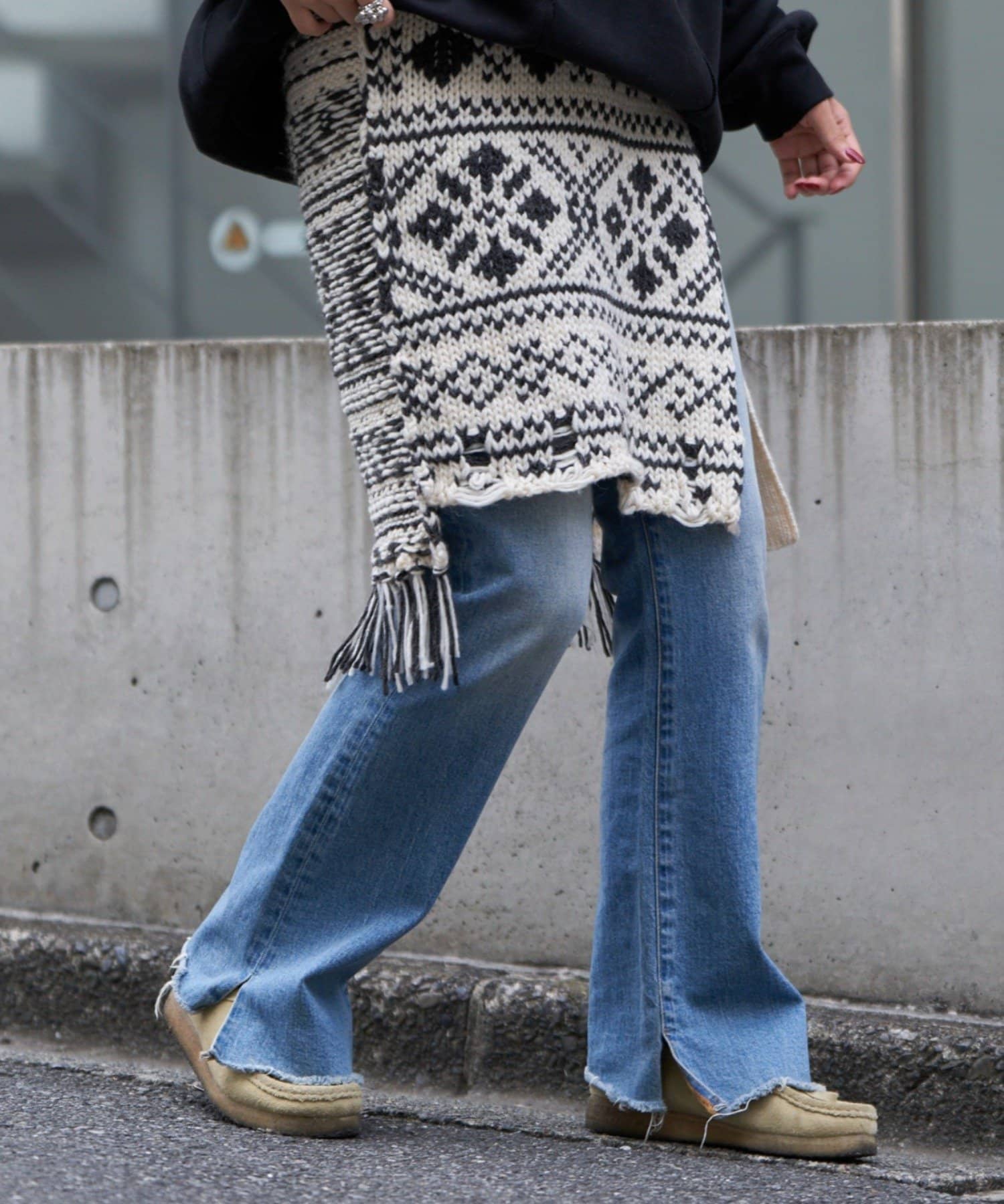 足元はスニーカーやブーツなど、合わせるアイテムによって雰囲気を変えられるので、様々なコーディネートを楽しめます。