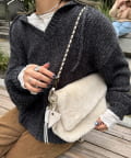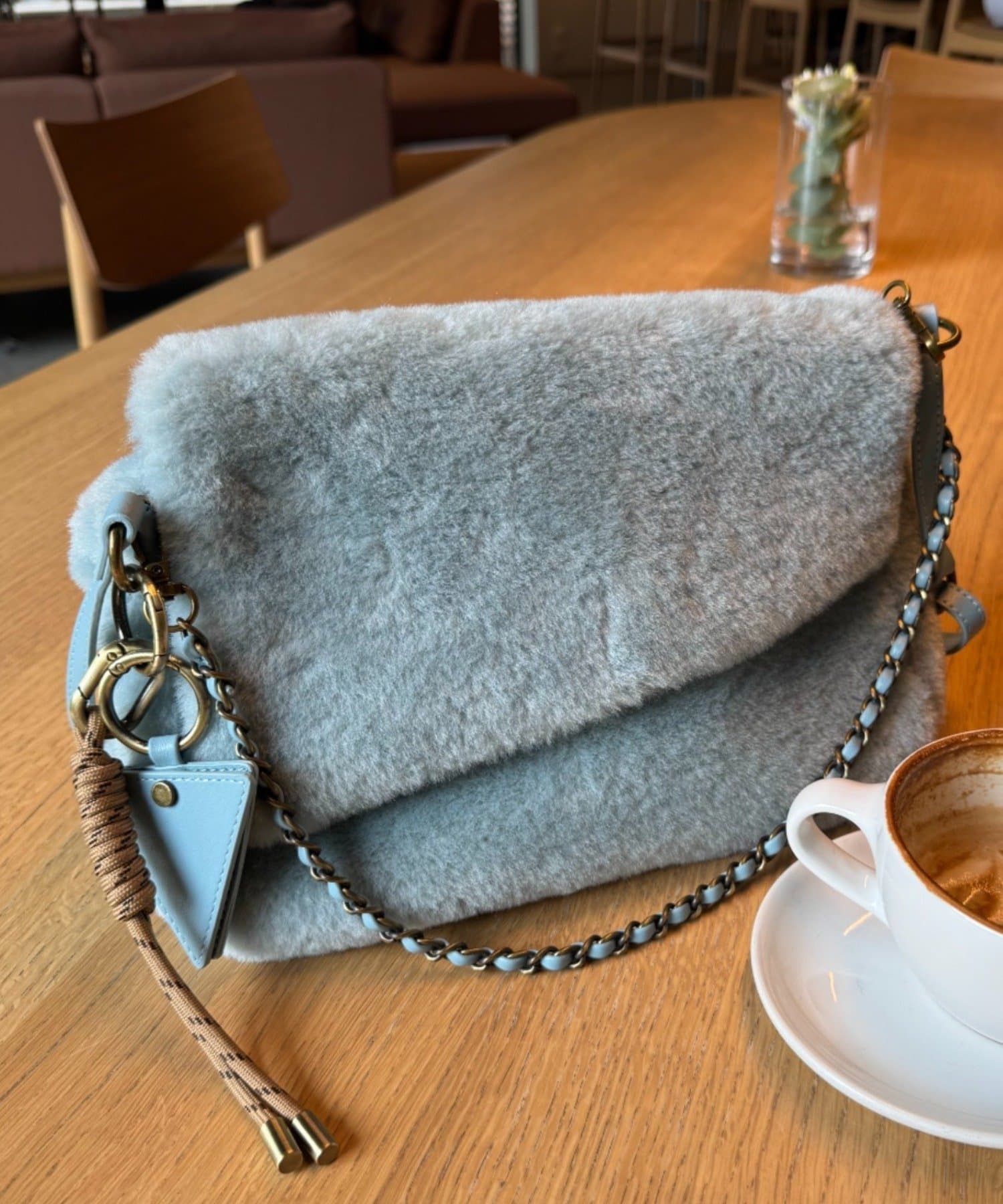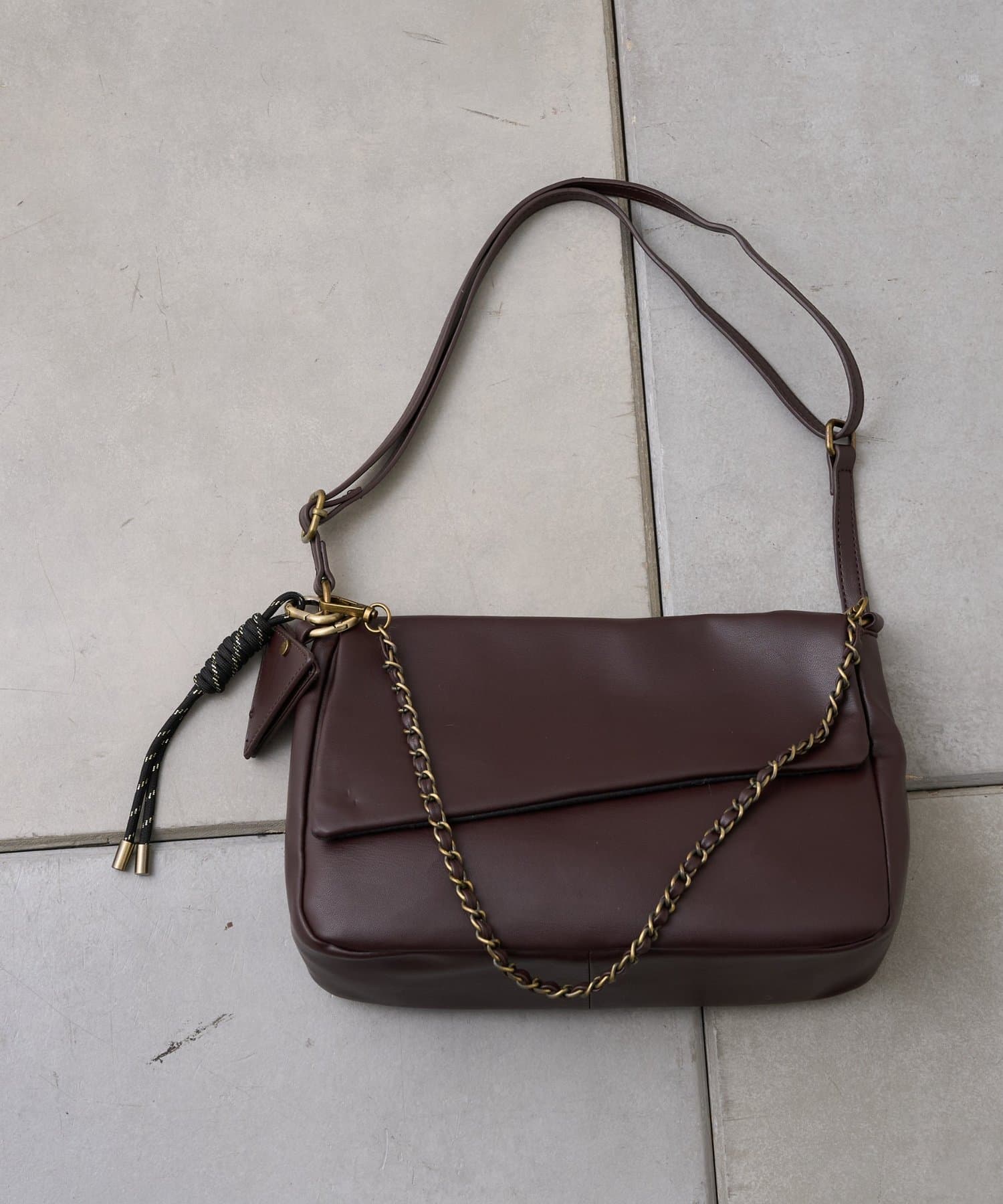 ミラーチャーム付きアソート素材フラップチェーンBAG