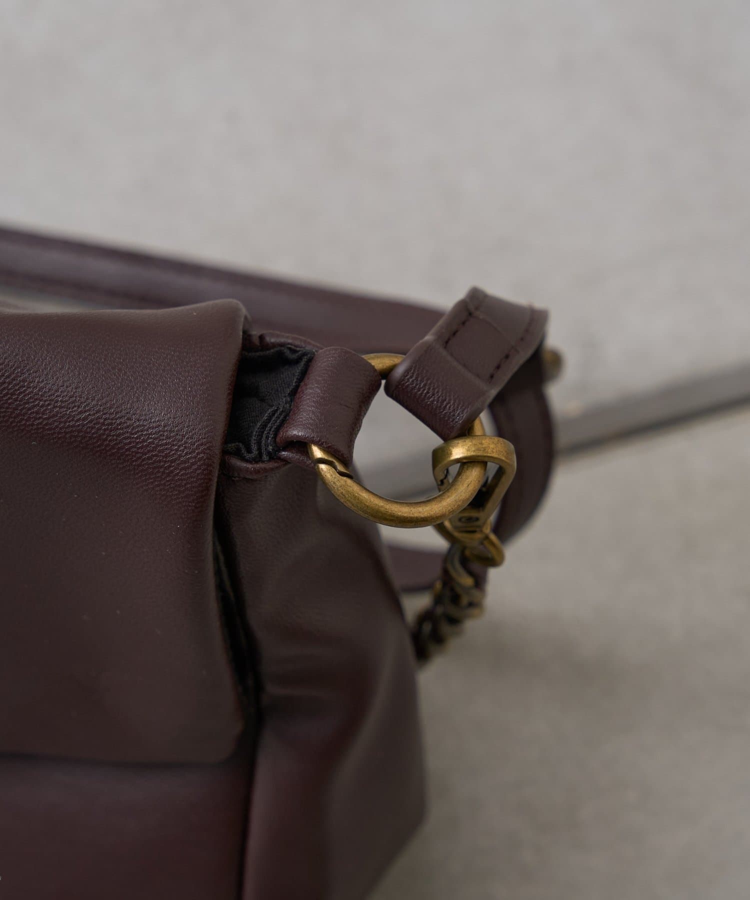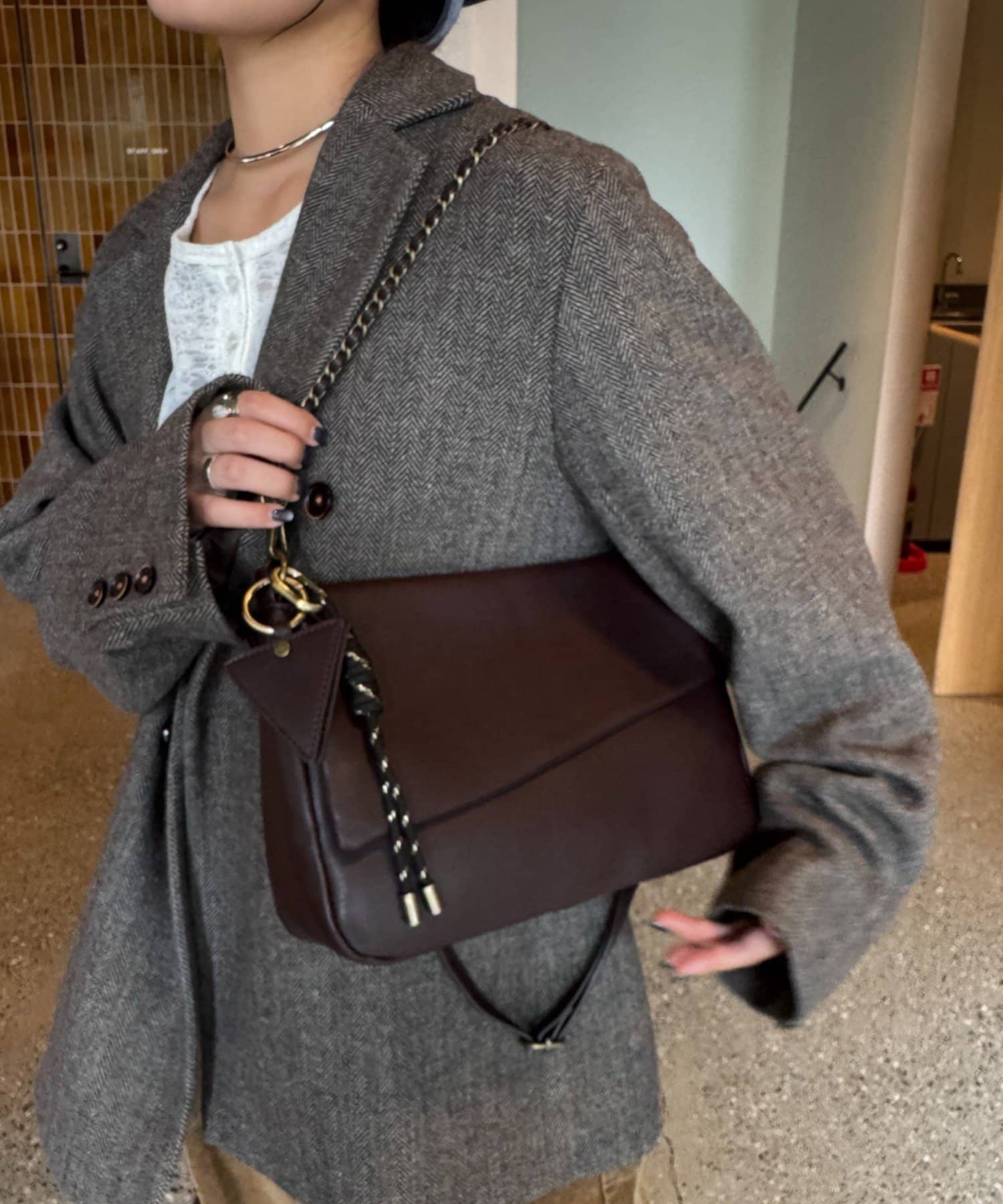 チェーンストラップを付ければ、ショルダーバッグや斜めがけバッグとして、ストラップを外せば、ハンドバッグとして使えるマルチウェイ仕様。