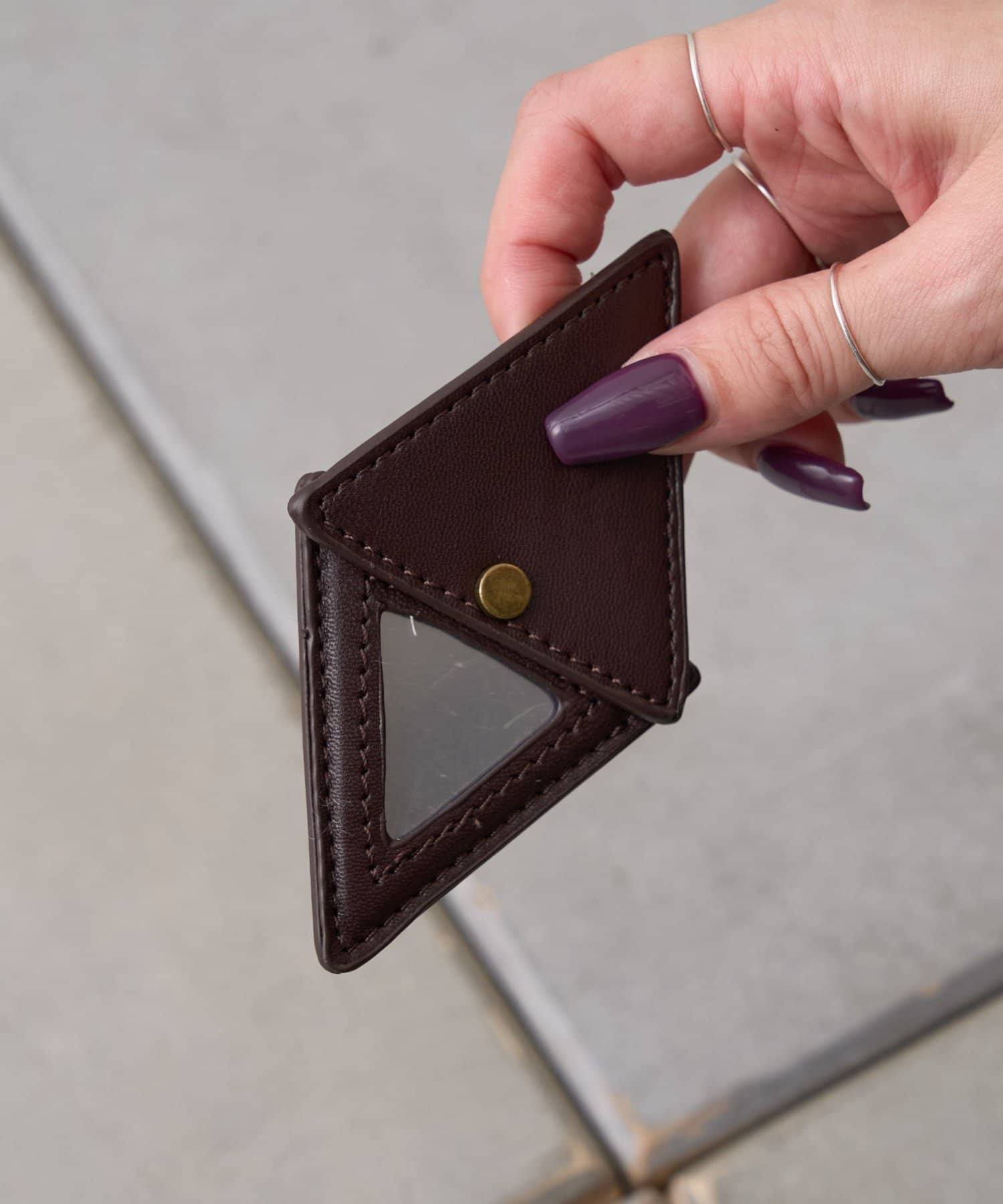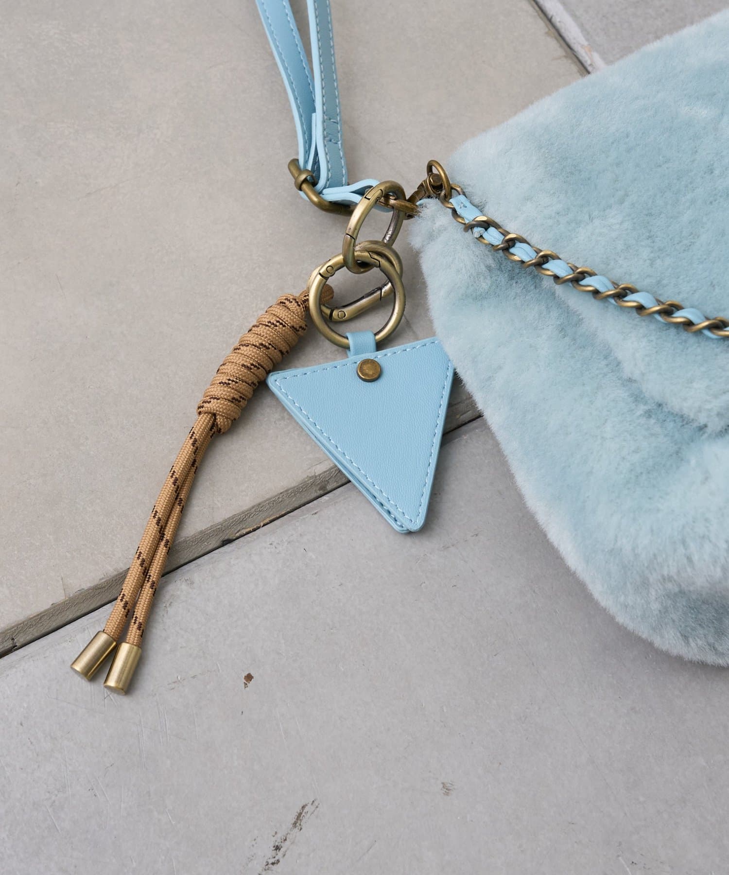 バッグのアクセントになっている、トライアングル型のミラーチャームもポイント。