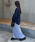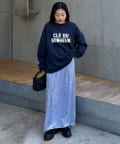 光沢のある素材なので、ざっくりニットやスウェットなどもラフ過ぎないお洒落な印象に。