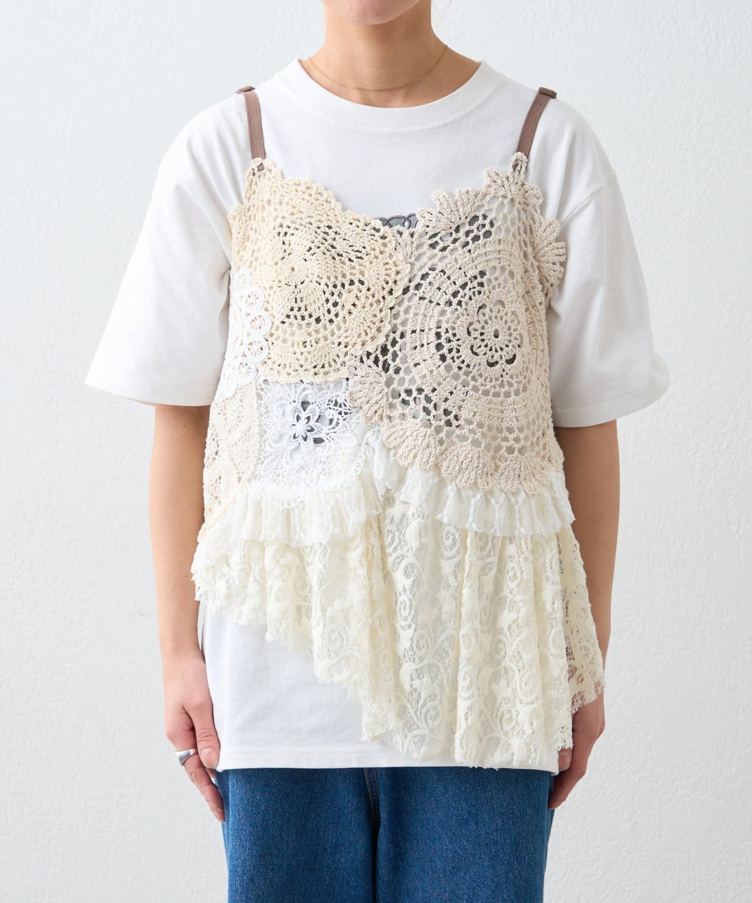 上品なレースが華やかでレイヤードスタイリングを楽しめるビスチェトップス。