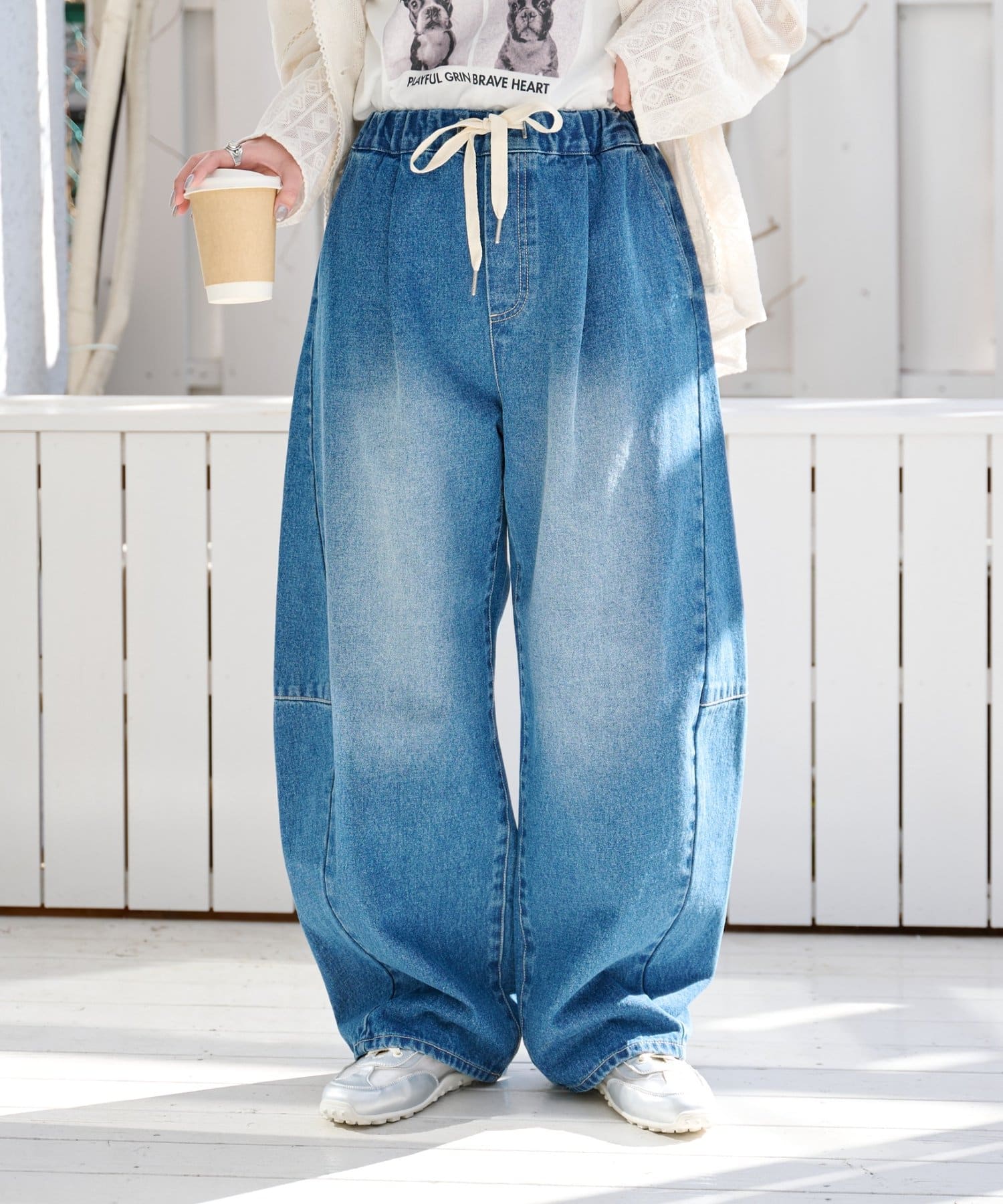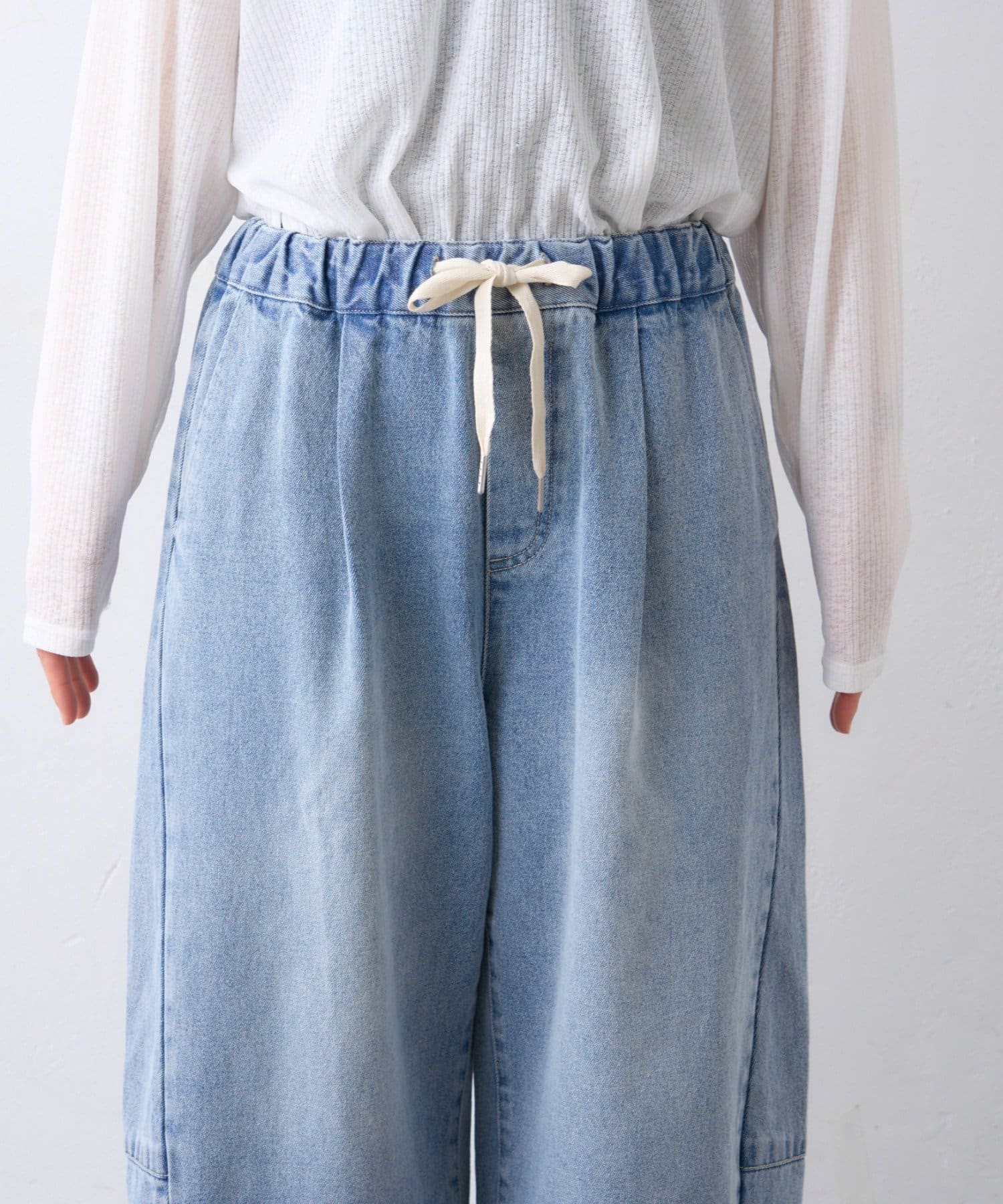ウエストはゴムで、デニムならではの見た目を保ちつつ、リラックスして穿けるのが魅力。