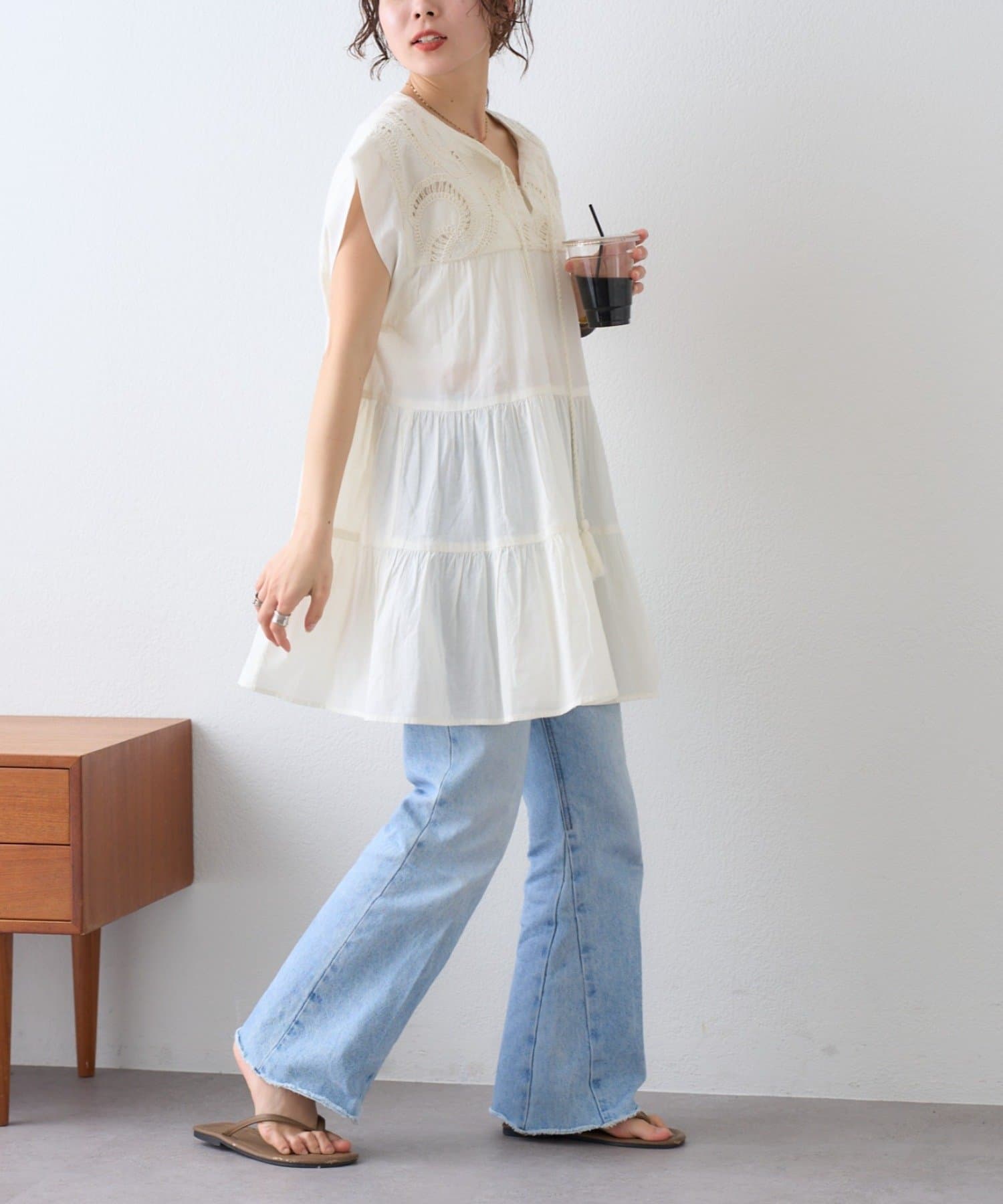 裾にかけて広がるシルエットで程よく甘さをMIXしたチュニックワンピ