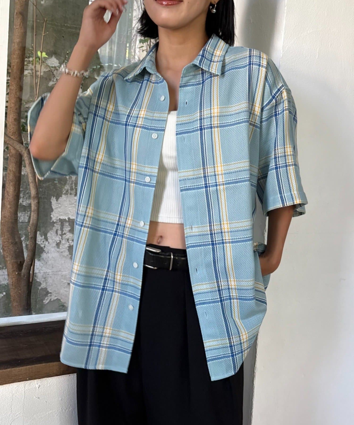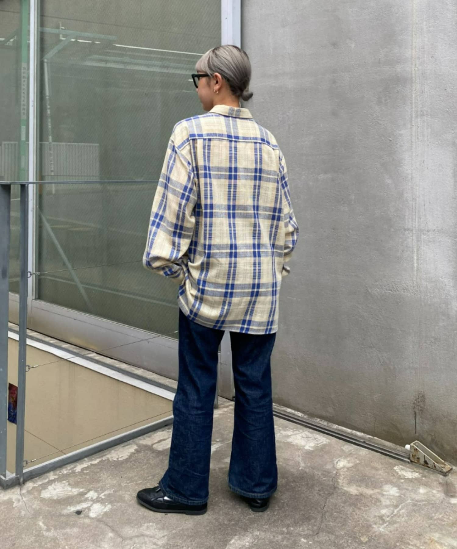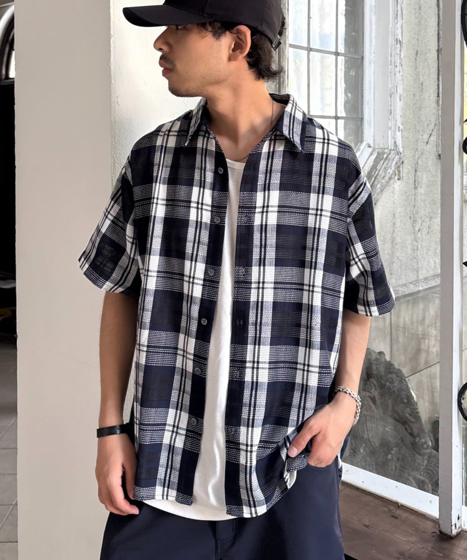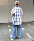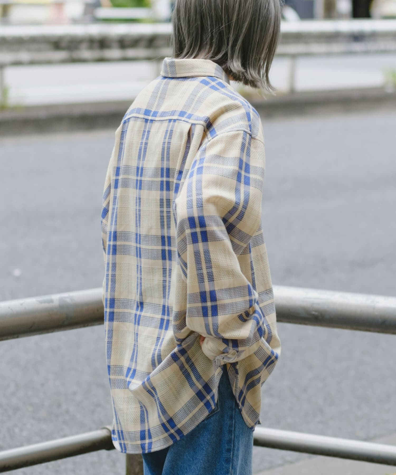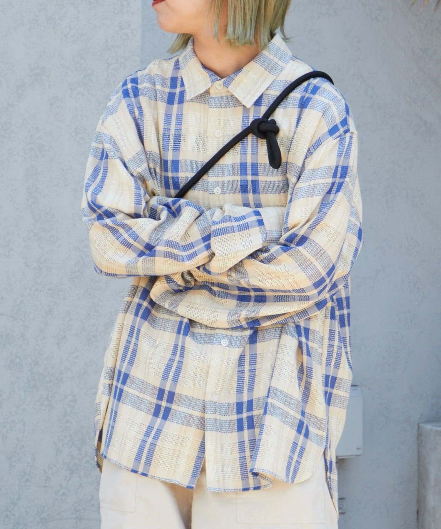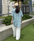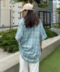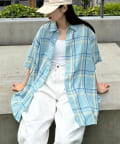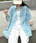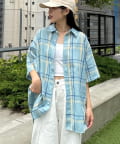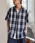 【ユニセックス】バスケット編みメッシュチェックシャツ