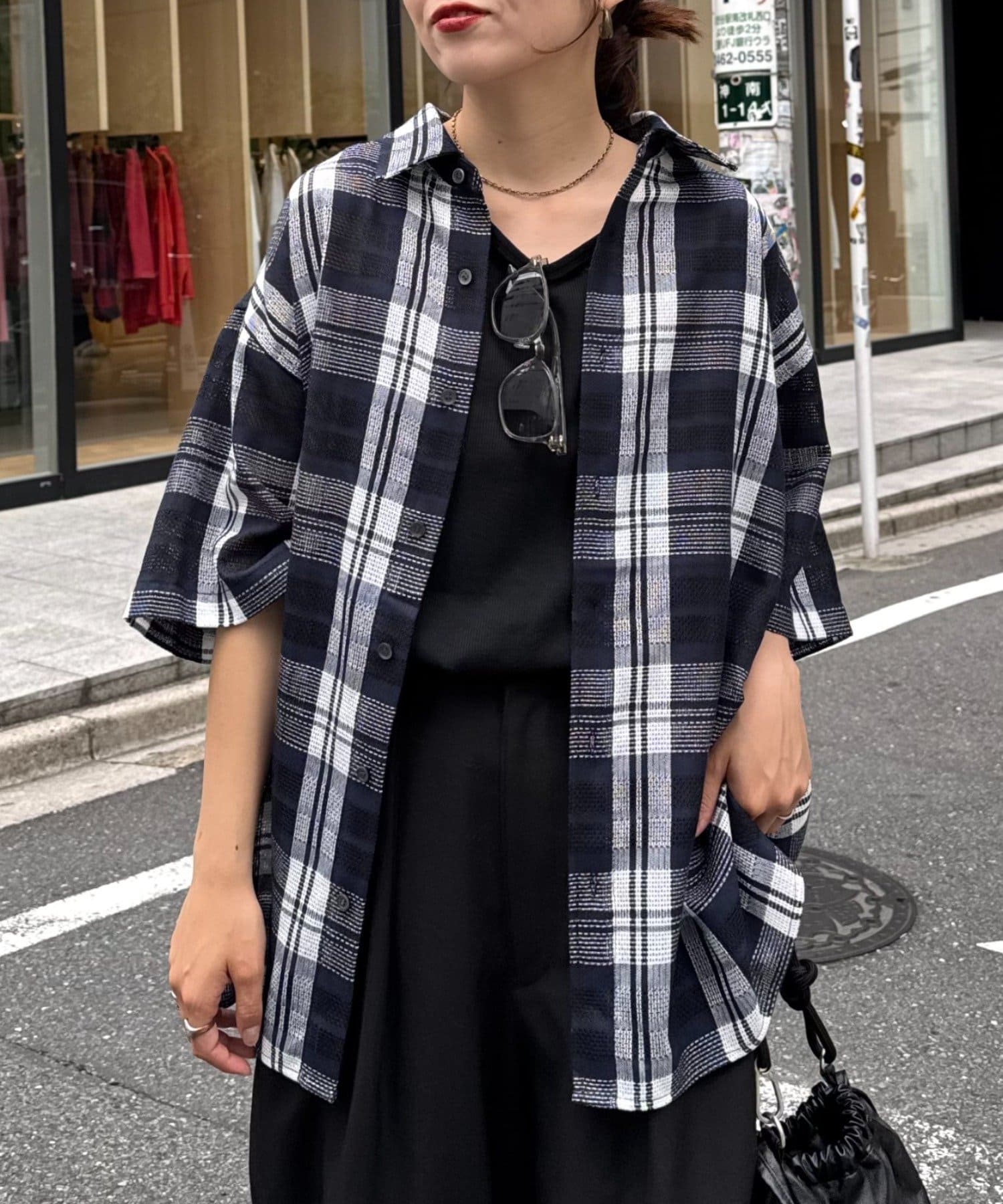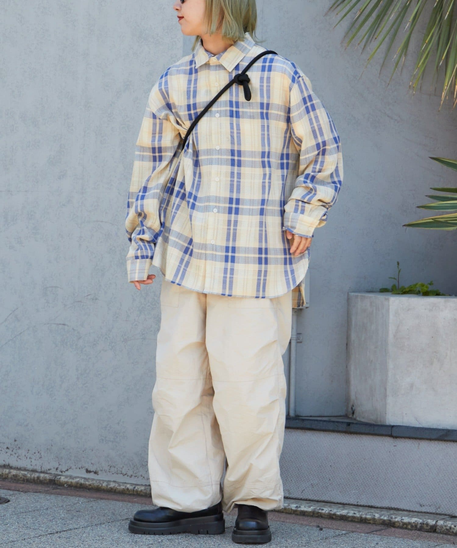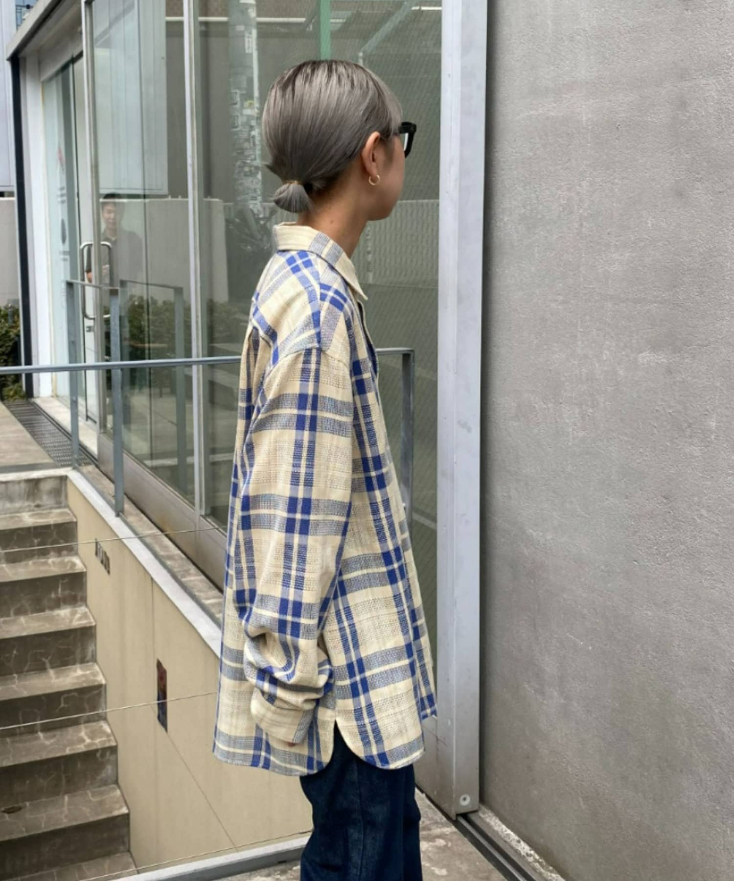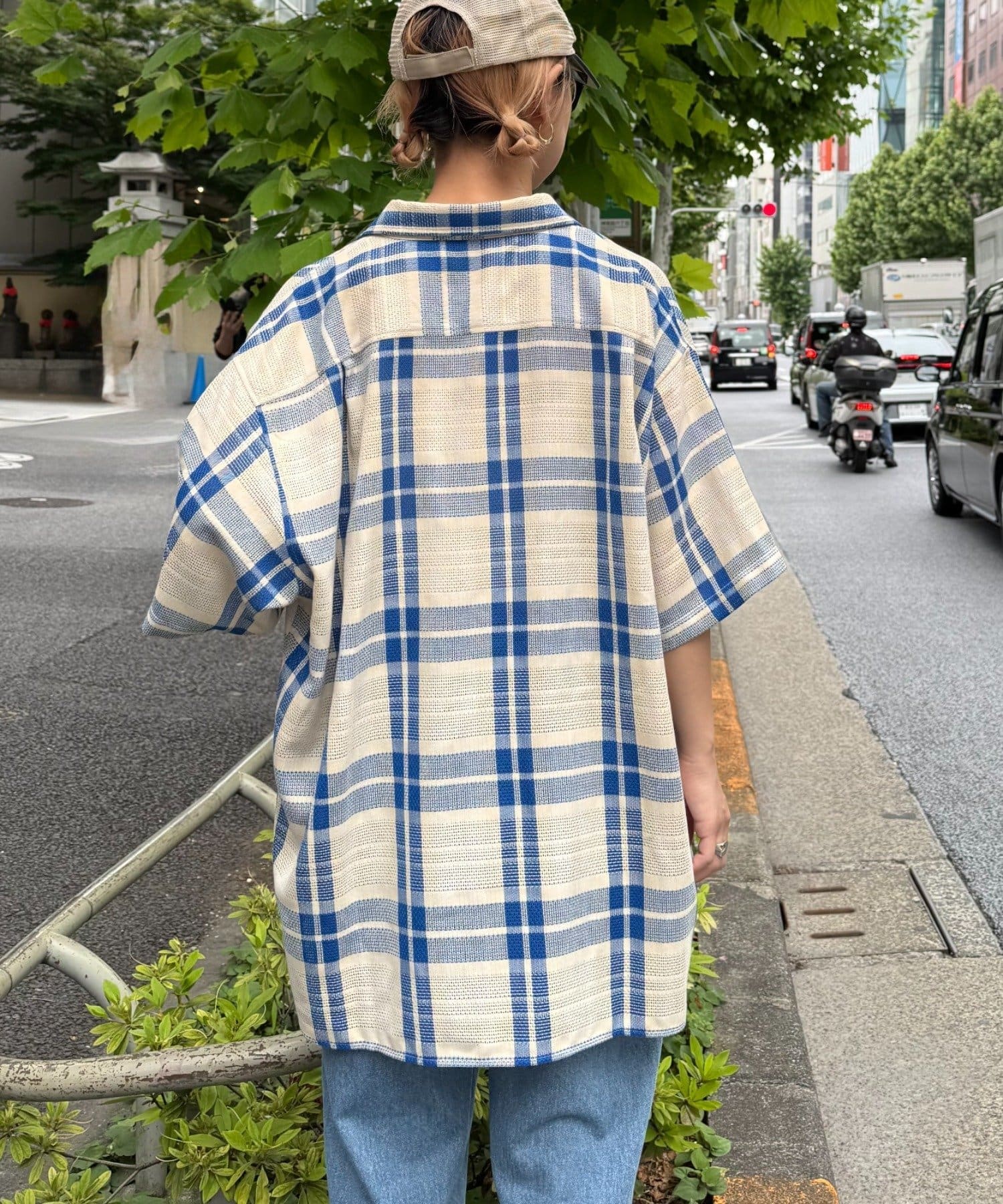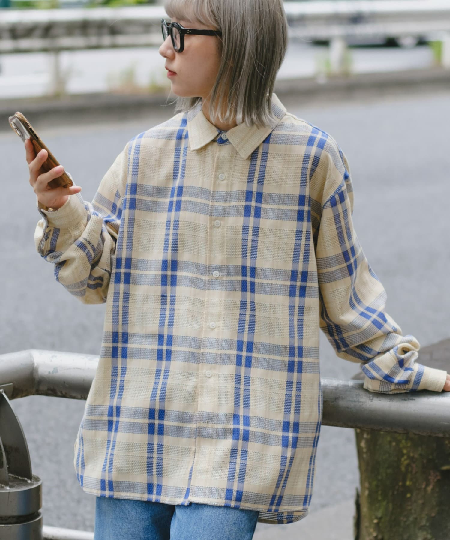 【ユニセックス】バスケット編みメッシュチェックシャツ
