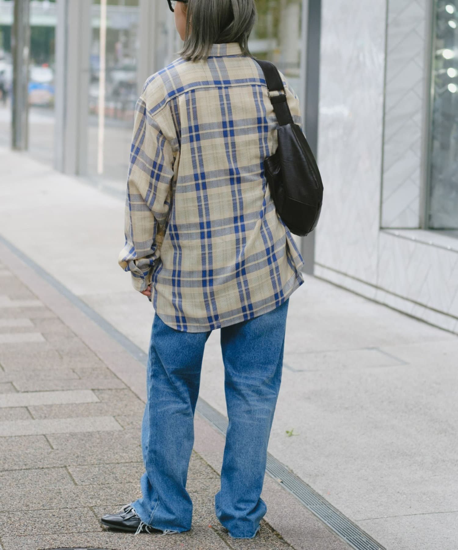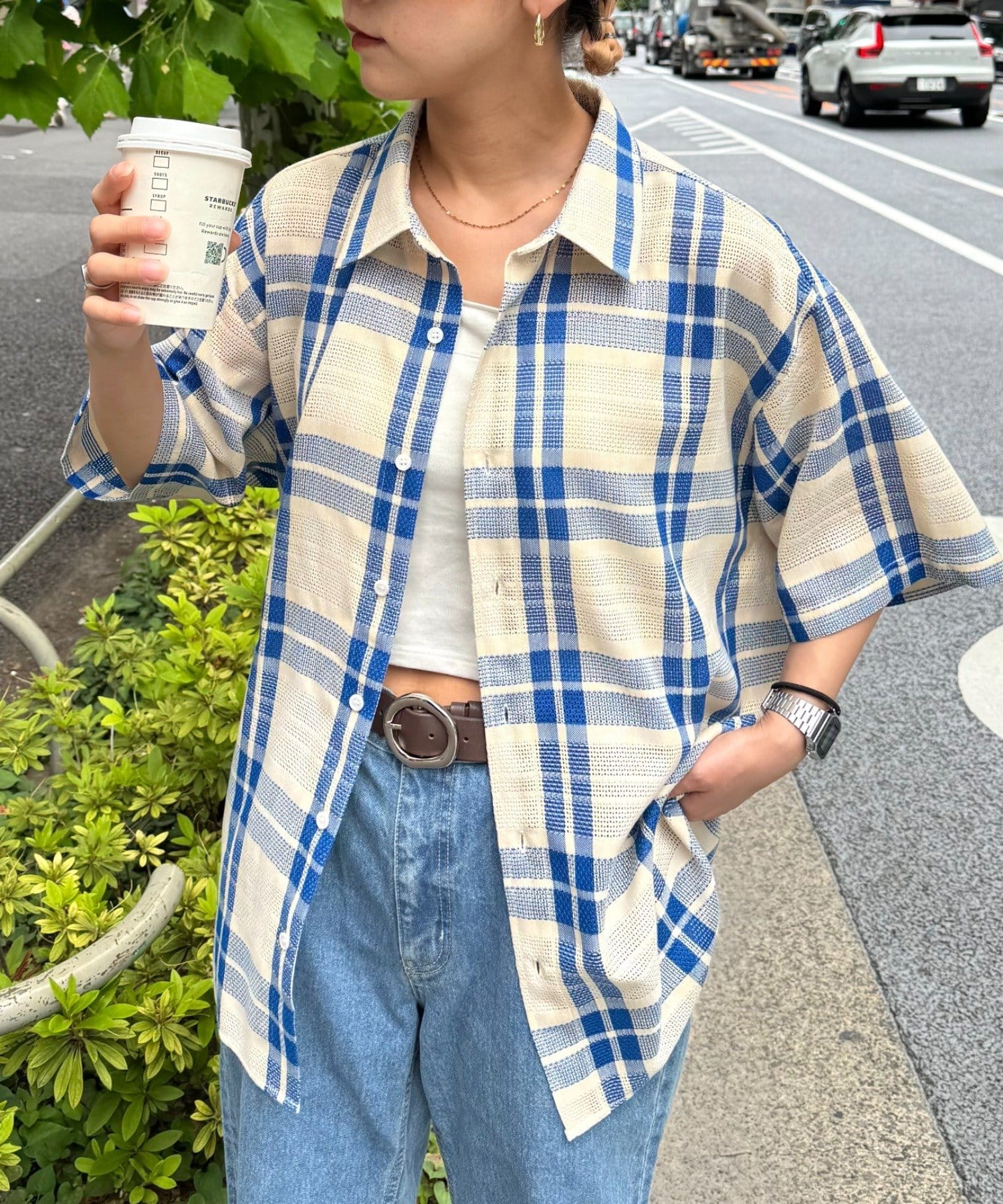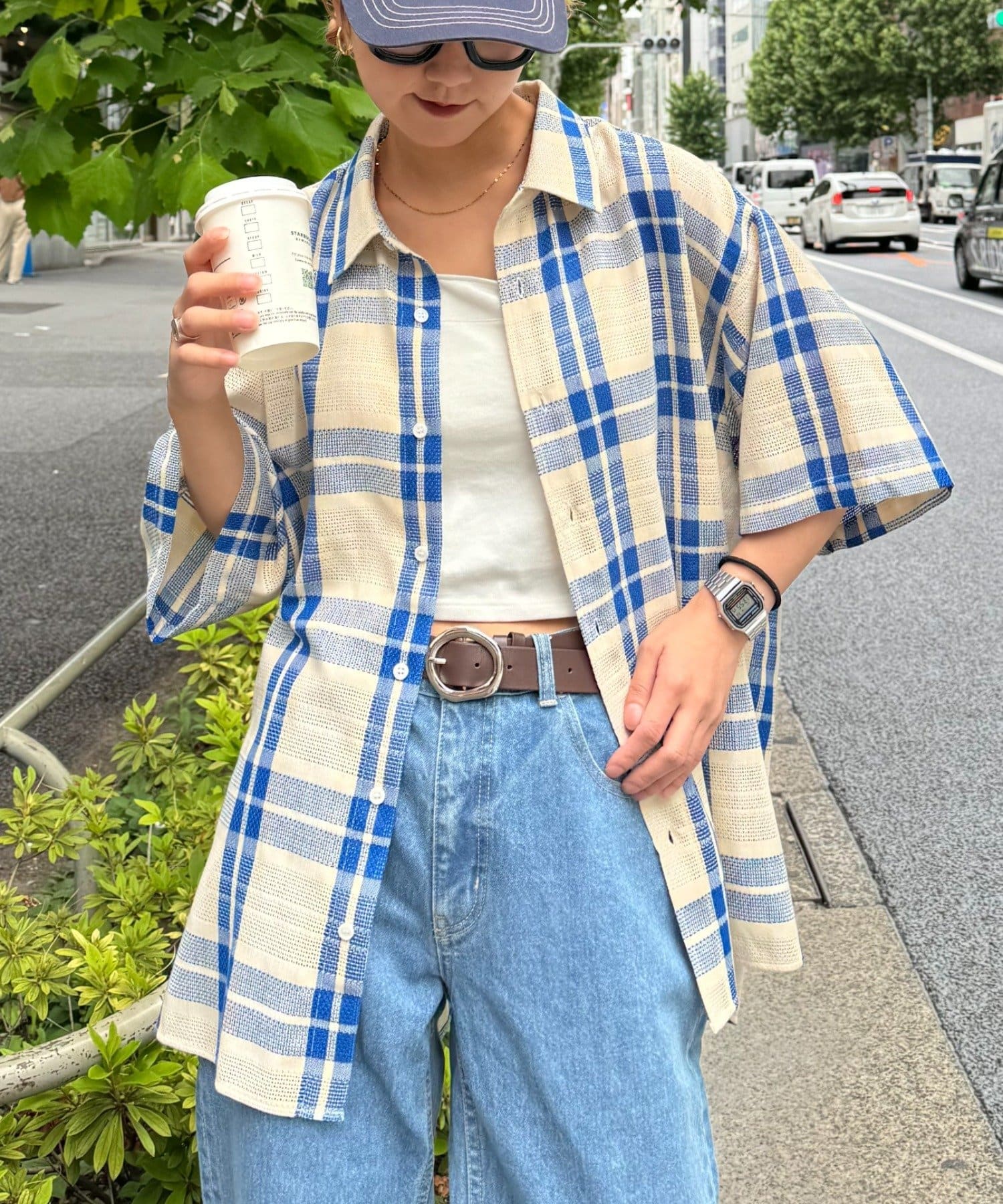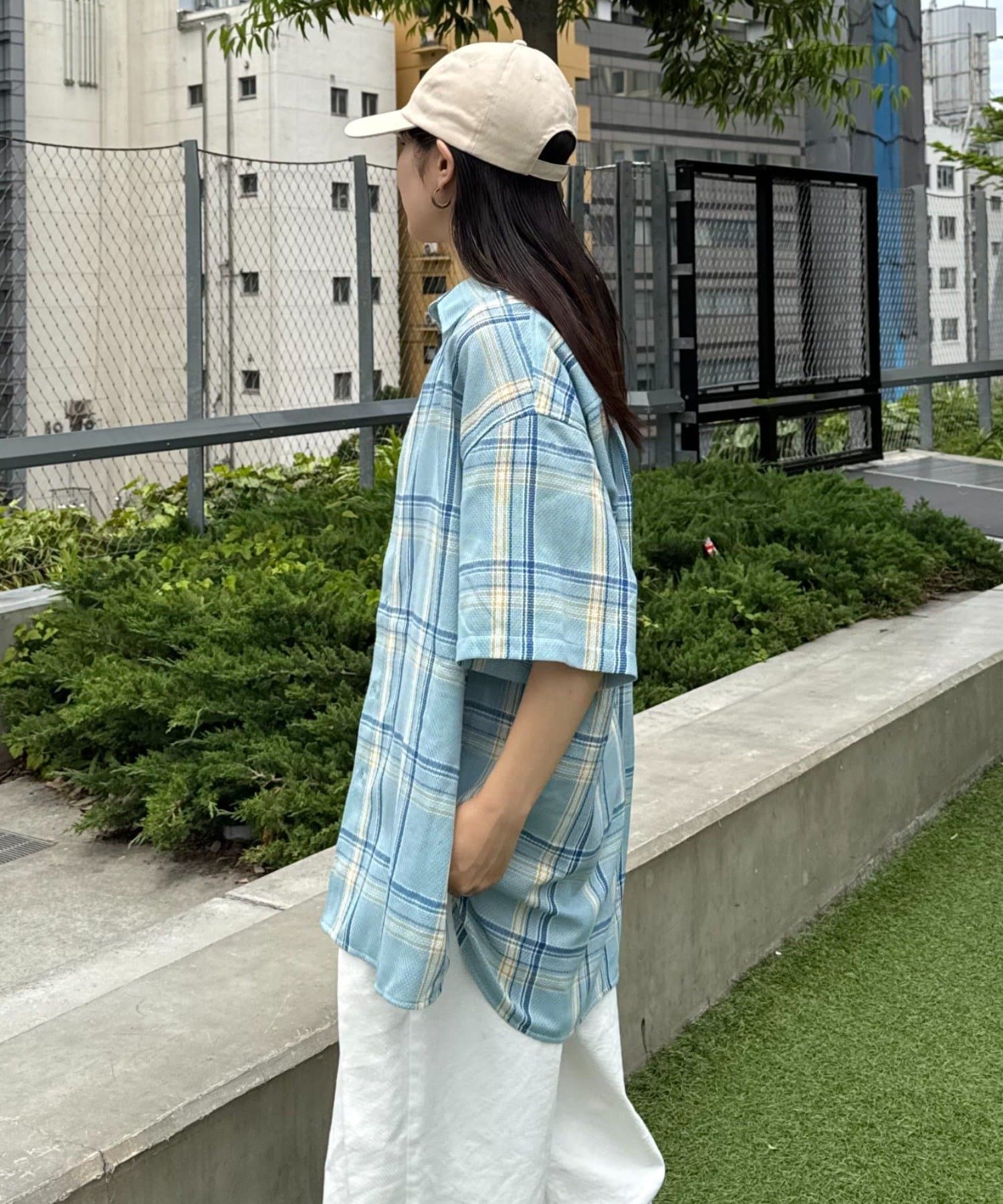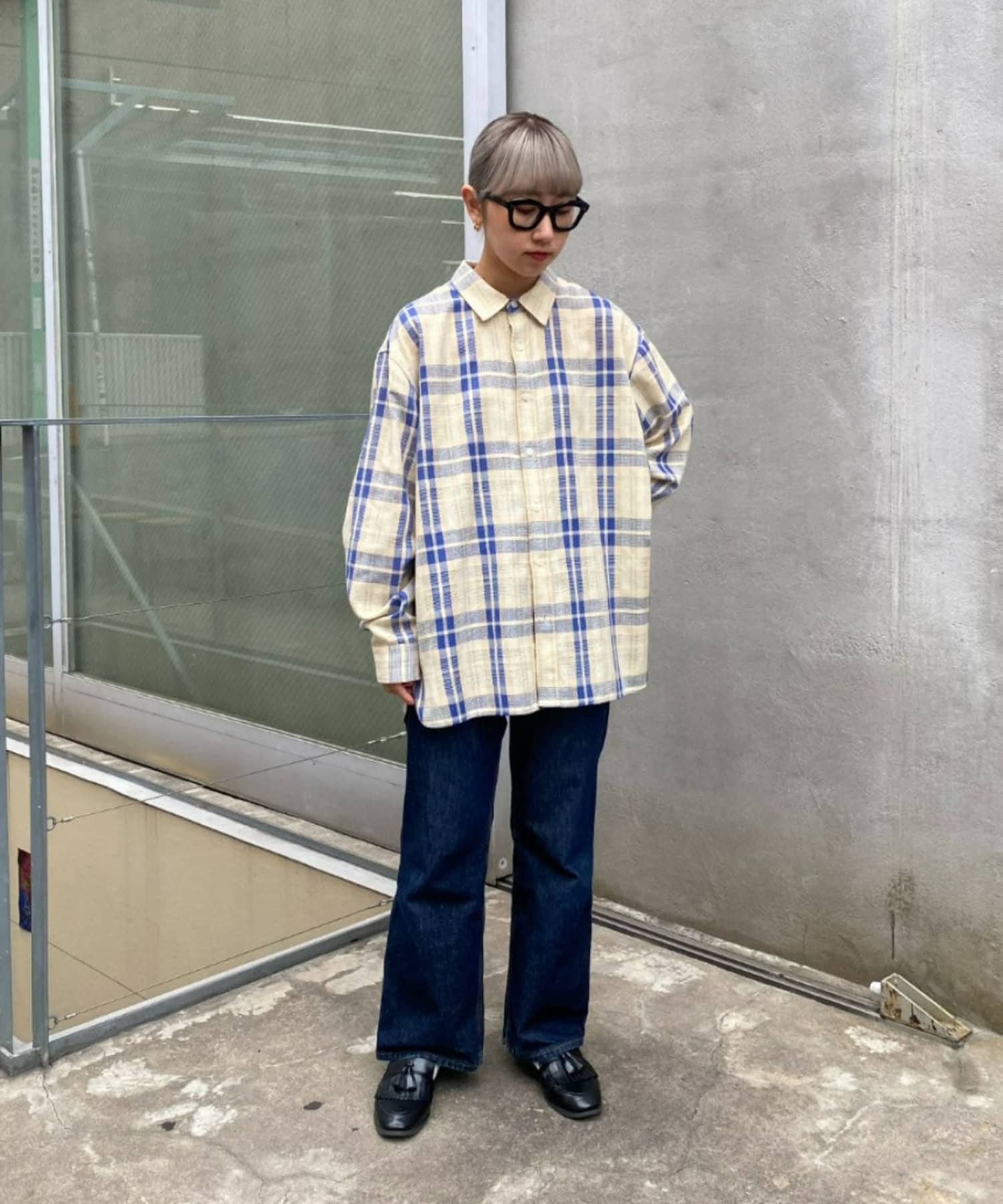 【ユニセックス】バスケット編みメッシュチェックシャツ