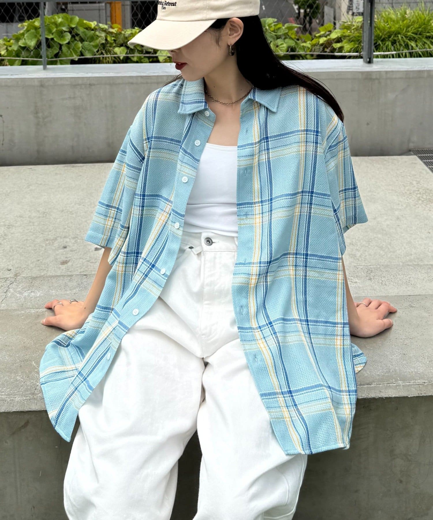 暑い日にはインナーにノースリーブや薄手のTシャツを合わせ