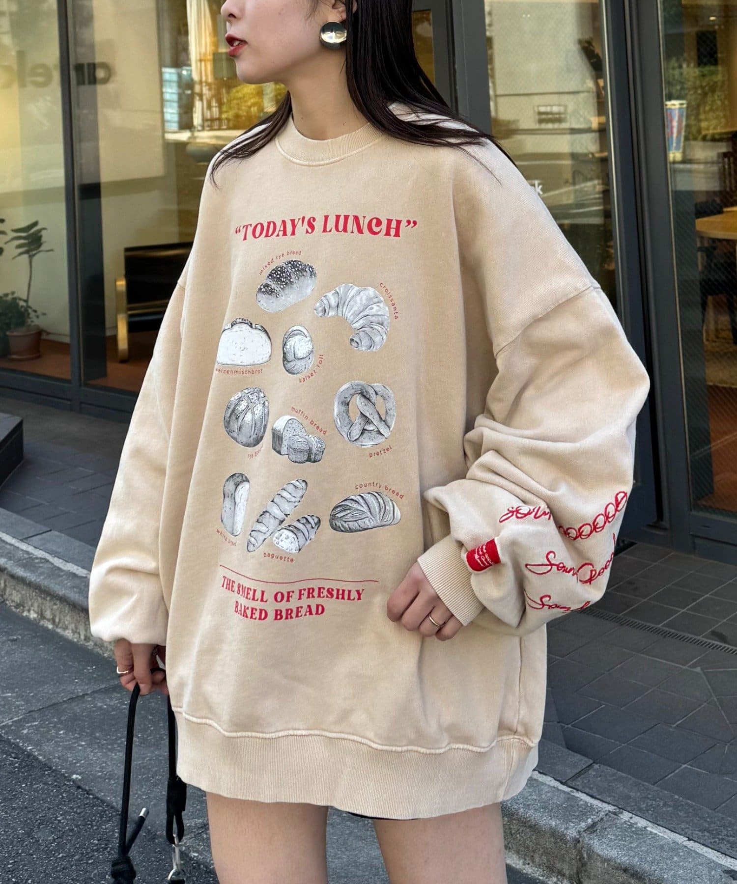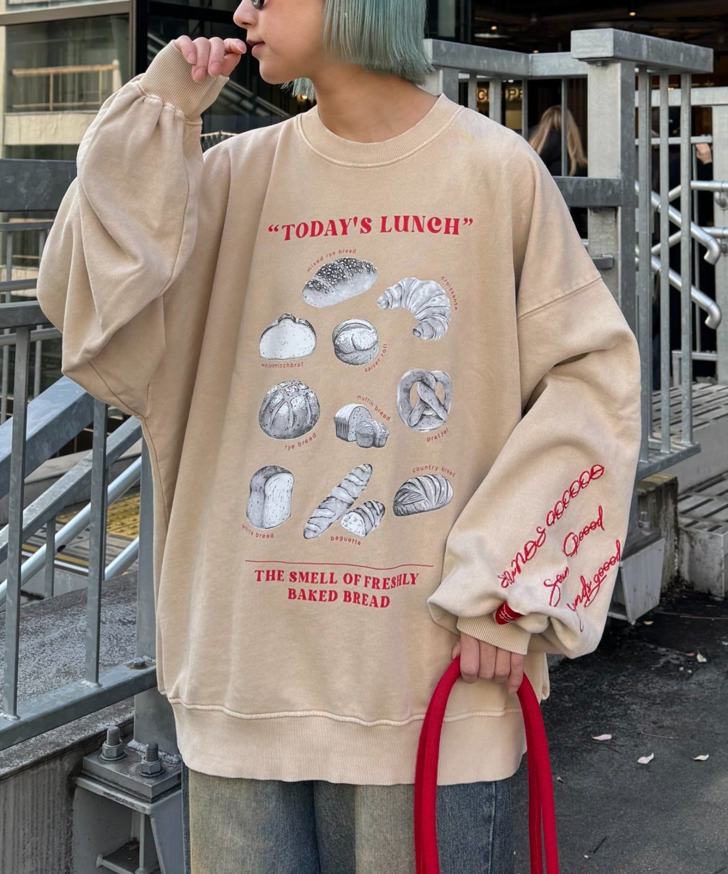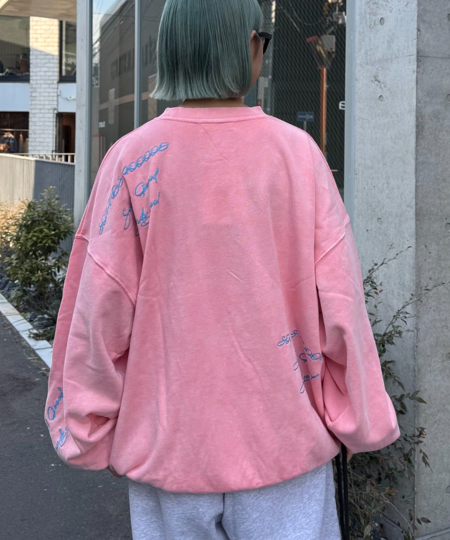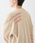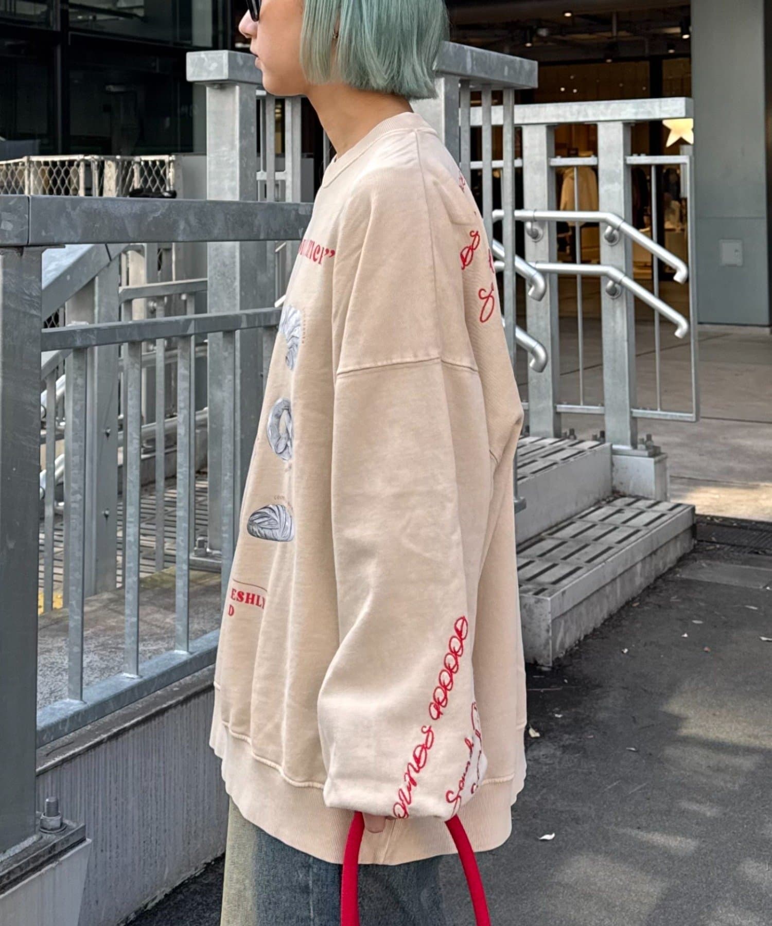前面のプリントとバックの総刺繍が特徴の裏毛スウェットが