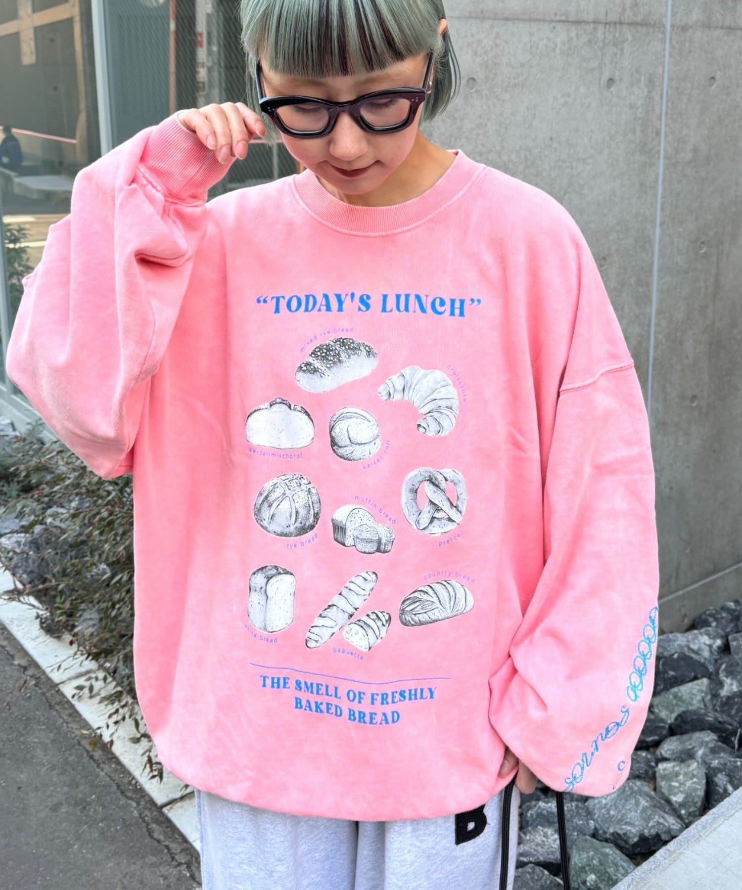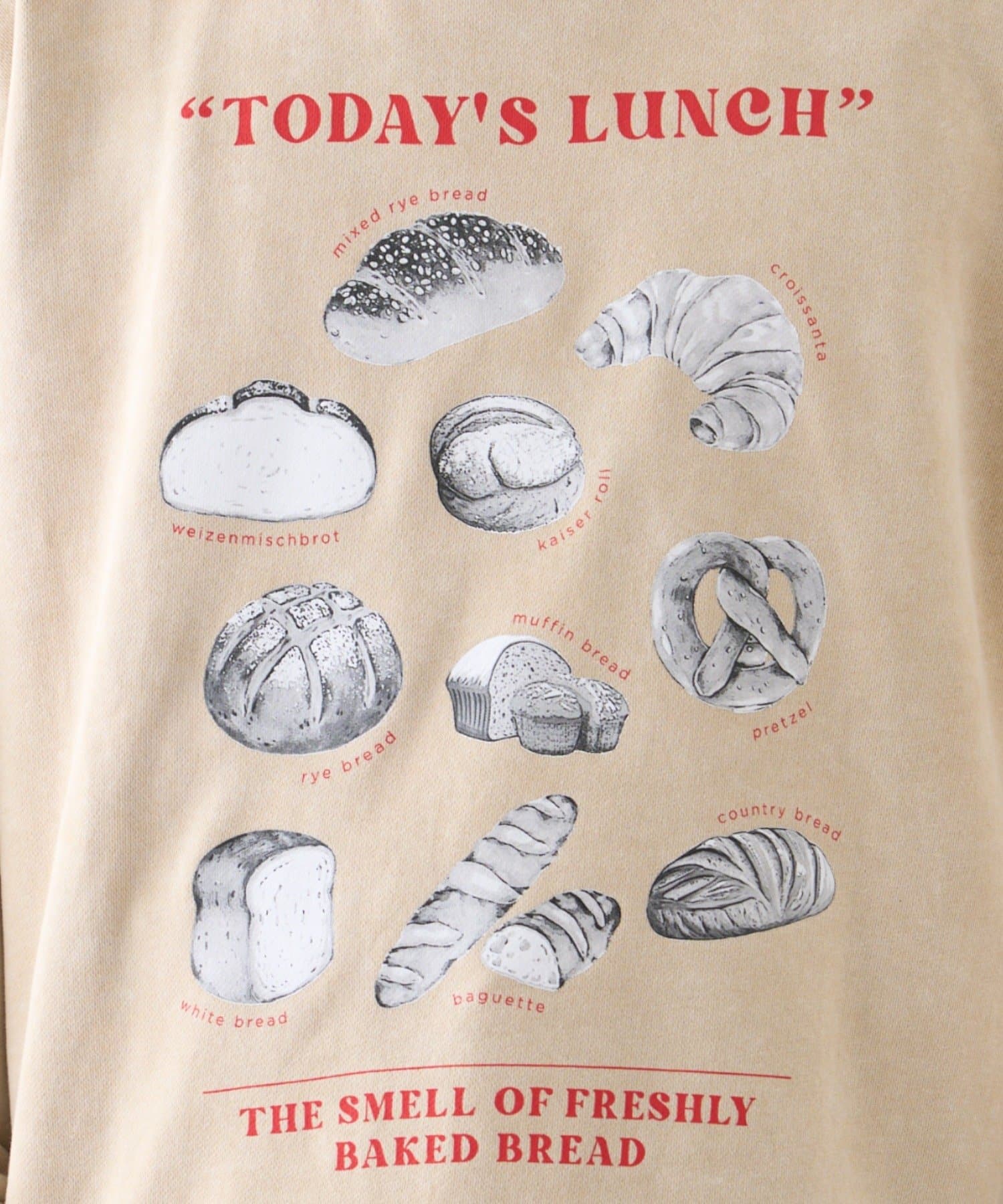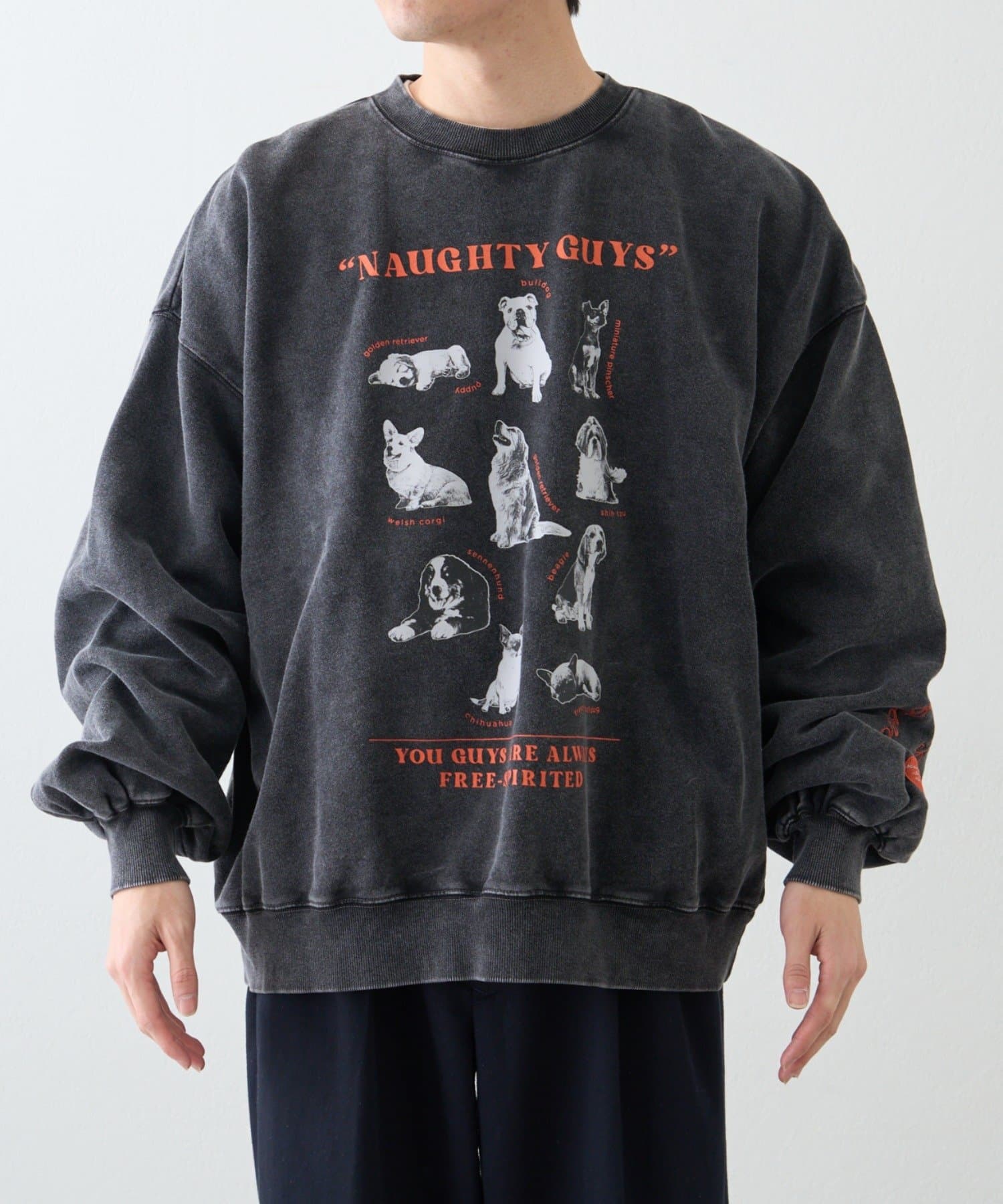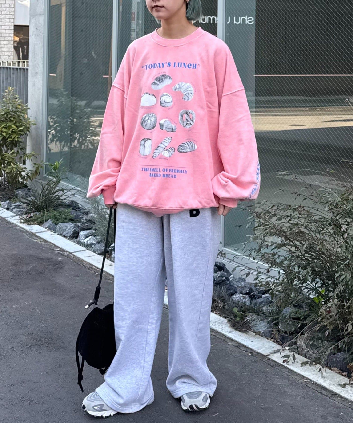 前面のプリントとバックの総刺繍が特徴の裏毛スウェットが