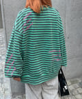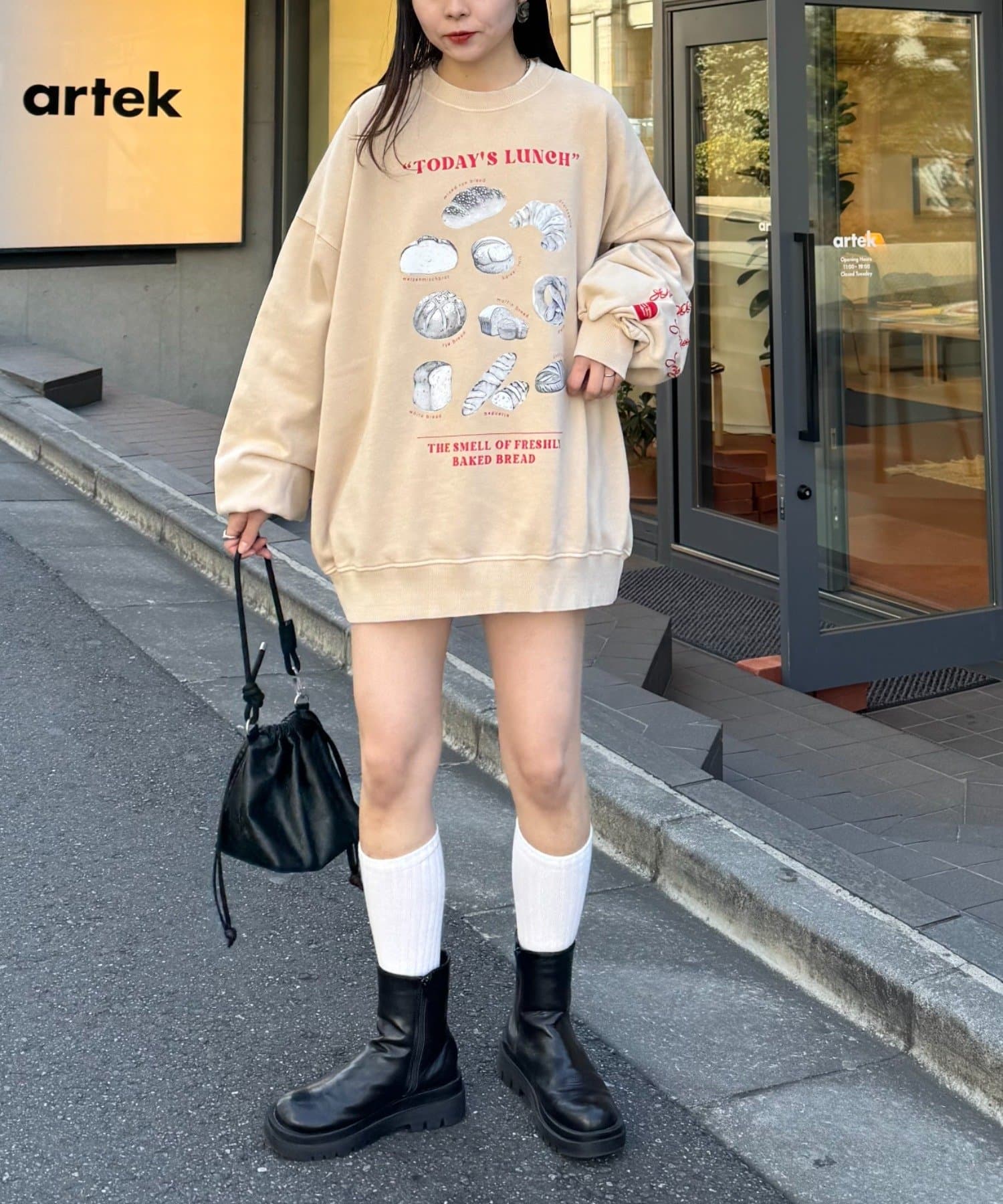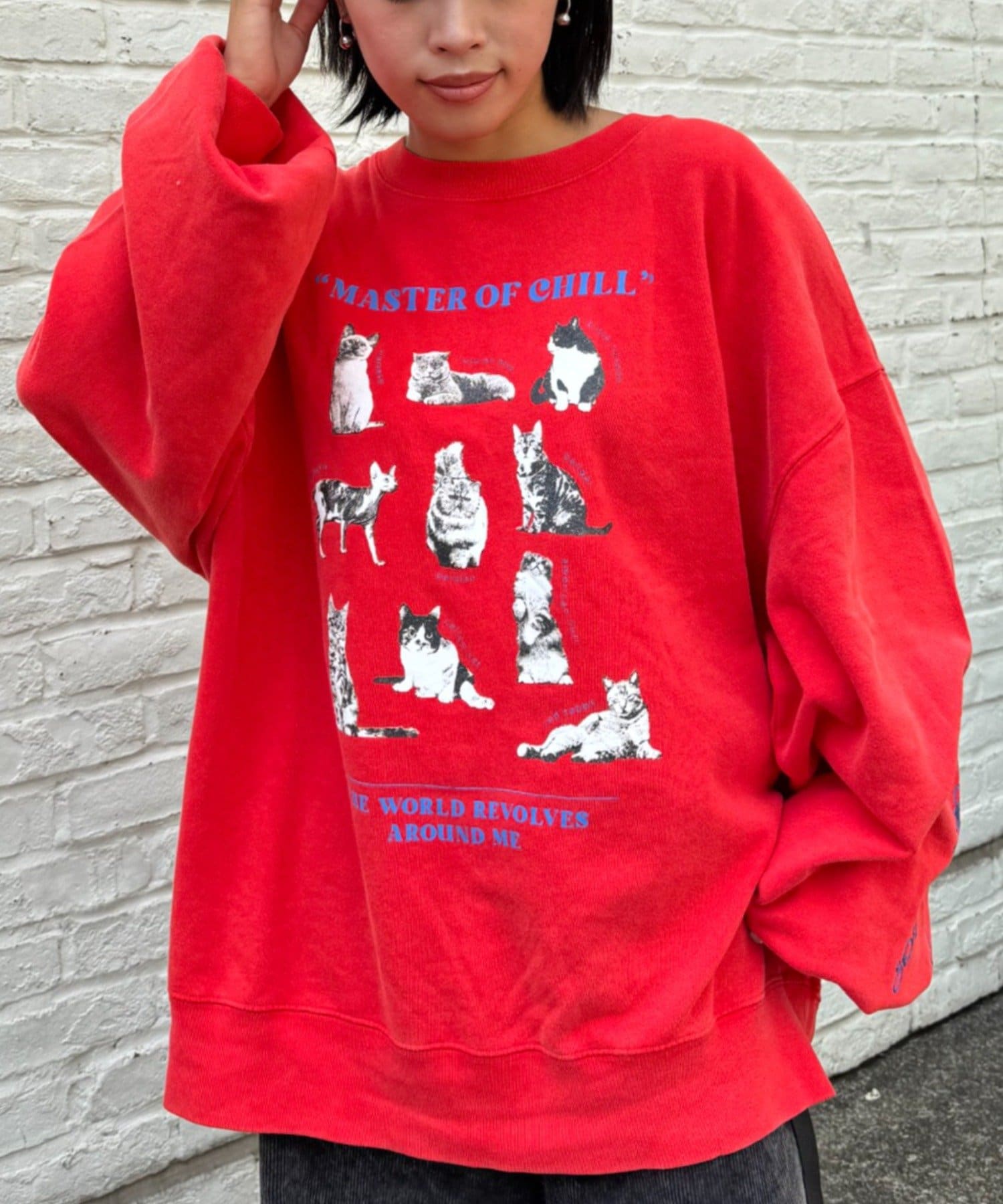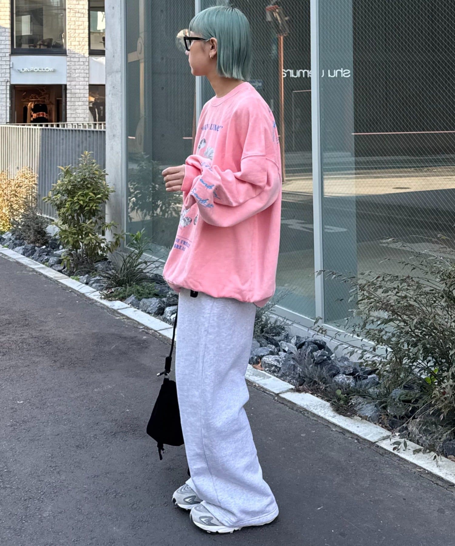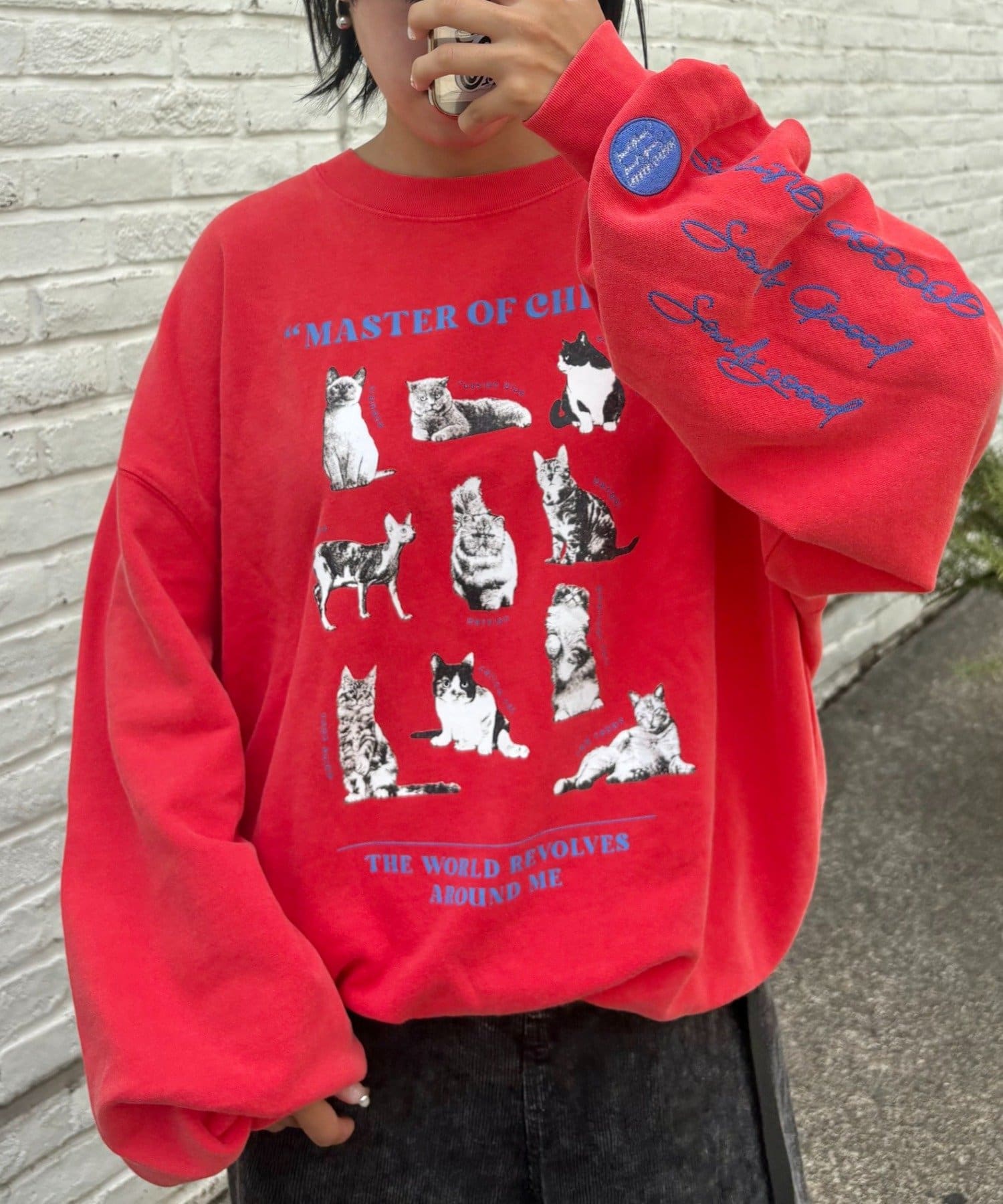 前面のプリントとバックの総刺繍が特徴の裏毛スウェットが