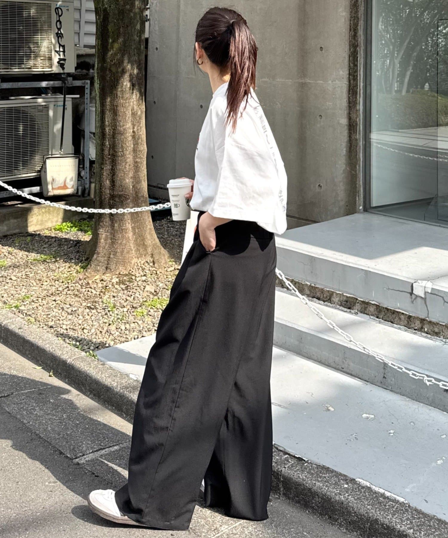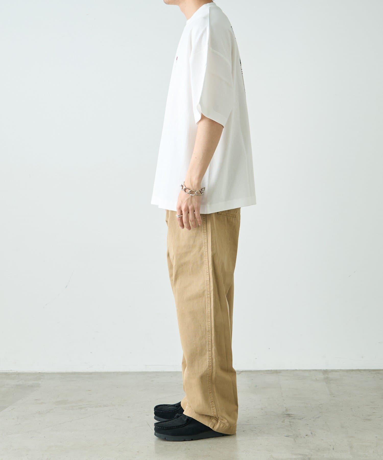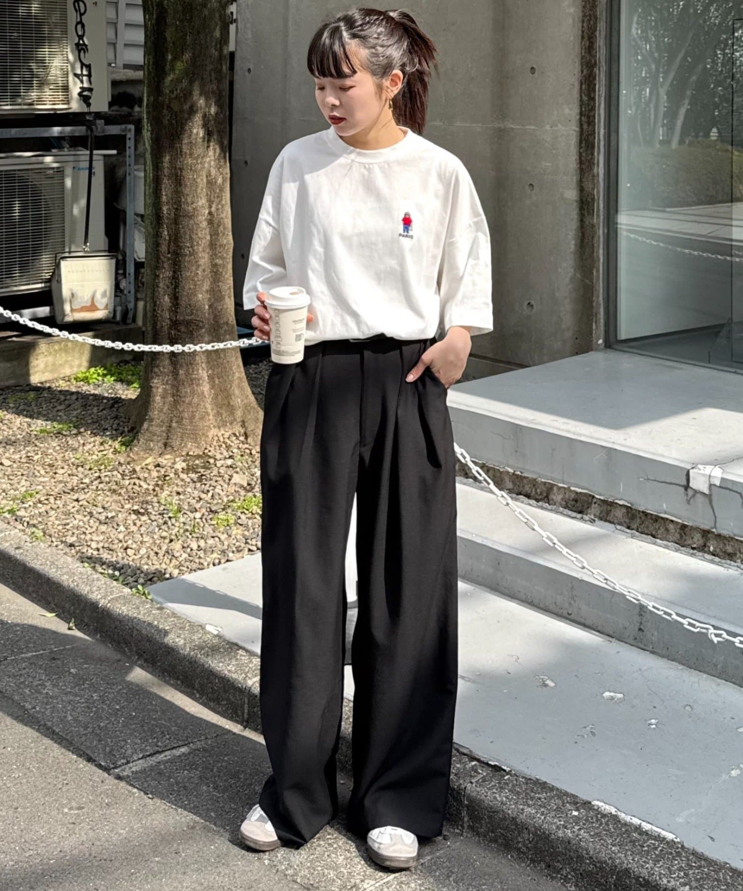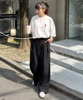 スラックスやワイドパンツと合わせて、きれいめコーデの外しとしても◎