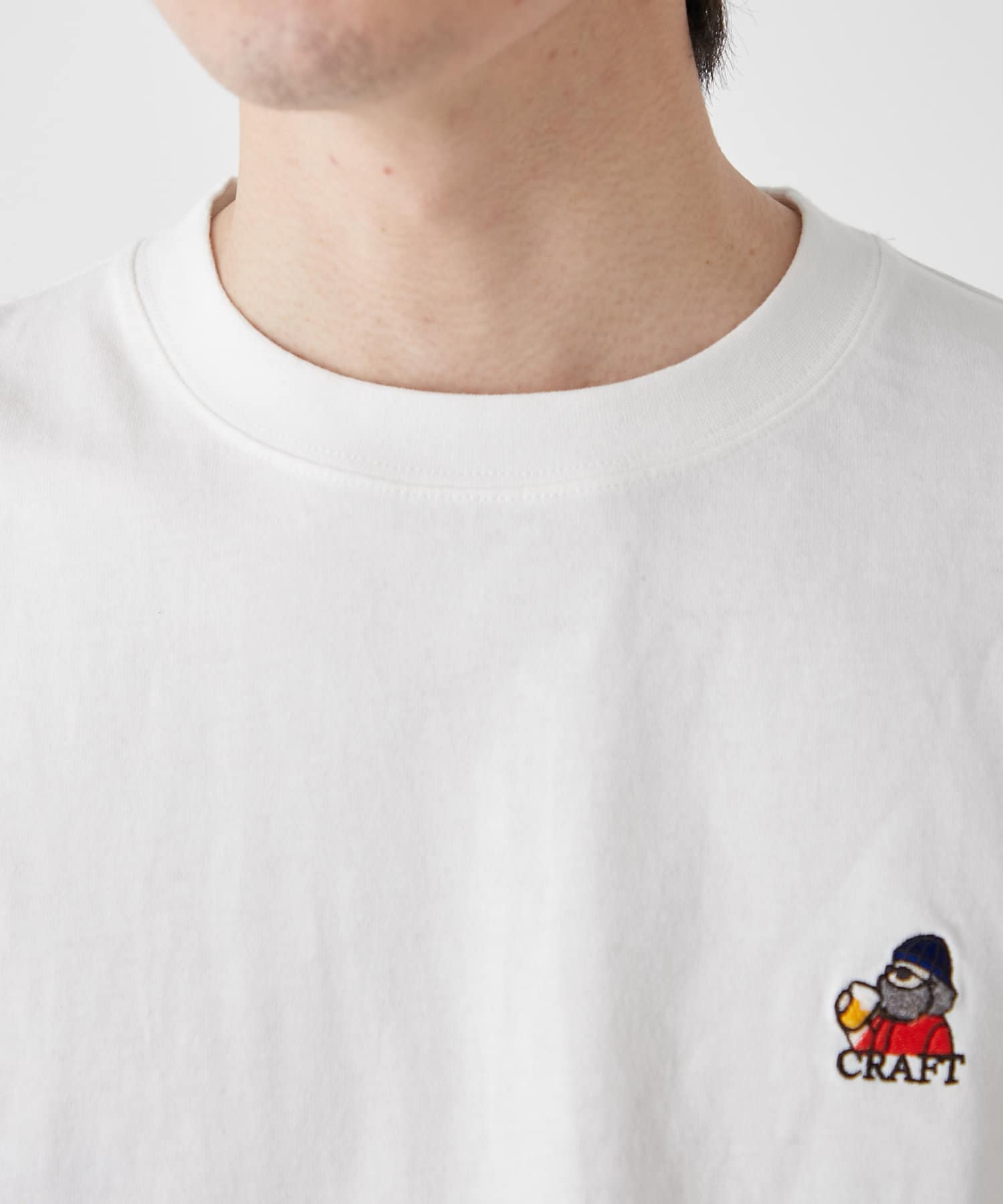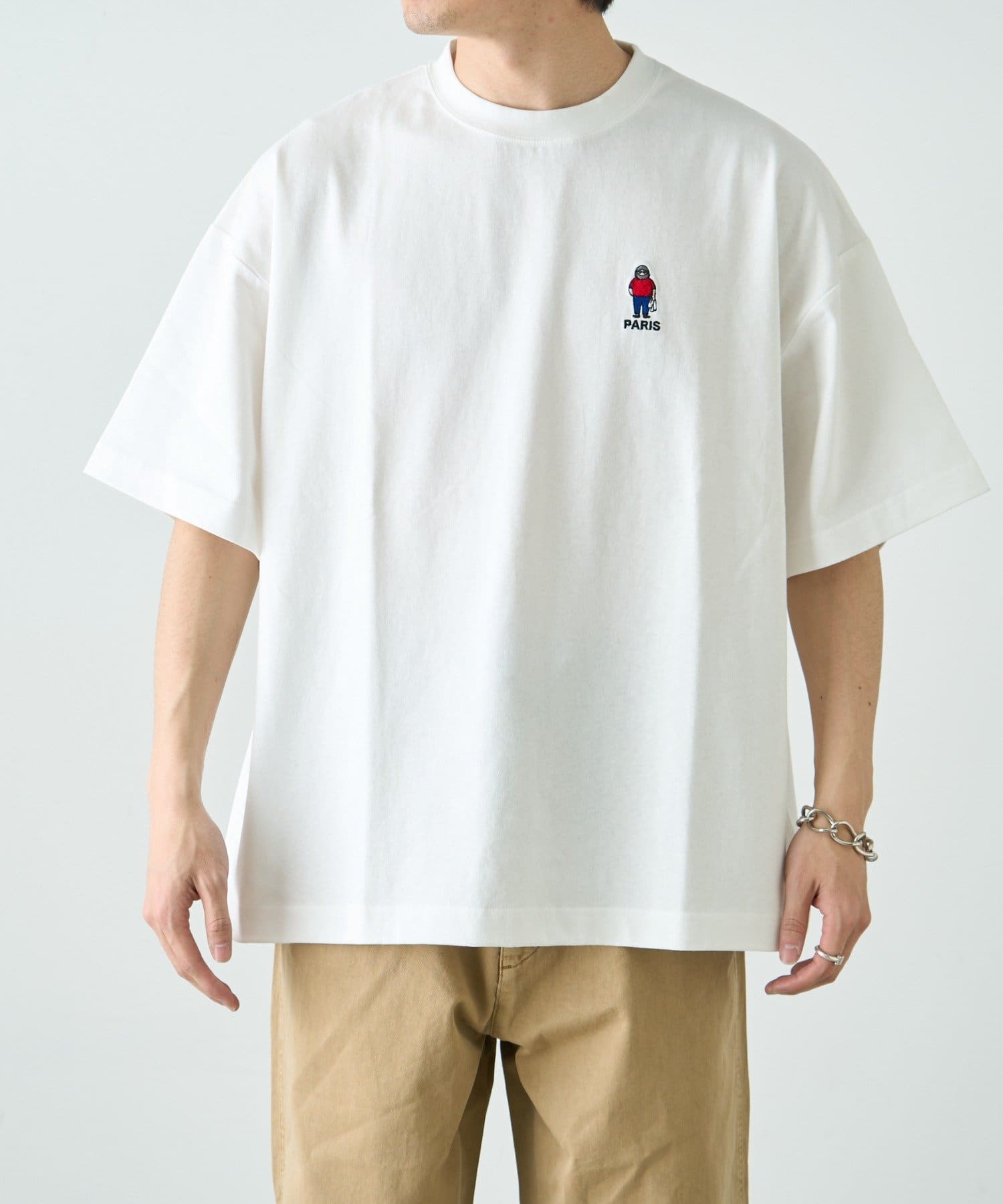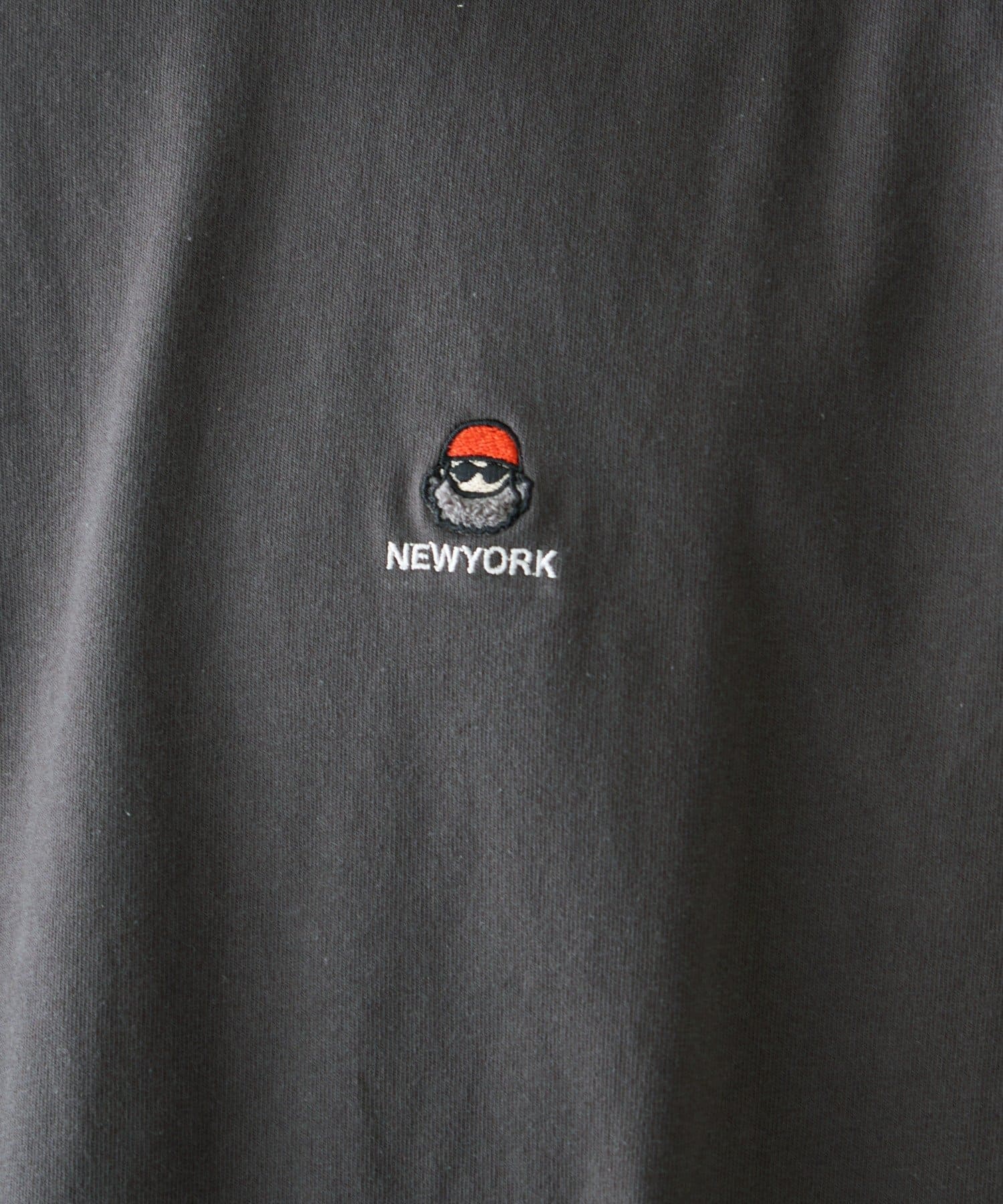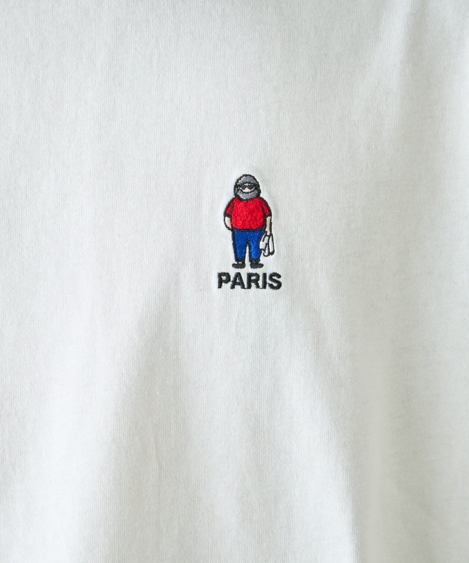 胸元のもこもことしたおじさん刺繍が魅力のTシャツ。