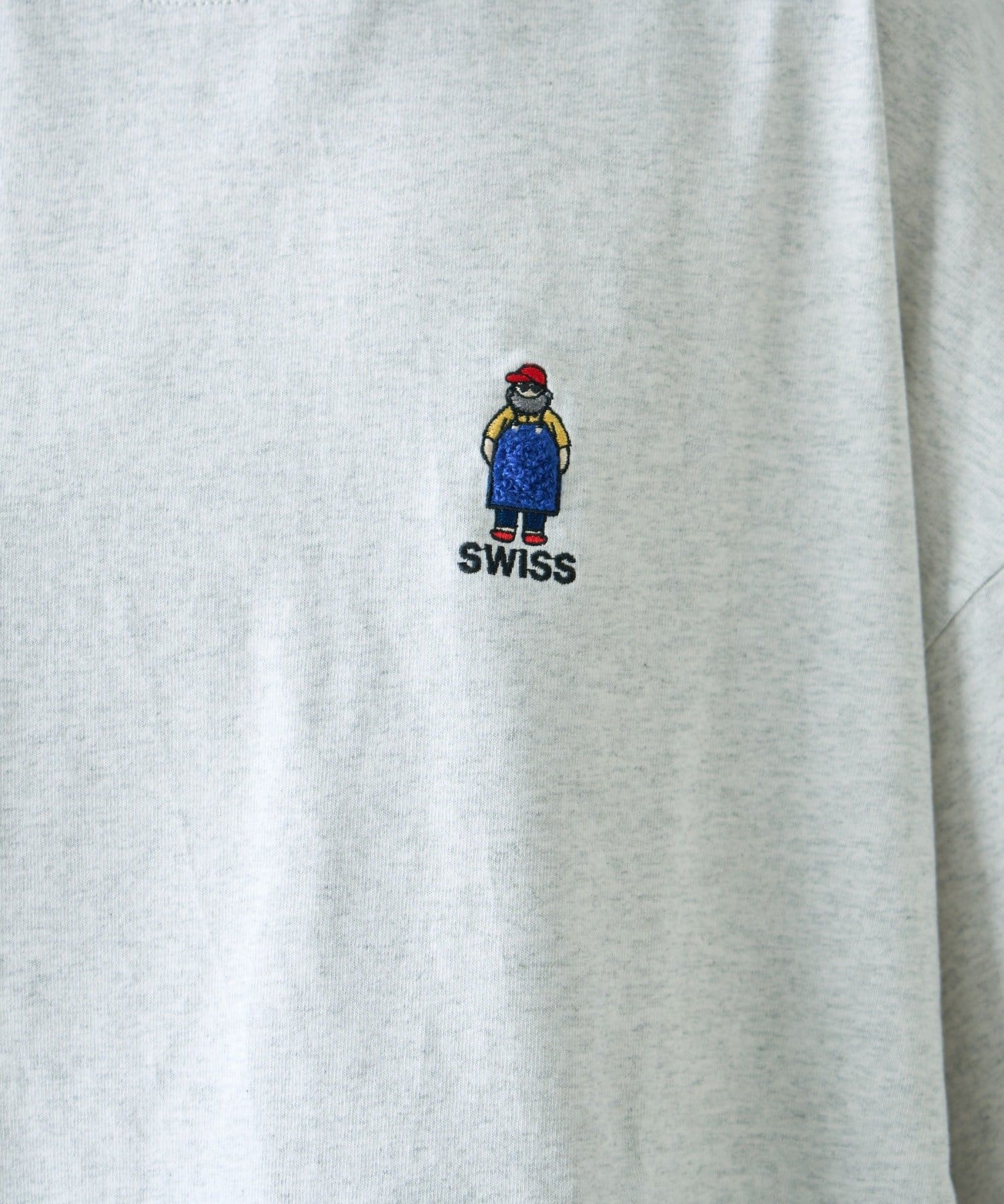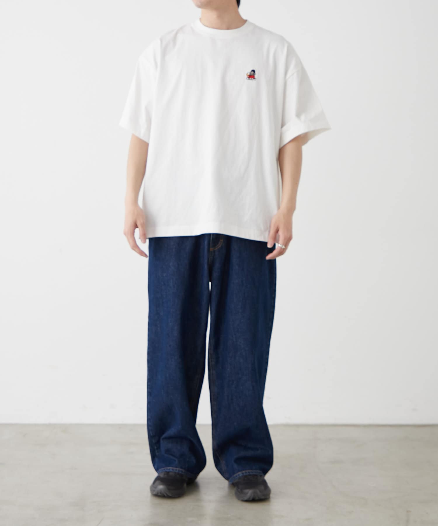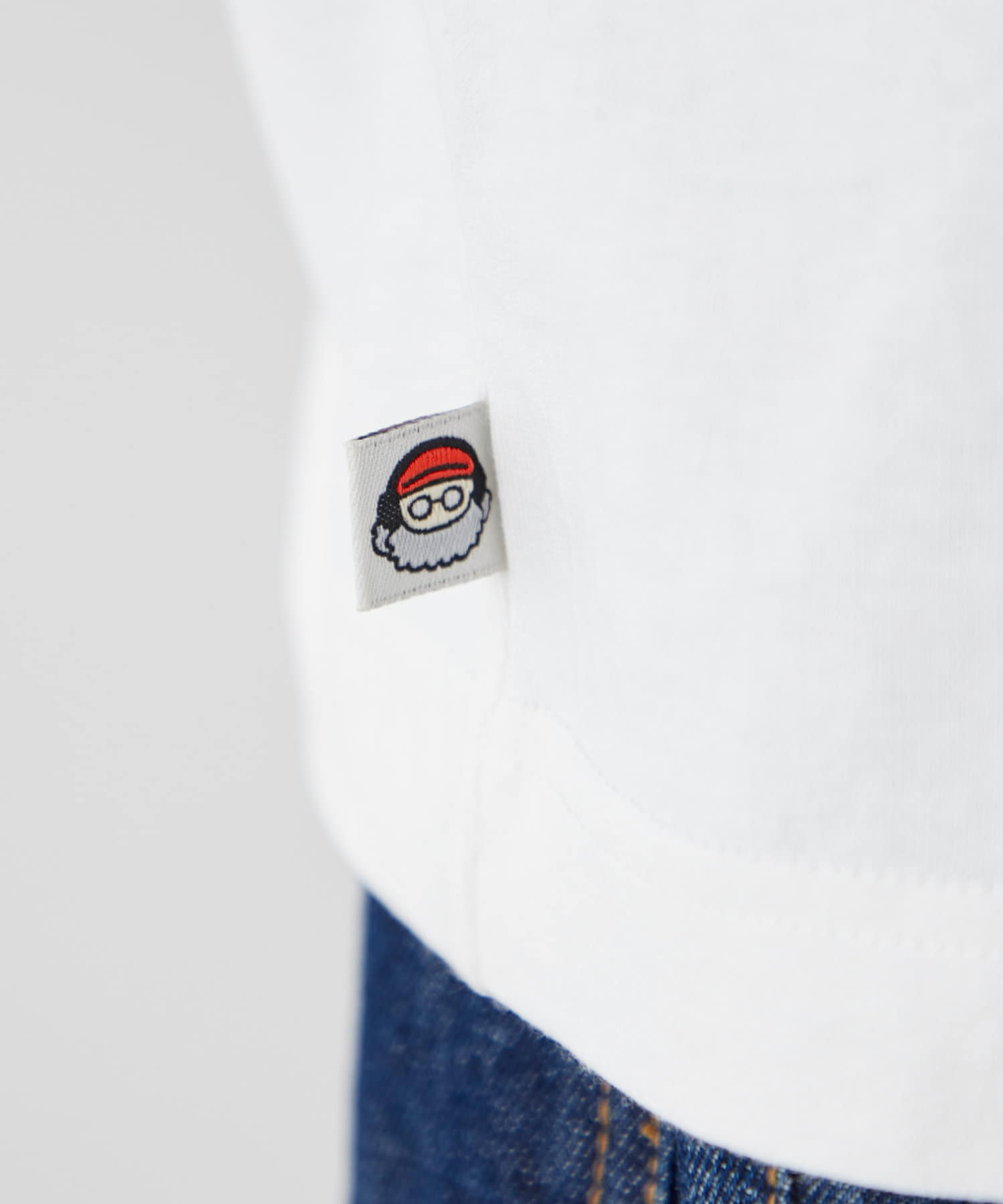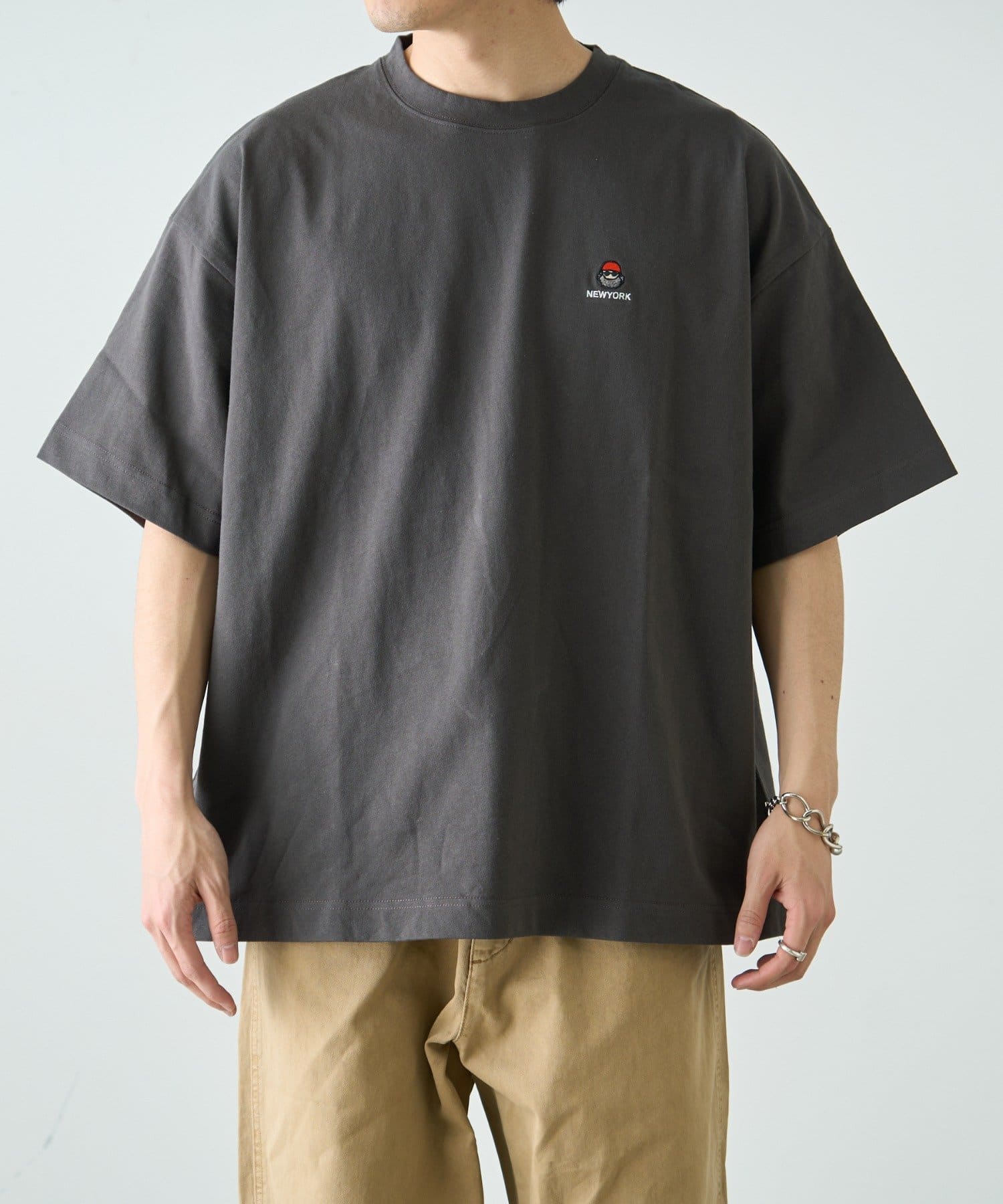 胸元のもこもことしたおじさん刺繍が魅力のTシャツ。