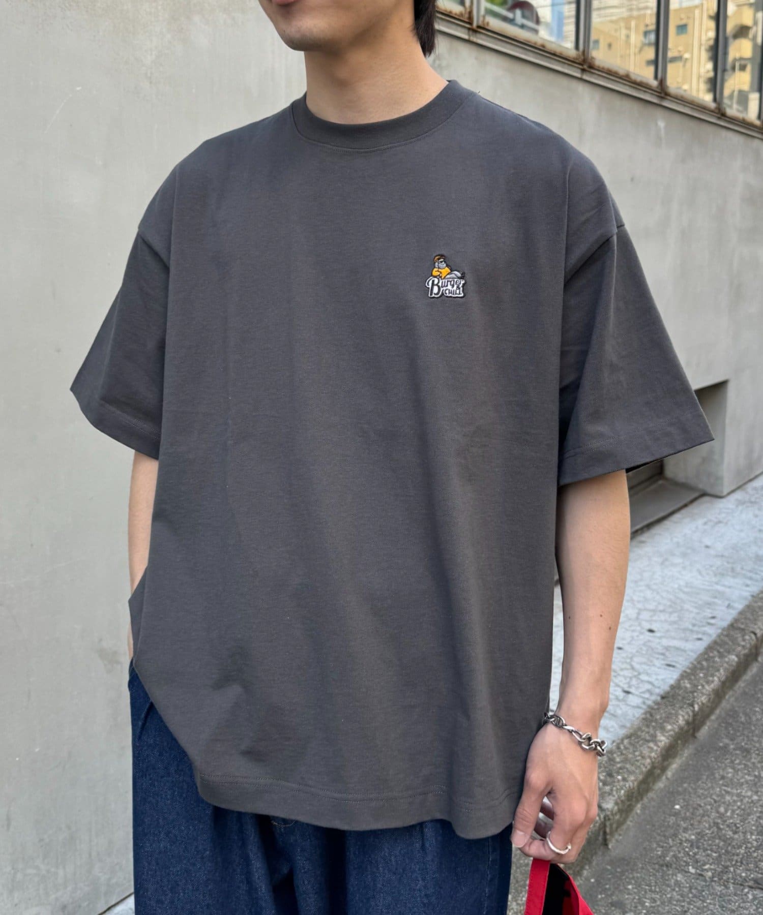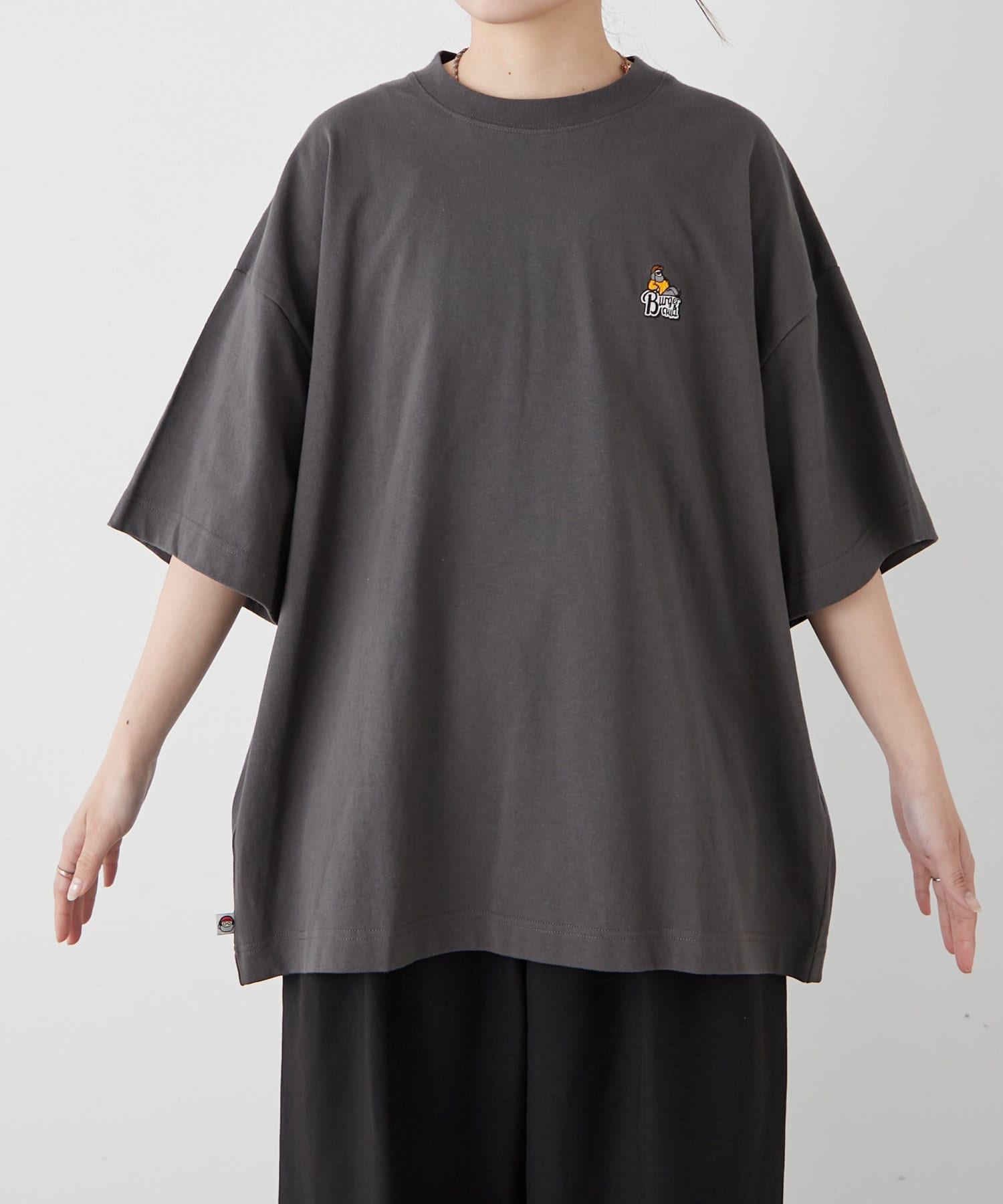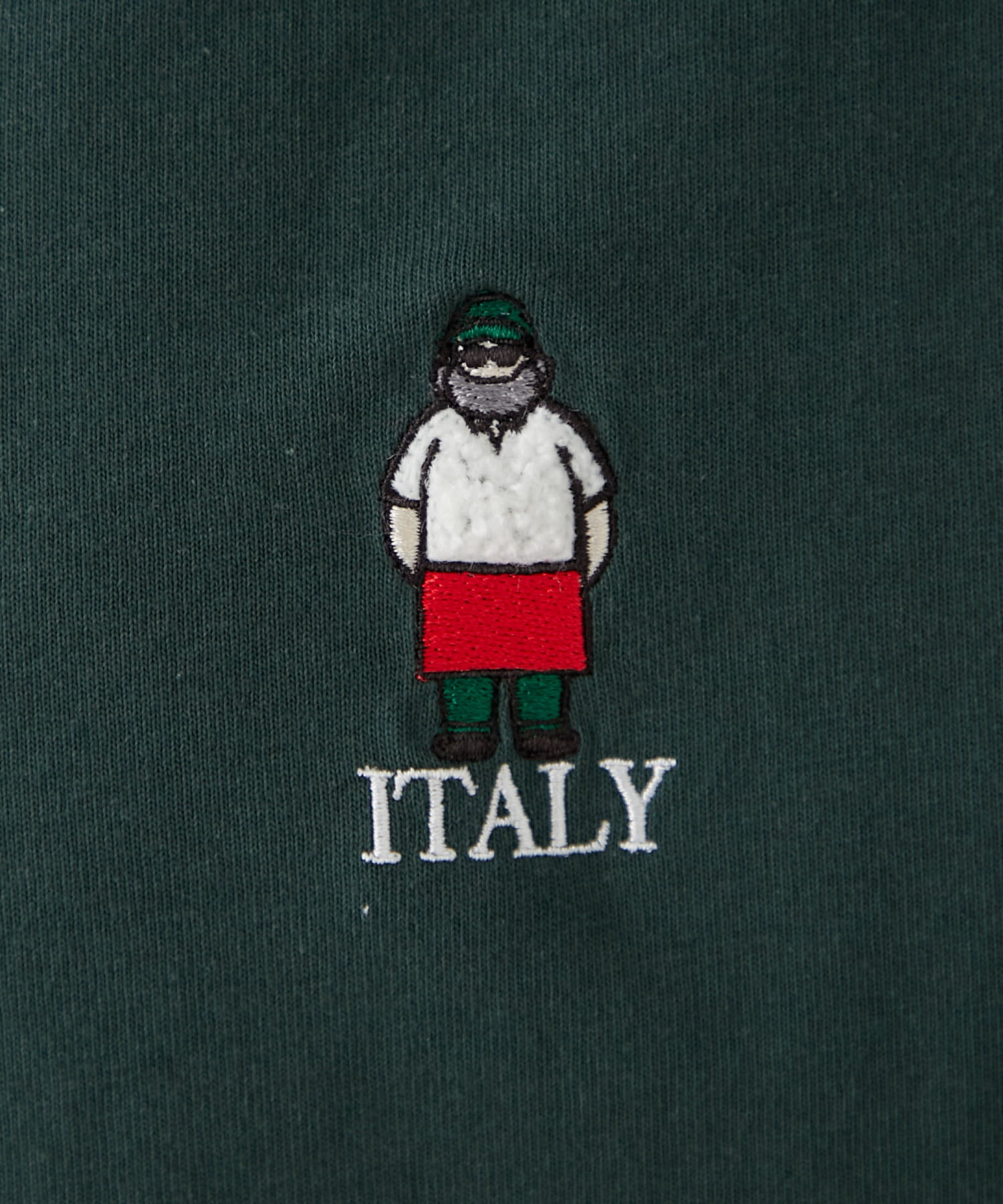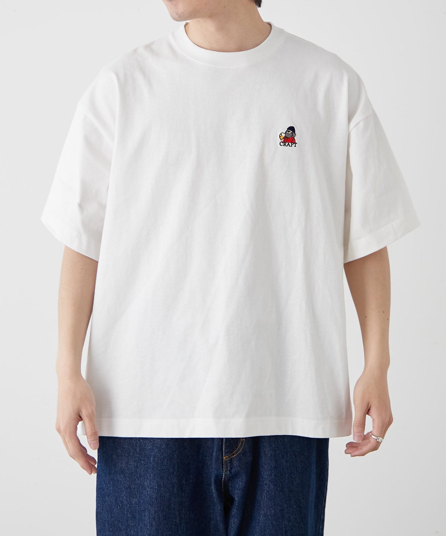 胸元のもこもことしたおじさん刺繍が魅力のTシャツ。