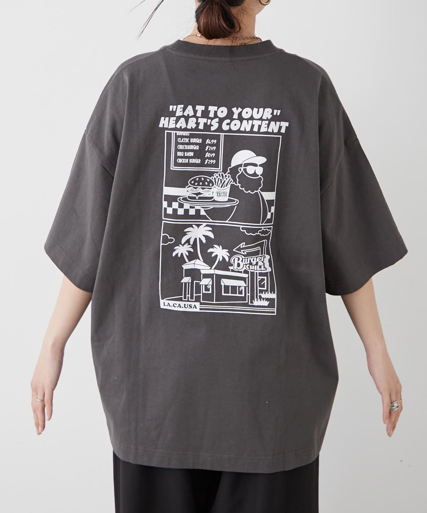存在感あるバックプリントが、コーデのアクセントにぴったり!