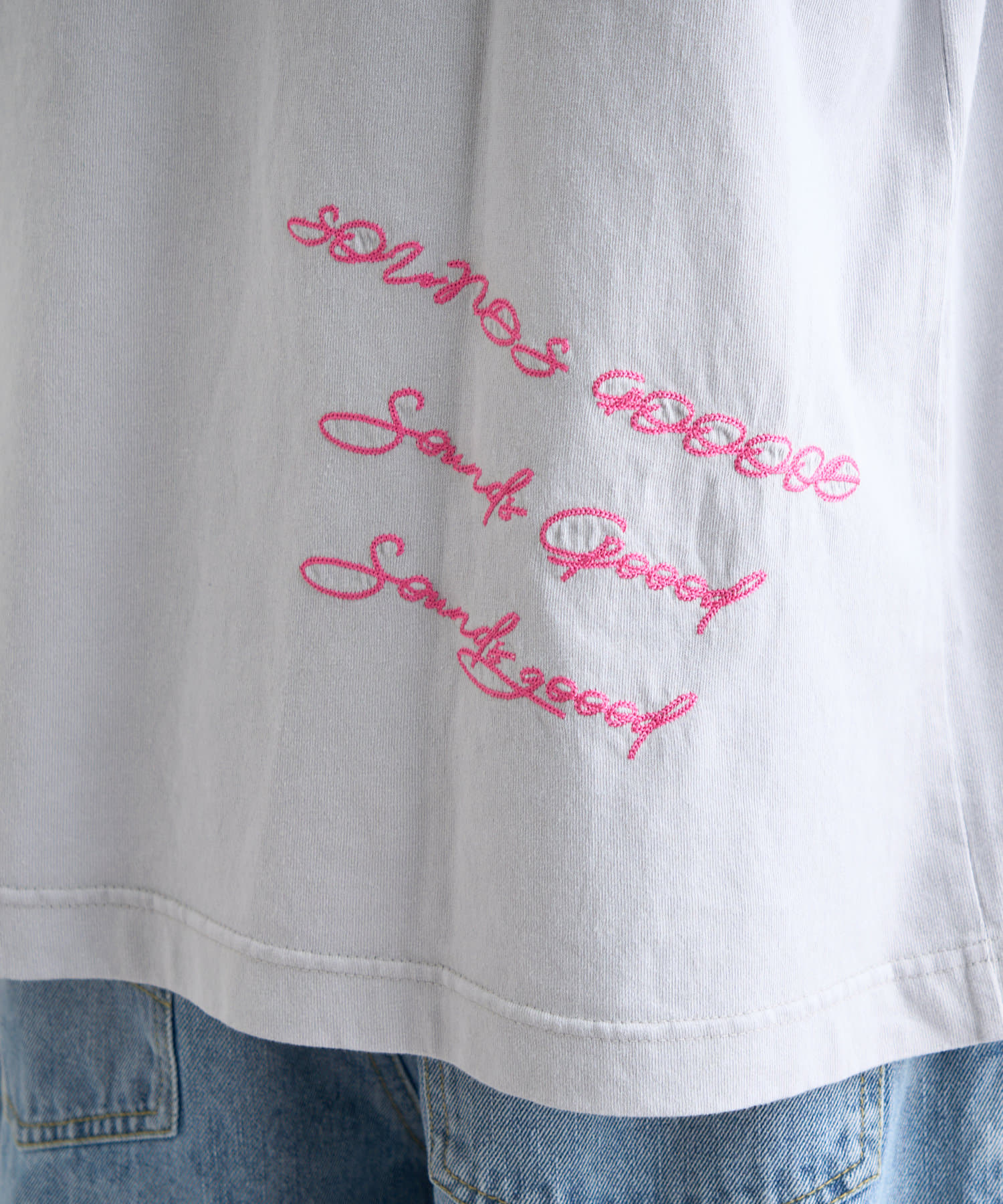 【SOUNDS GOOOOD】パウダー加工プリント&刺繍TEE