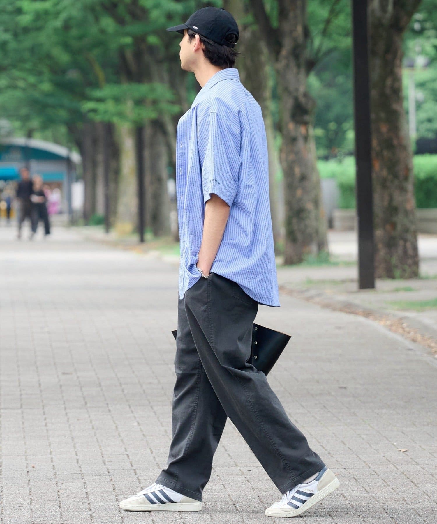 計算されたワイドシルエットは、リラックス感がありながらも、どこか洗練された印象を与えます。