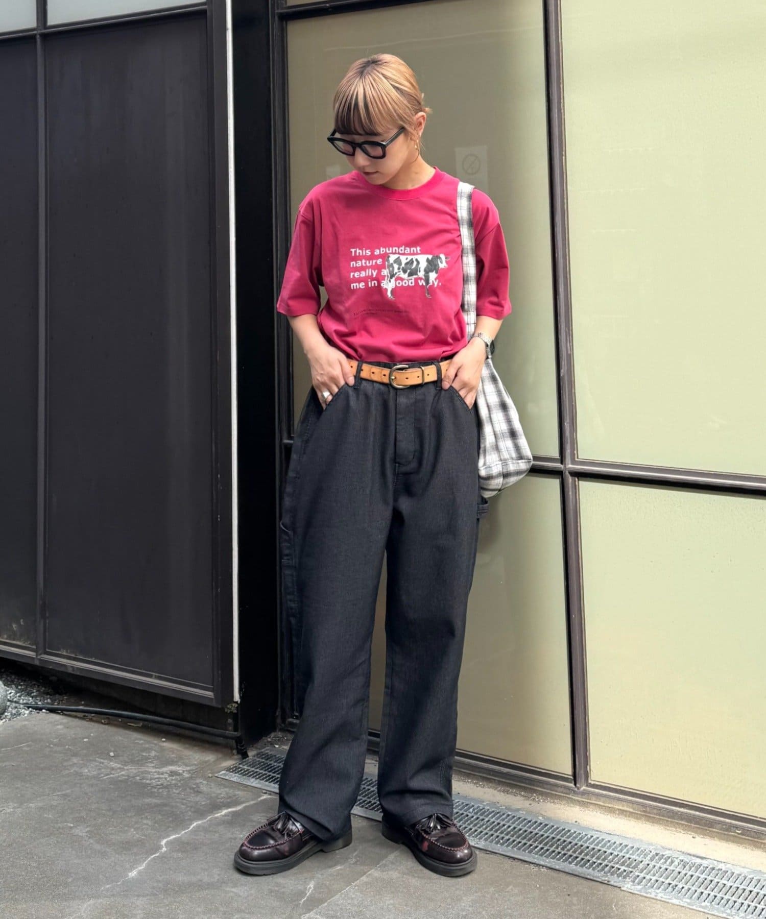 同じTシャツでもオーバーサイズでストリート・コンパクトなTシャツでミニマルにも印象が変わります。