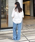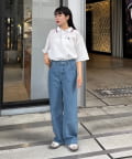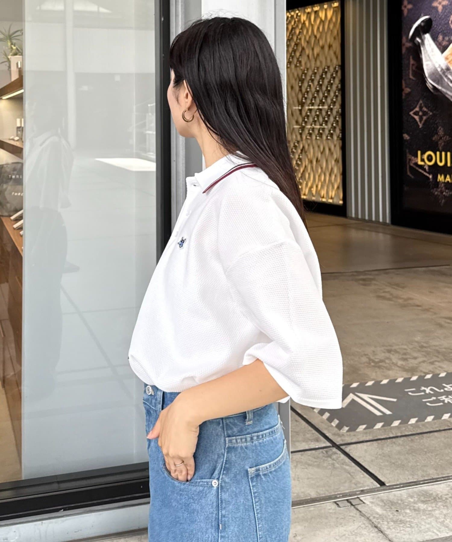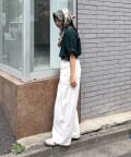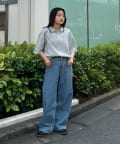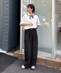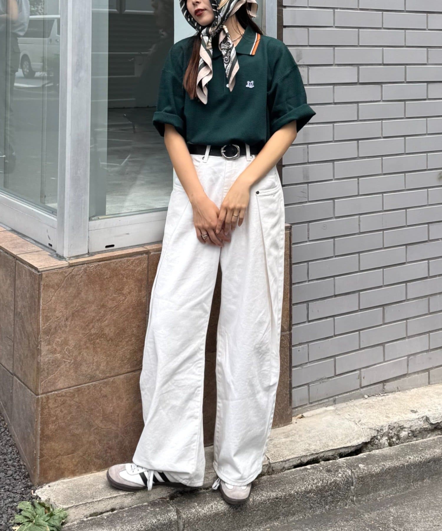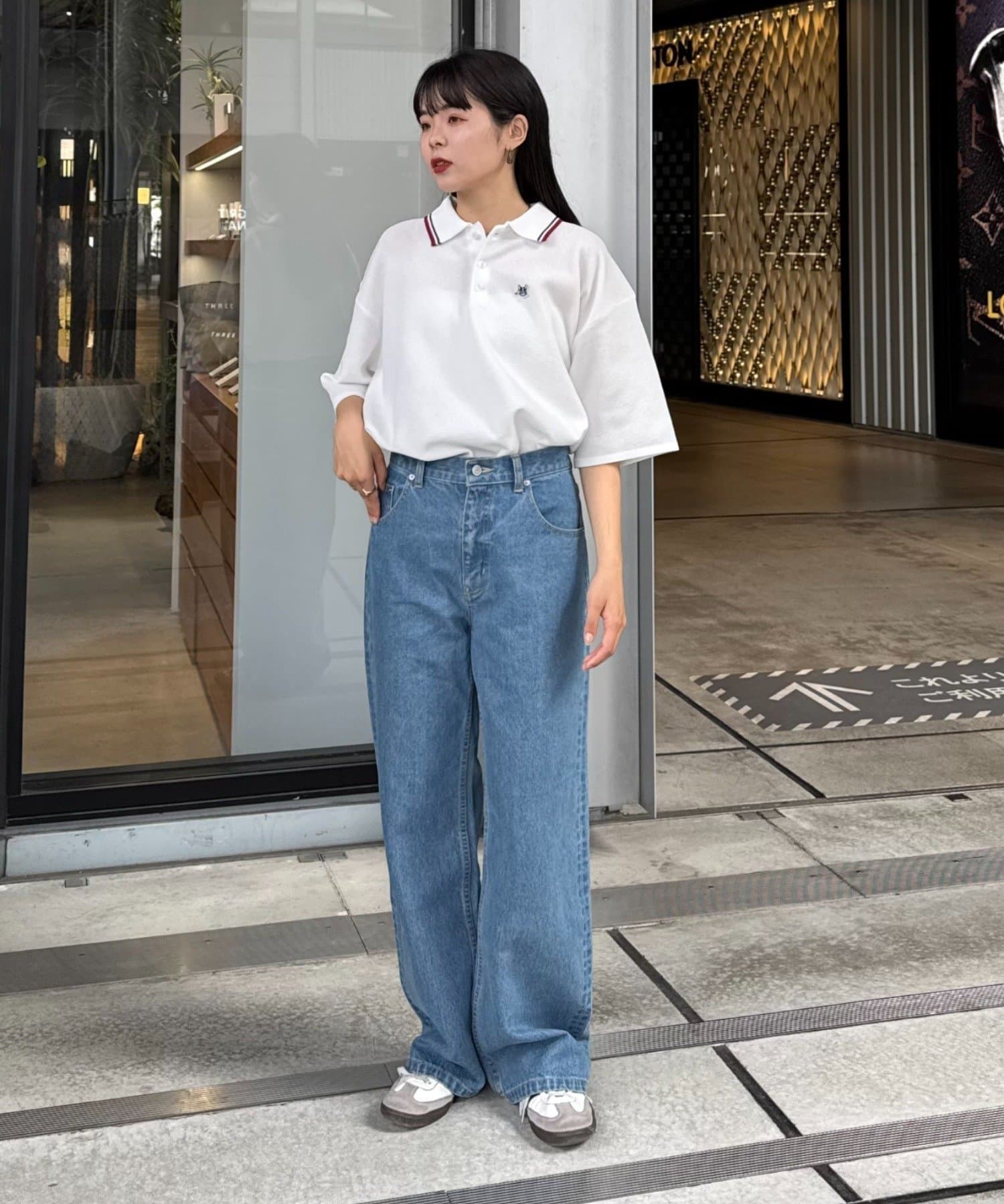 刺繍と襟のラインがアクセントになるのでボトムはシンプルで◎