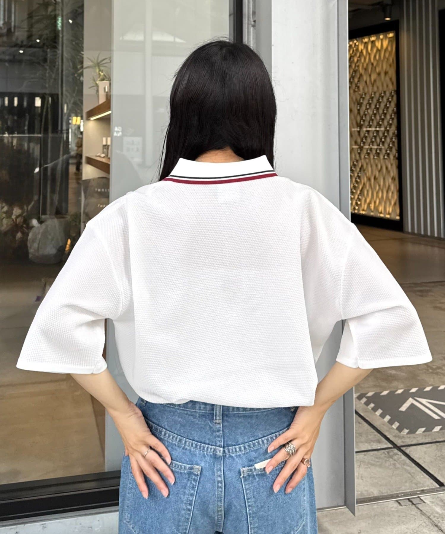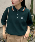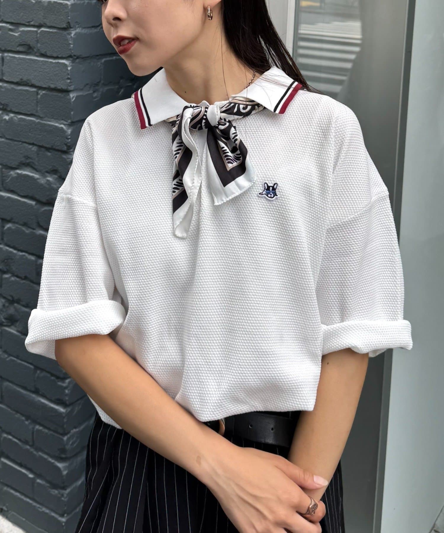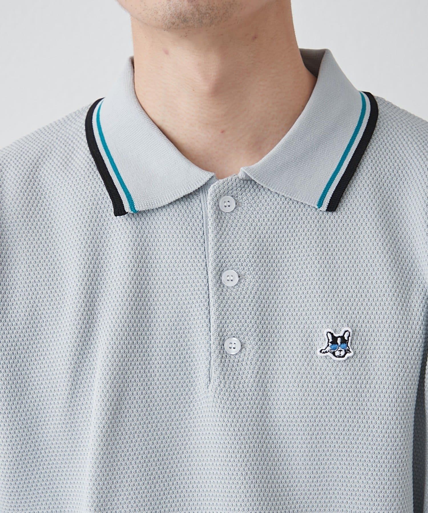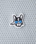 襟元に2本ラインを効かせた定番スポーティーデザインに、左胸のサングラスをかけたフレンチブルの刺繍がアクセント。