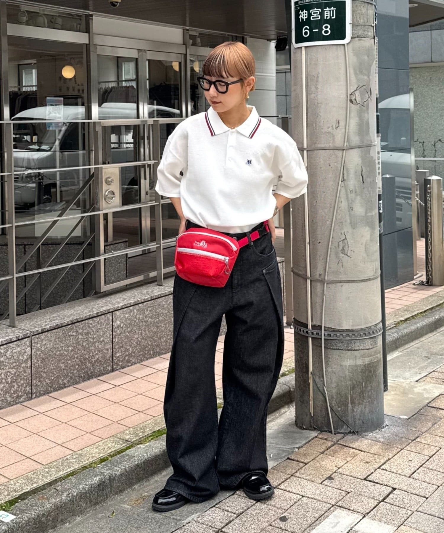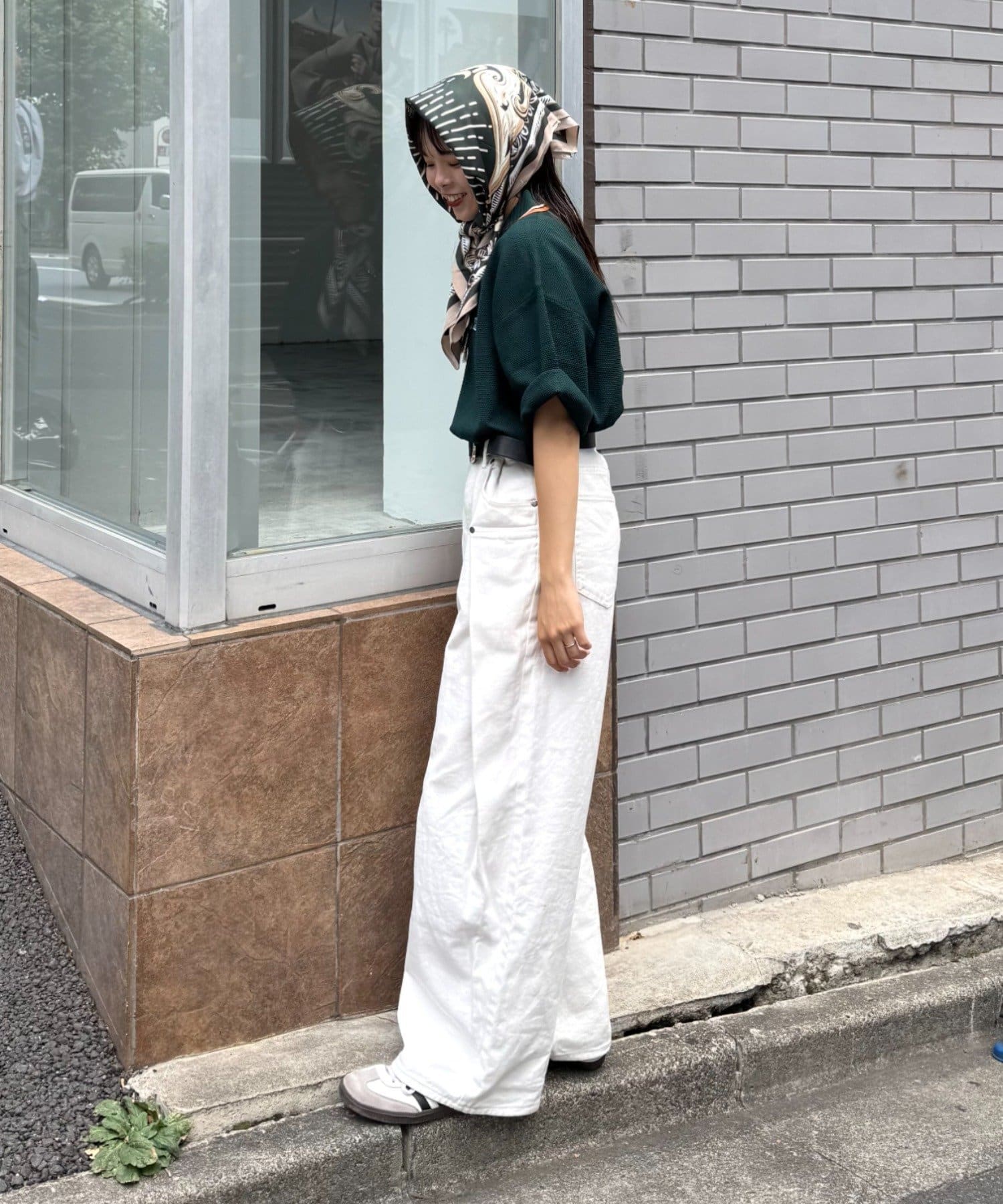 デニムやカーゴ・チノパンなどゆったりめのパンツ合わせも程よくラフ過ぎない印象に。