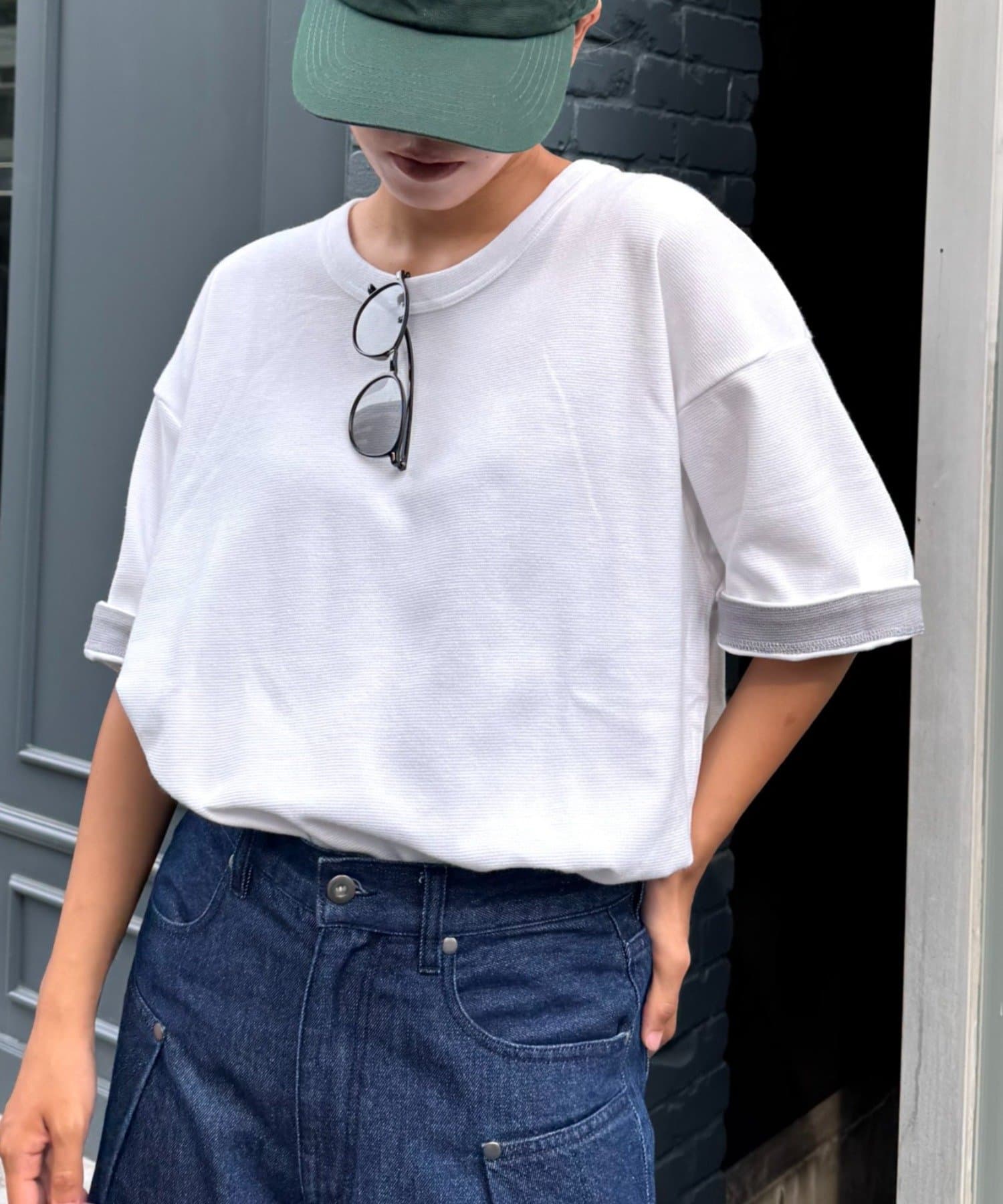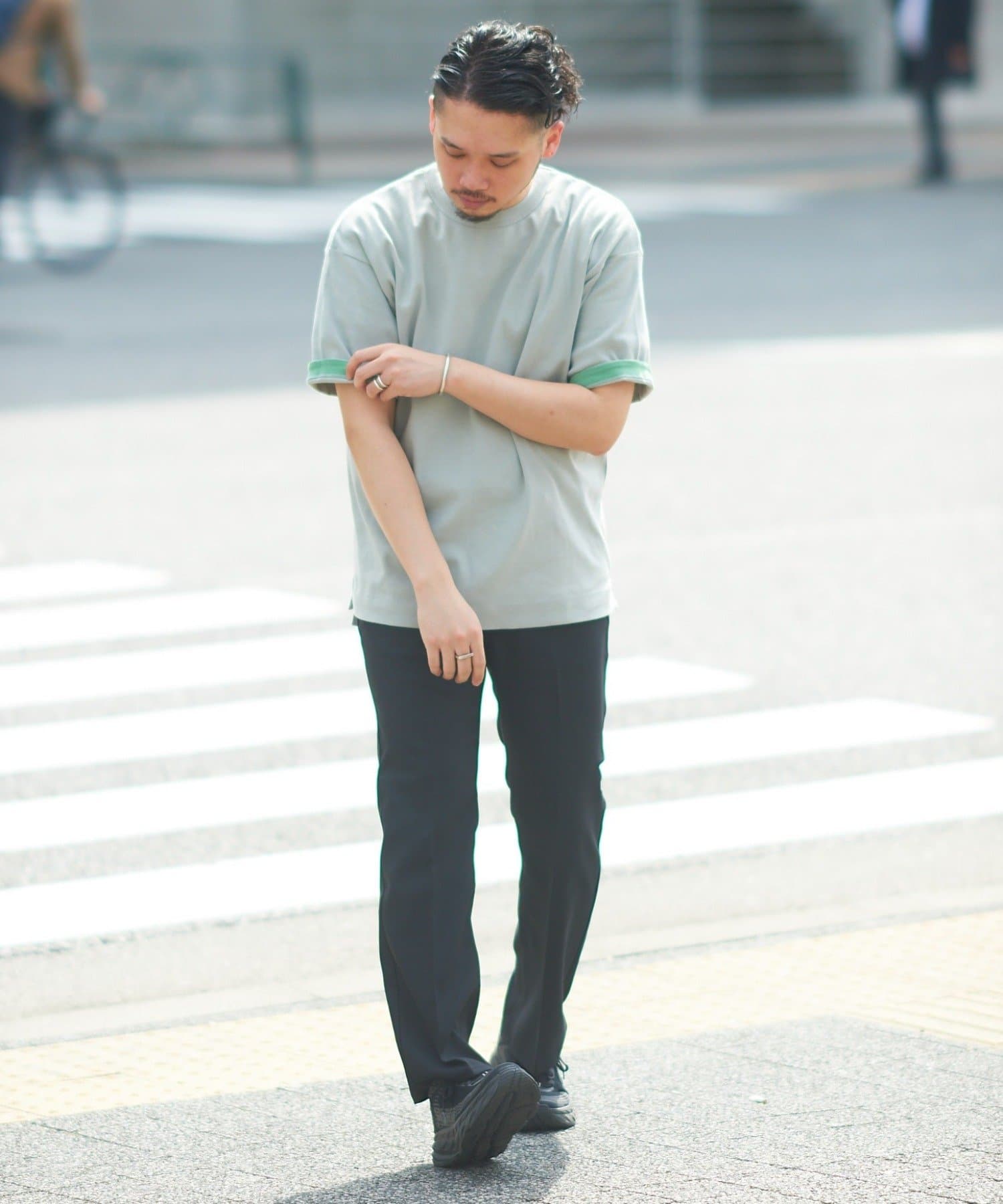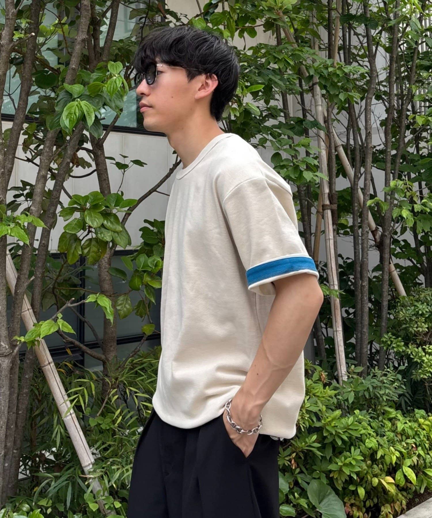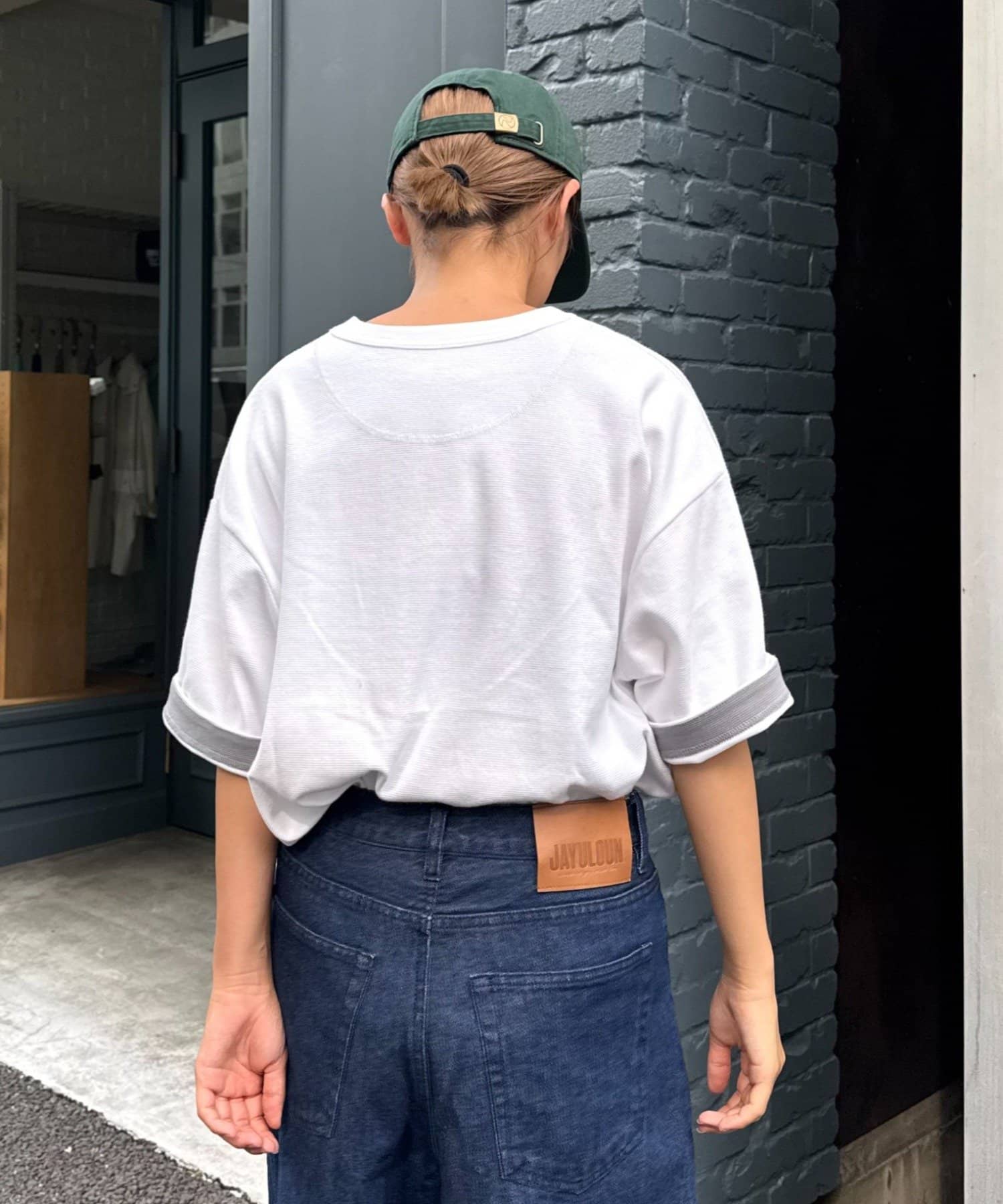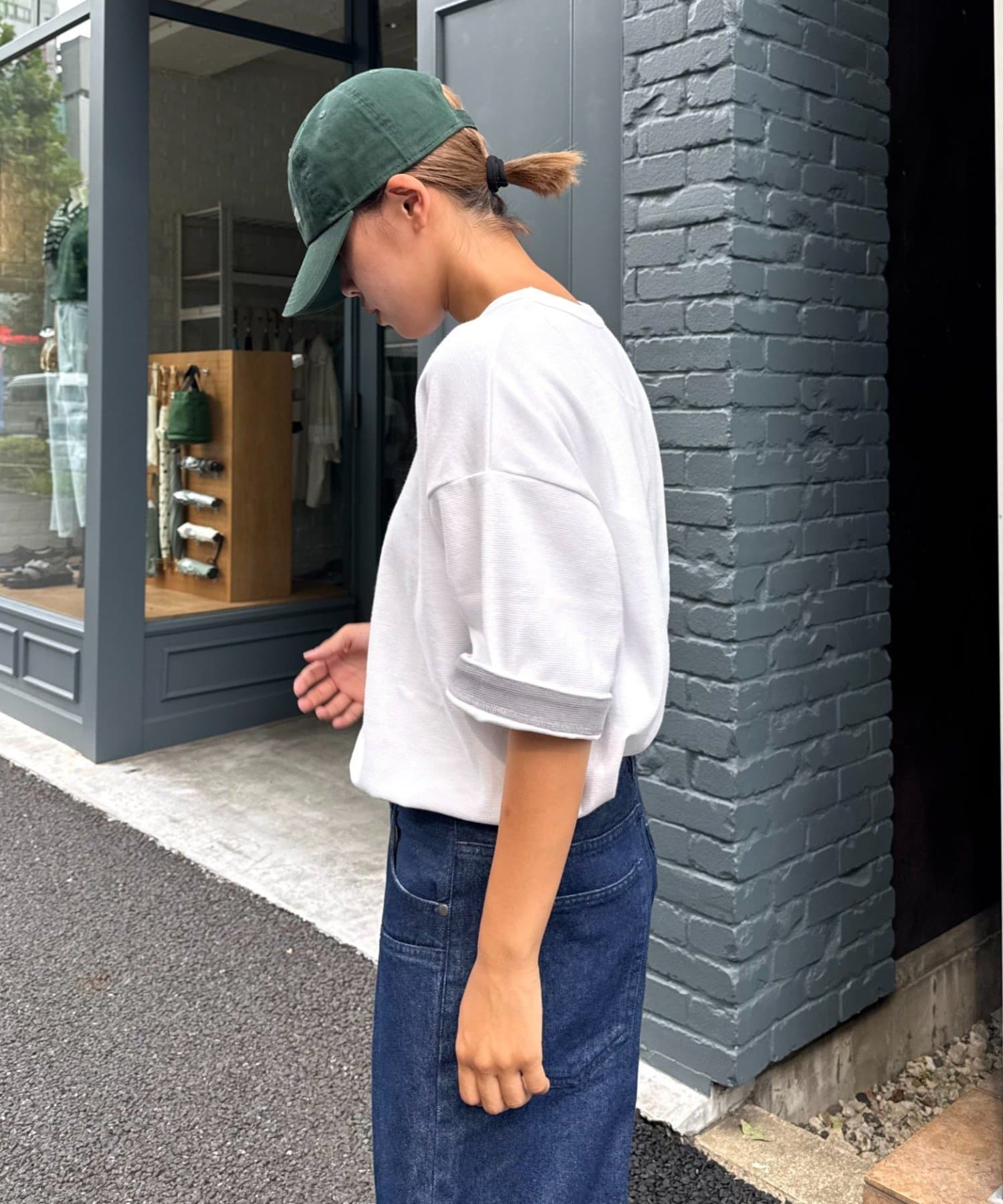 シンプルなハーフスリーブTeeは一枚で様になり、スタイリングの主役にも引き立て役にもなる万能な一着。
